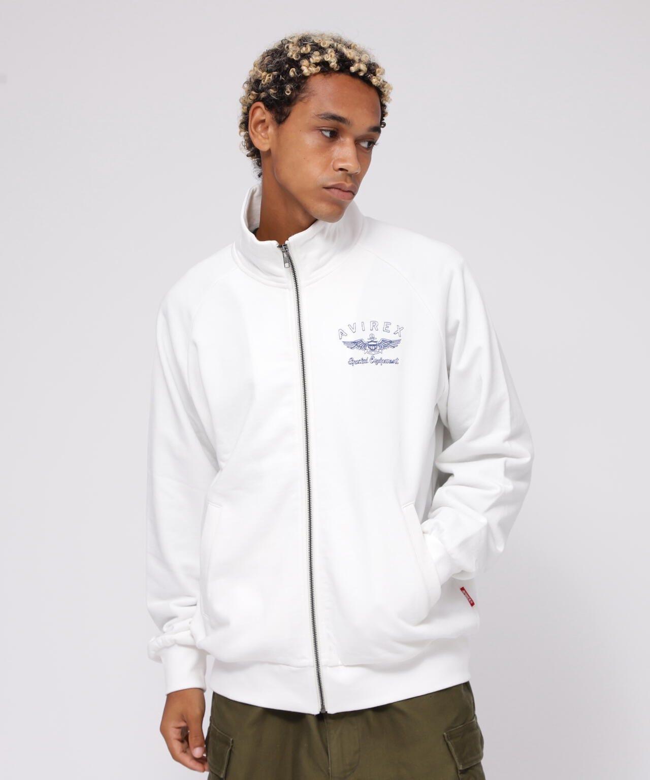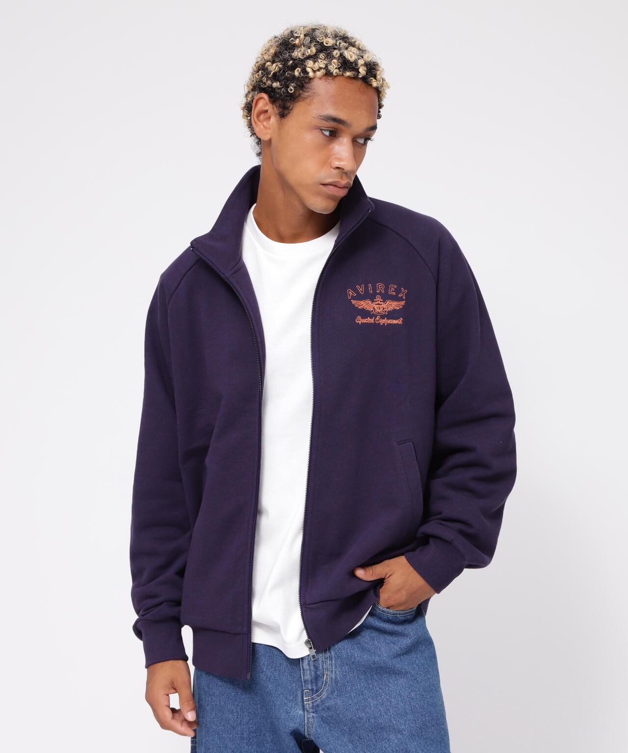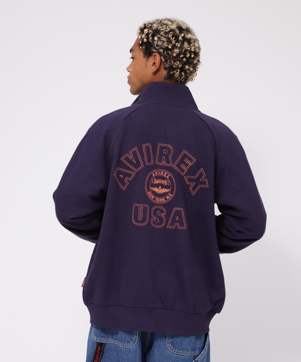 AVIREX Official Shop] 商品名稱:《WEB&DEPOT Limited》VARSITY LOGO EMBROIDERY STAND ZIP SWEAT商品詳情・易於穿著的WEB&DEPOT限量版拉鍊衛衣 前左胸,品牌LOGO刺繡。背面用刺繡表現品牌標誌性的徽標圖案,裡襯使用毛襯(絨毛),規格易於疊穿觸感良好,勻稱的廓形 [AVIREX / AVIREX] 1975 年作為美國空軍的承包商成立,通過供應飛行夾克實現了知名度的飛躍。通過供應飛行夾克,知名度大幅提升。起源於軍方的 Avirex,通過功能設計創造出獨特的美感。