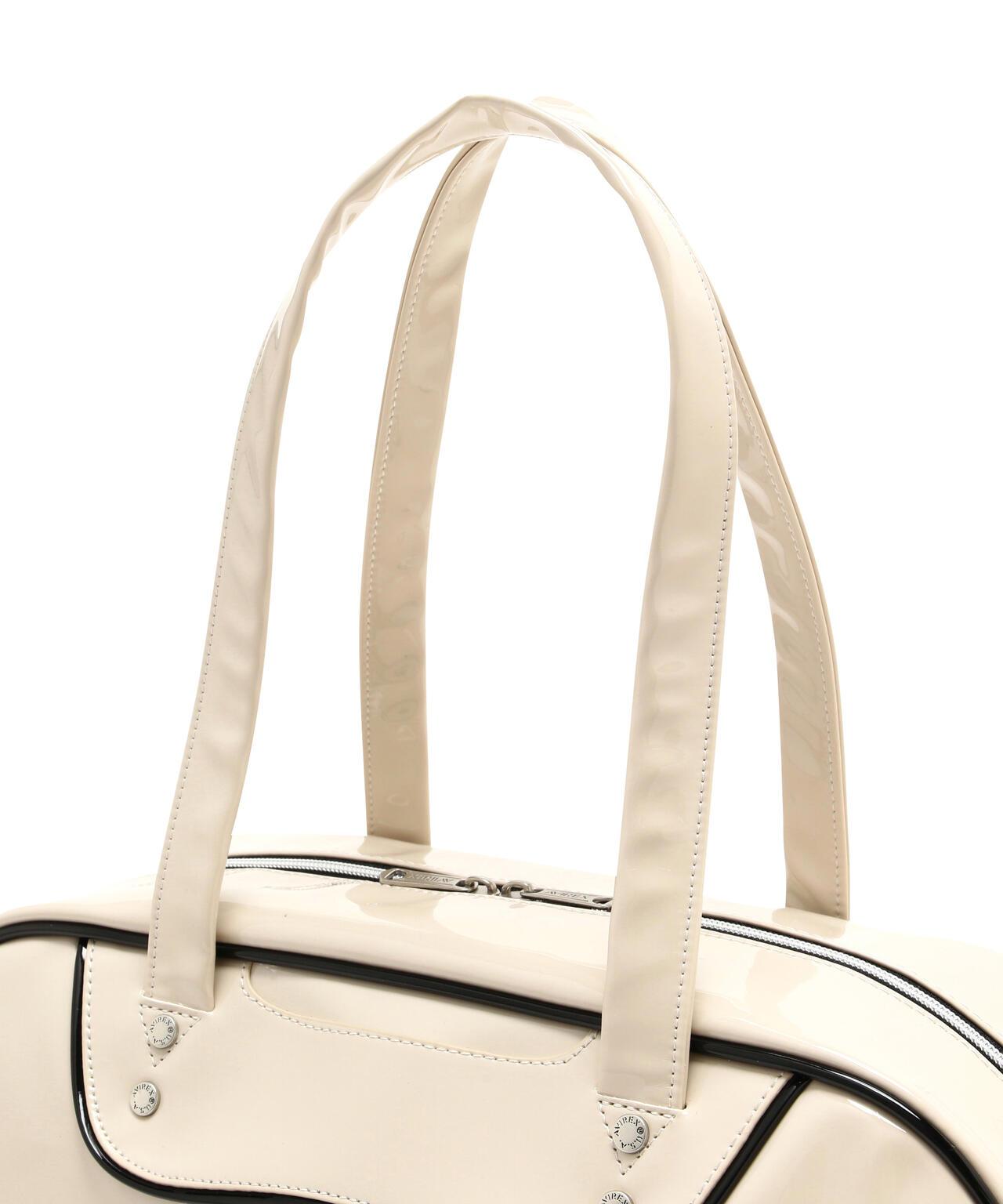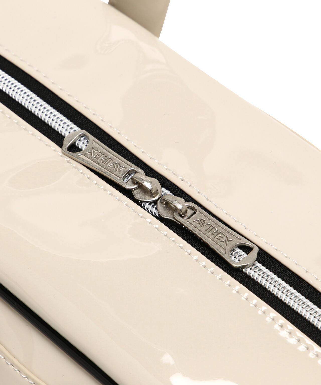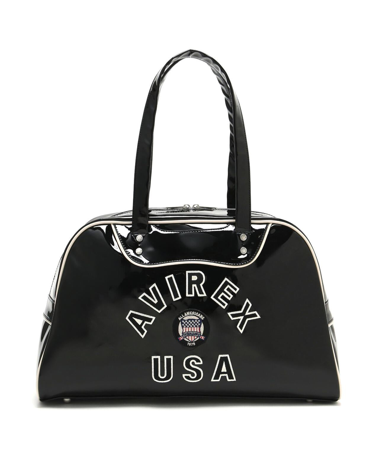 ENAMEL BOSTON BAG - 靈感源自皮夾克的校隊標誌是一款令人印象深刻的波士頓包 - 正面印有 "AVIREX USA "標誌和 "ALL AMERICANS 1975 "刺繡徽章,是品牌的標誌。類似琺琅的閃亮材質帶來奢華感,而圓潤的外形、中性的設計便於女性攜帶 [AVIREX WOMAN] 該系列將純正軍裝的功能性和設計感投射到女性休閒裝中。該系列將純正軍裝的功能和設計投射到女性休閒服上。作為一個獨特的現代女裝品牌,它為聰慧、自由、好奇、端莊、活潑的職業女性提供休閒女裝。