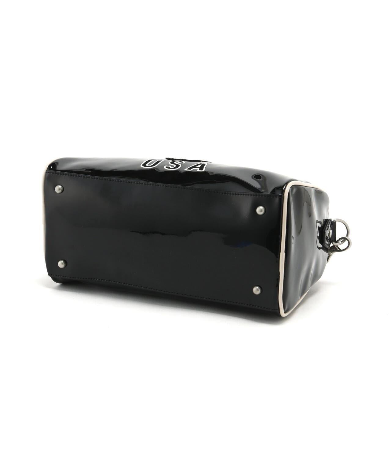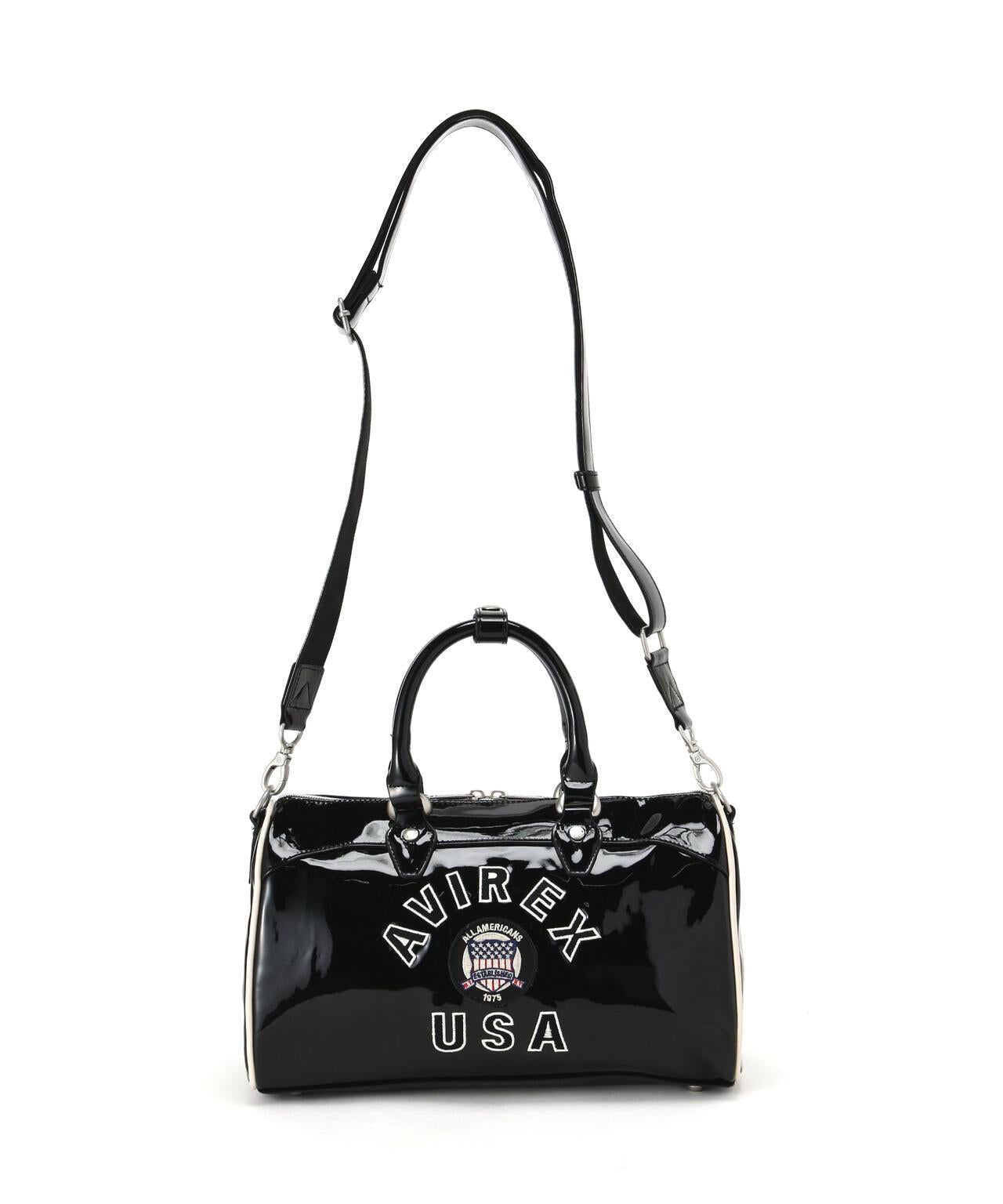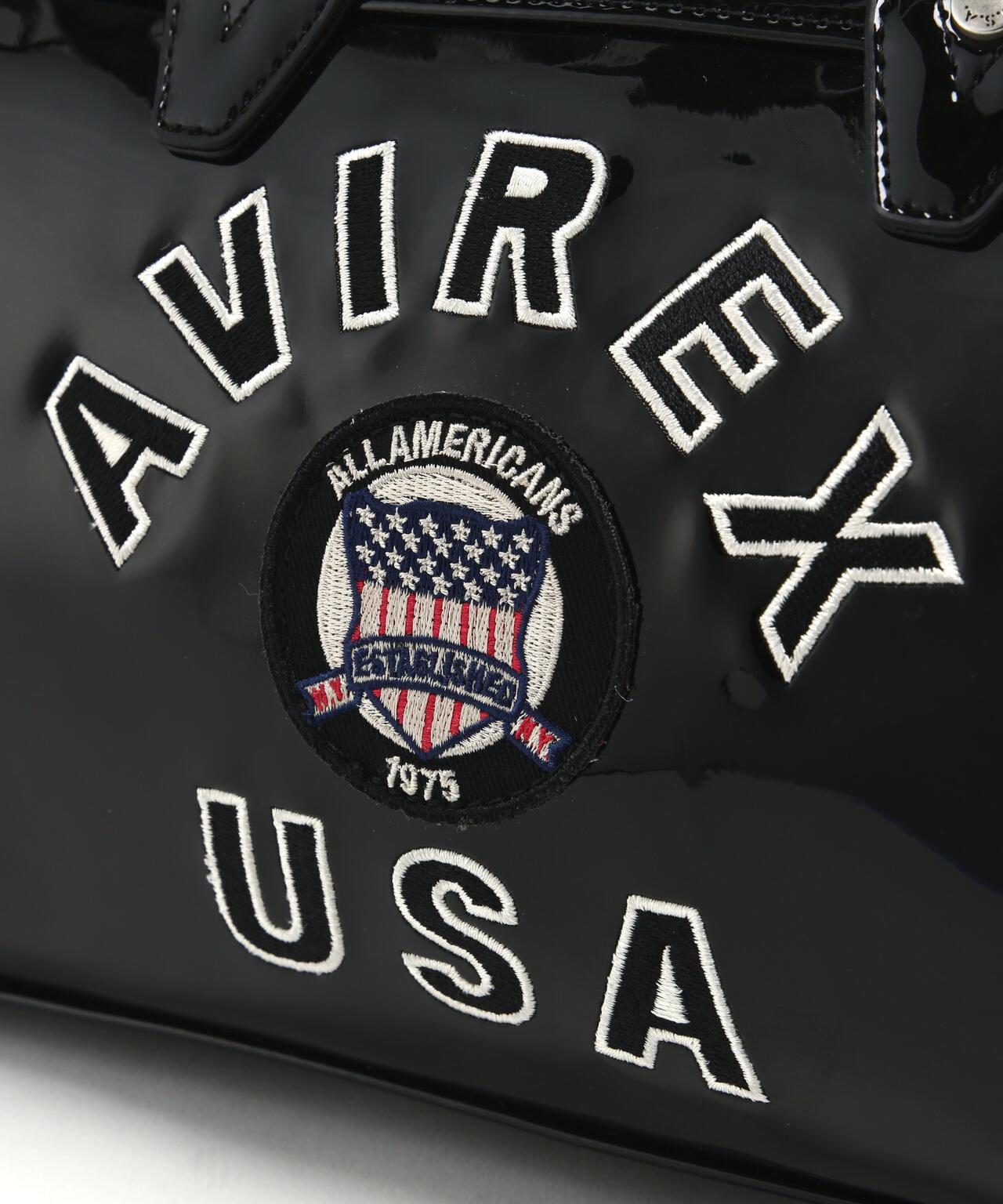 搪瓷迷你雙層包 - 靈感來自皮夾克的校隊標誌,迷你波士頓包,AVIREX 標誌,"ALL AMERICANS 1975 "徽章刺繡點綴,閃亮的搪瓷材料,氣場出眾。包包採用閃亮的琺琅材料製成,包口寬大,是一款儲物能力極強的波士頓型包包。AVIREX WOMAN] 將純正軍裝的功能性和設計感投射到女性休閒服上的系列。作為一個具有個性和永恆性的女裝品牌,它專為聰慧、自由、好奇、端莊、活潑的職業女性而設計。