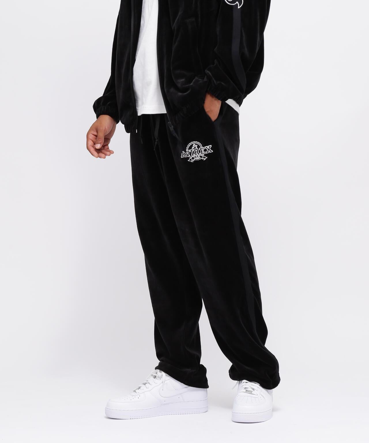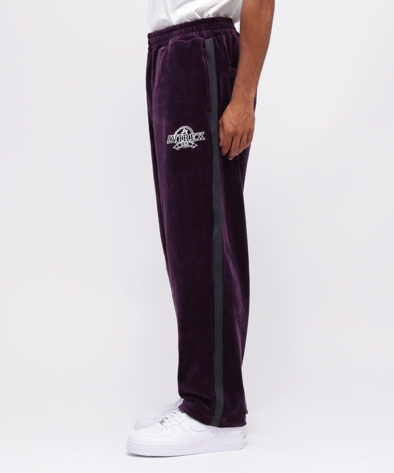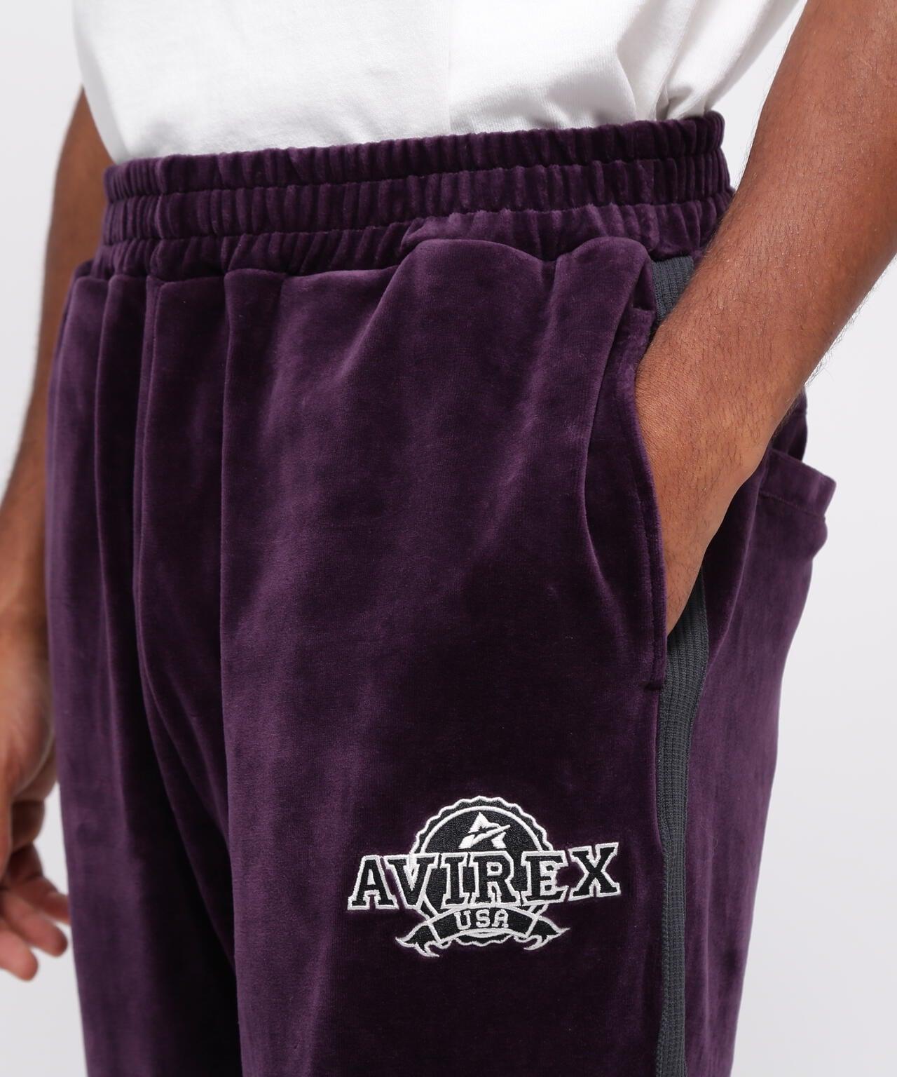 AVIREX 官方旗艦店] 產品名稱:《WEB&DEPOT 限量版》VELOUR TRACK PANTS<產品詳情> - 限量版絲絨運動褲 - 繡有品牌logo - 運動褲般的側線是重點 - 帶抽繩,下襬寬度可調節。寬鬆剪裁。