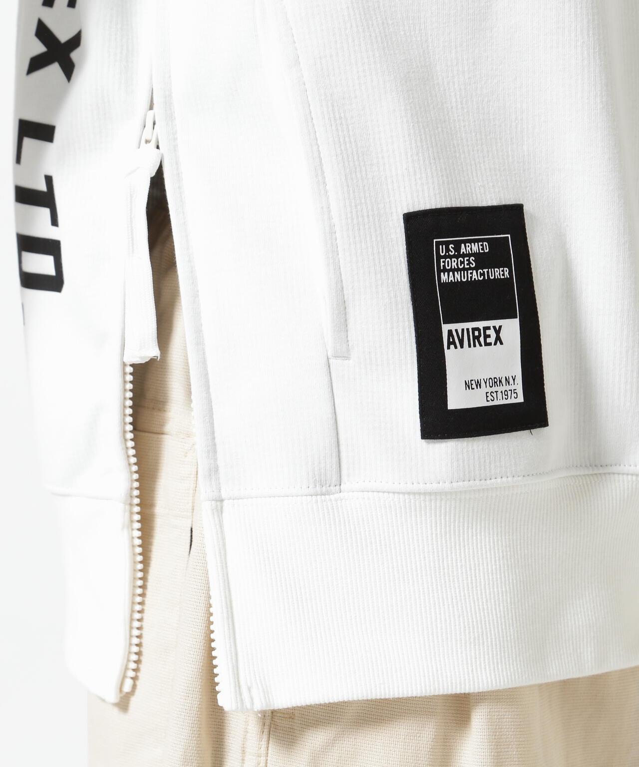 AVIREX 官方商店]。防風粘合的運動衫。兩側採用拉鍊設計,穿脫方便,可根據所穿內搭擴大造型寬度。AVIREX 成立於 1975 年,當時是美國空軍的承包商,通過提供飛行夾克,其知名度大幅提升。Avirex 源自軍隊,以功能性設計所散發出的獨特美感為基礎。在《奪寶奇兵》、《壯志凌雲》和《孟菲斯美女》等電影中,Avirex 的獨特外觀都獲得了一致好評。其精益求精的設計和懷舊的味道仍然吸引著世界各地的許多人