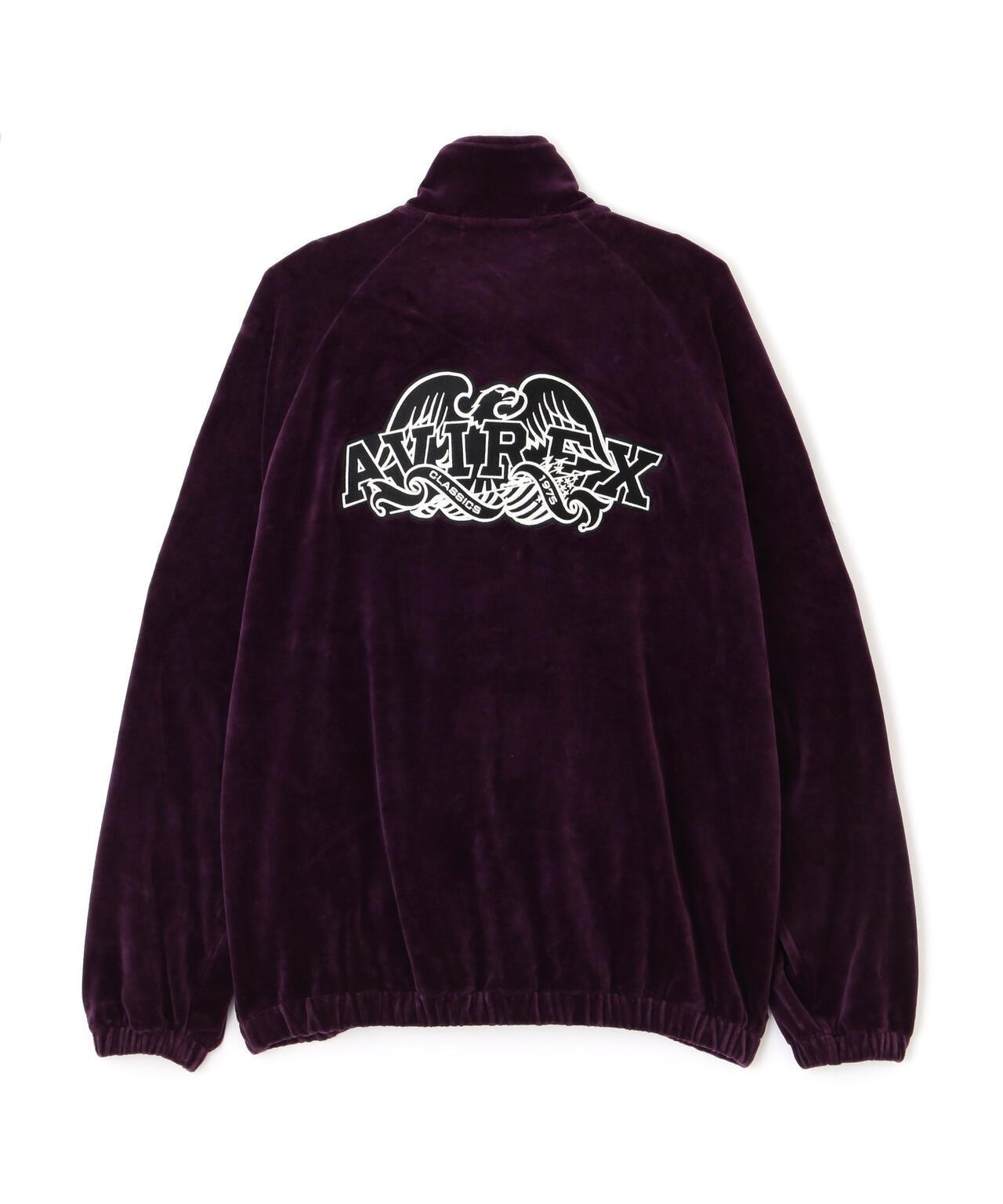 AVIREX 官方旗艦店] 商品名稱:《WEB&DEPOT 限量版》絲絨運動夾克<商品詳情> - 限量版絲絨運動夾克,前左胸繡有品牌標識,後背印有品牌檔案圖案。運動夾克,前胸左側繡有品牌徽標,後背印有品牌檔案圖案,雙袖印有絲帶圖案,寬鬆剪裁。