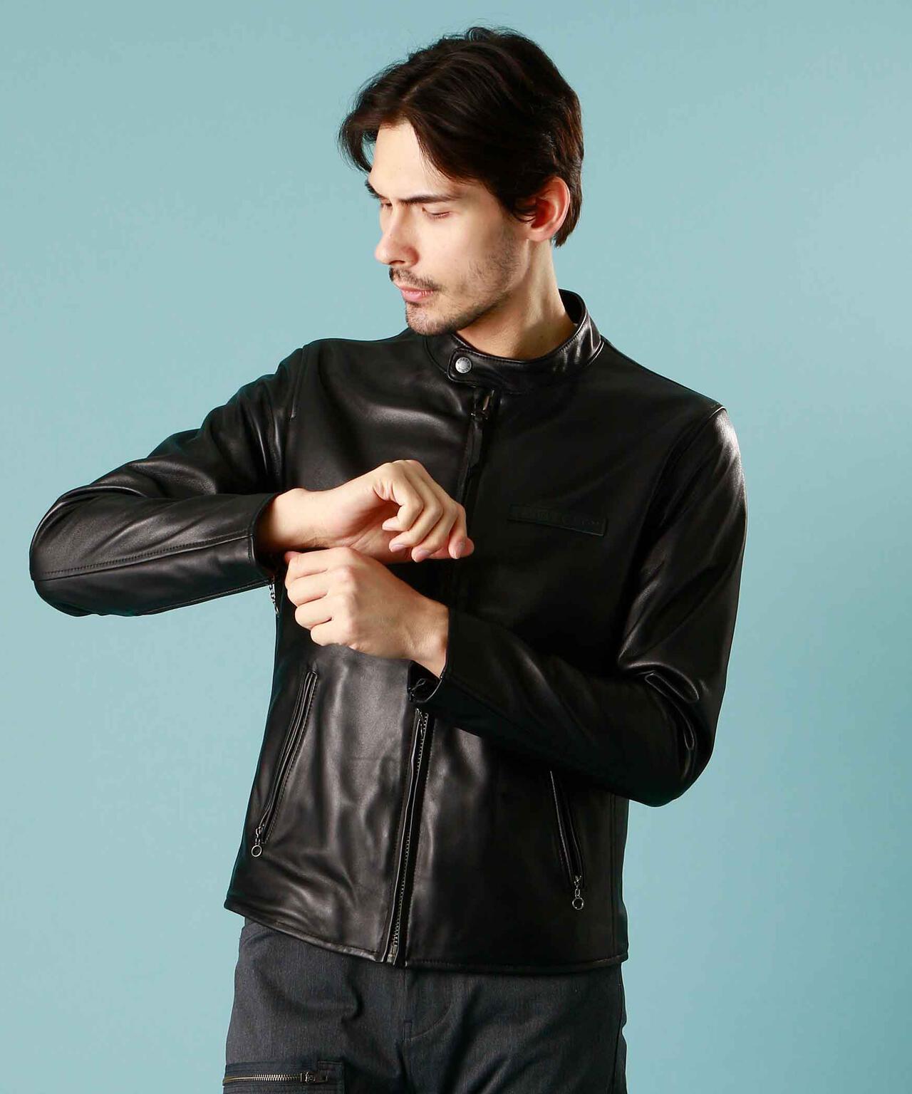這是一款單人騎手款式的簡約騎手款式,軍裝風格的銘牌給人一種 AVIREX 的感覺。所使用的羊皮質地細膩,厚度適中,穿著柔軟舒適。原皮、細節和尺碼都保持在👍限度,因此可以在城市中隨意穿著,是一款適合所有年齡段男女的易穿單品。