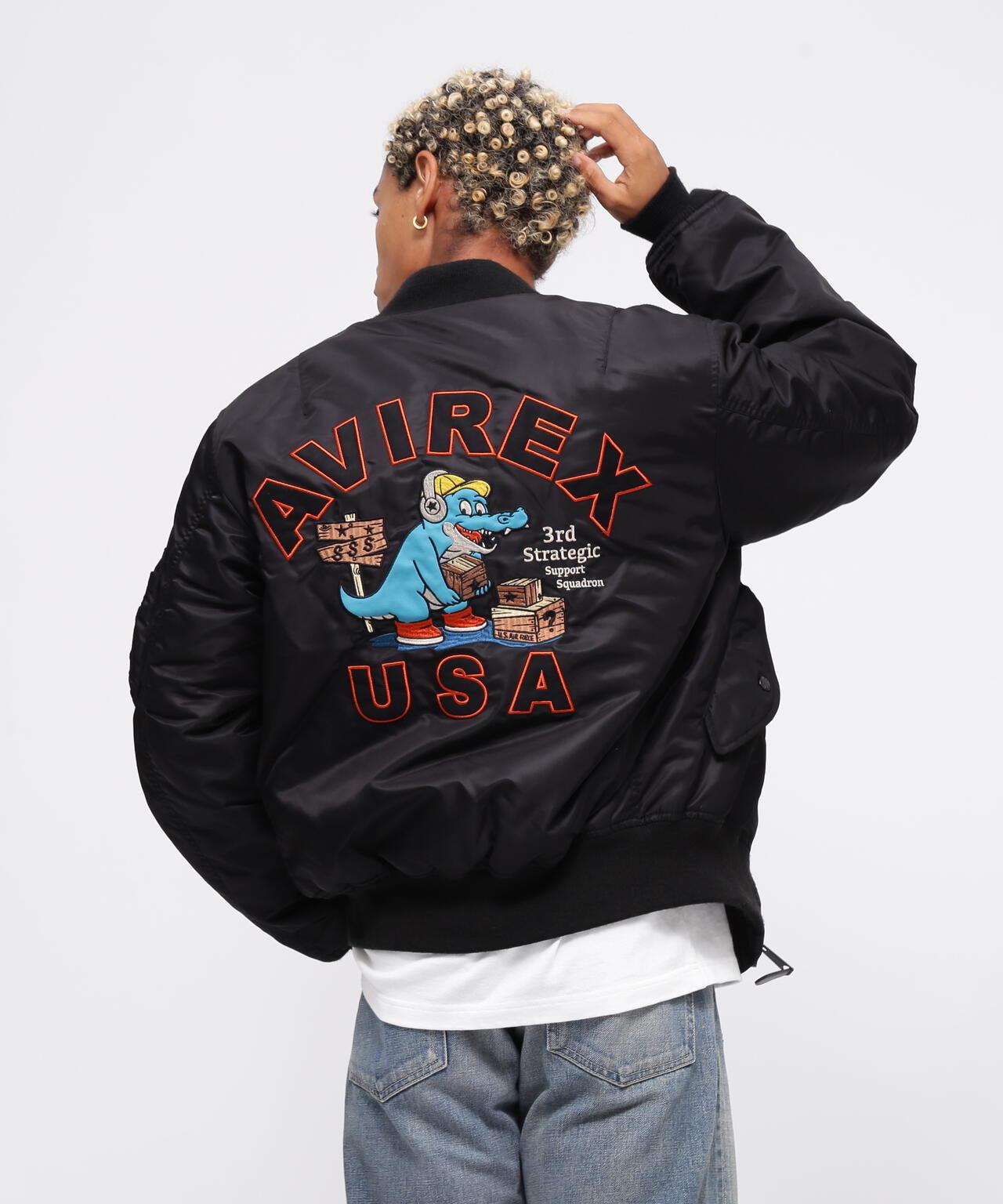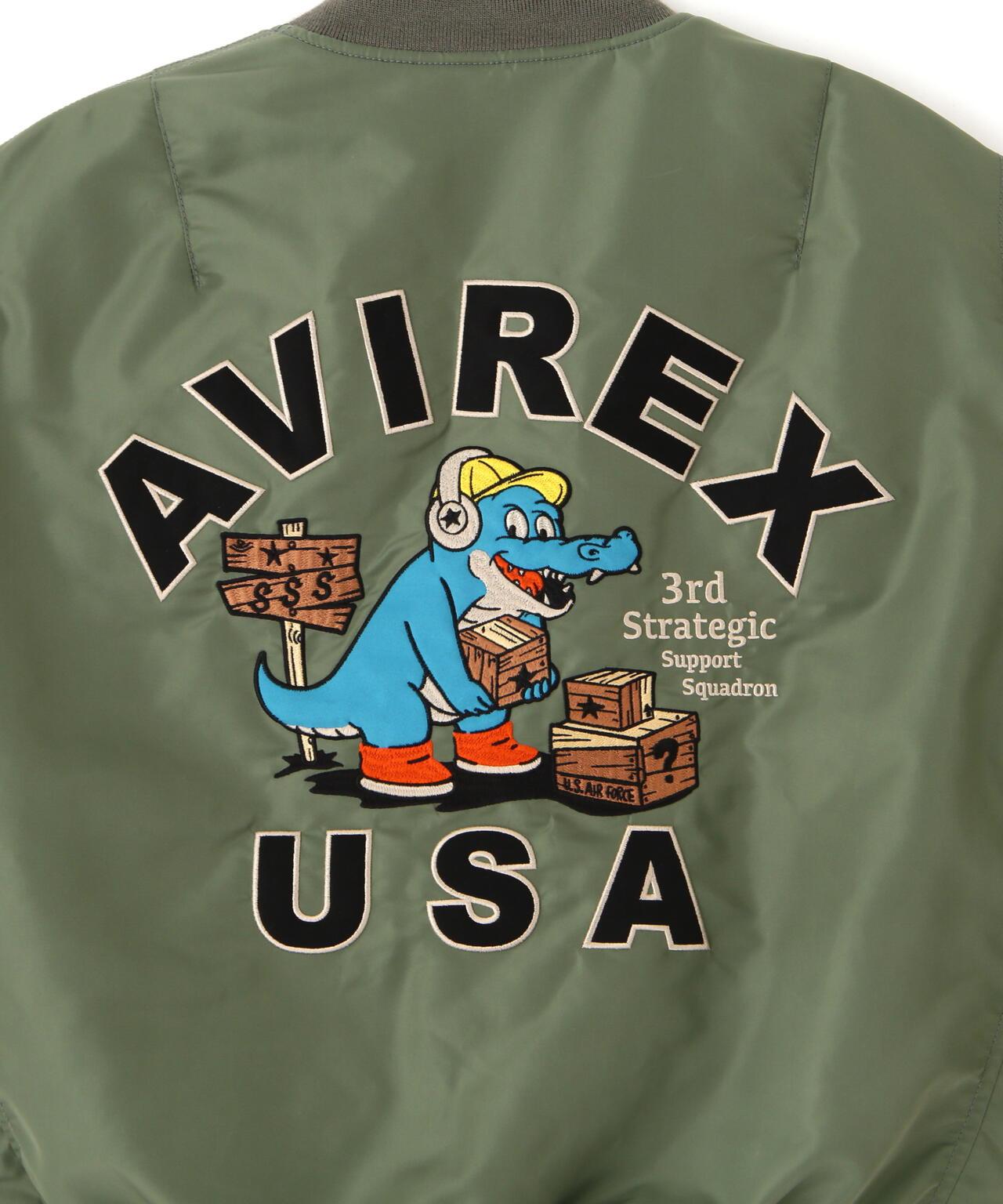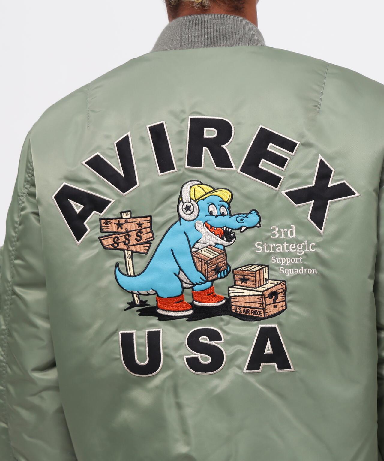 WEB&DEPOT限量版MA-1 "第3戰略支援中隊"<產品詳情> - MA-1的人物圖標彷彿是Avilex的人物,👍WEB&DEPOT銷售 - 帶翻蓋的腰袋和橘色襯裡的使用是中期型的特色細節 - 以第3戰略支援中隊的圖案為設計藍本,繡有鱷魚貼片。設計以第 3 戰略支援中隊的圖案為基礎,繡有鱷魚補丁,採用 THERMOLITE 高保暖性能保溫材料製成,厚重的尼龍斜紋布,勻稱的輪廓[第 3 戰略支援中隊第 3 戰略支援中隊/第 3 戰略支援中隊] [AVIREX/AVIREX] 1975 年,美國空軍決定為第 3 戰略支援中隊設計一款繡有 "鱷魚 "胸章的服裝。