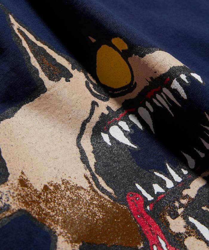 衣身的製作也同樣注重細節,25 毫米寬的頸肋、下襬和袖子均採用 "tenshi-biki"(又稱盲縫或單縫)的專業技術完成,連接頸肋和手臂的接縫全部採用單鎖縫,精美地再現了 90 年代的衣身(順便說一句,現在的大多數 T 恤衫都採用單鎖縫技術,但現在的大多數 T 恤衫並非如此)。6.2 盎司的面料由 100% 美國棉花在美國製造,當然是圓身製作。這件特殊的作品在日本縫製和印製。