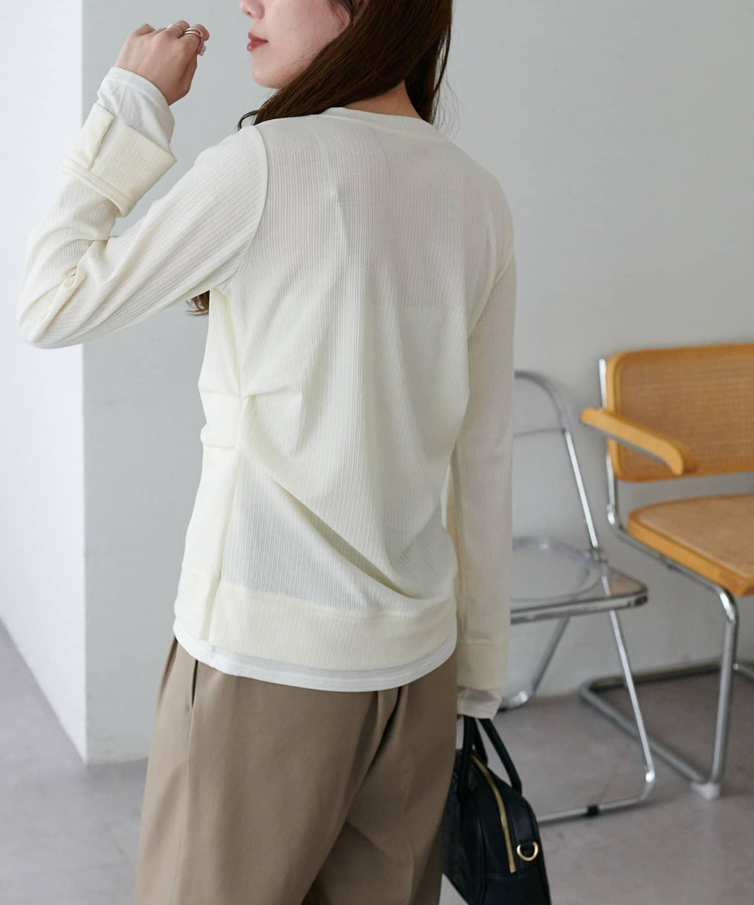 這款套頭衫採用類似開衫的多層設計,單穿也很時尚。