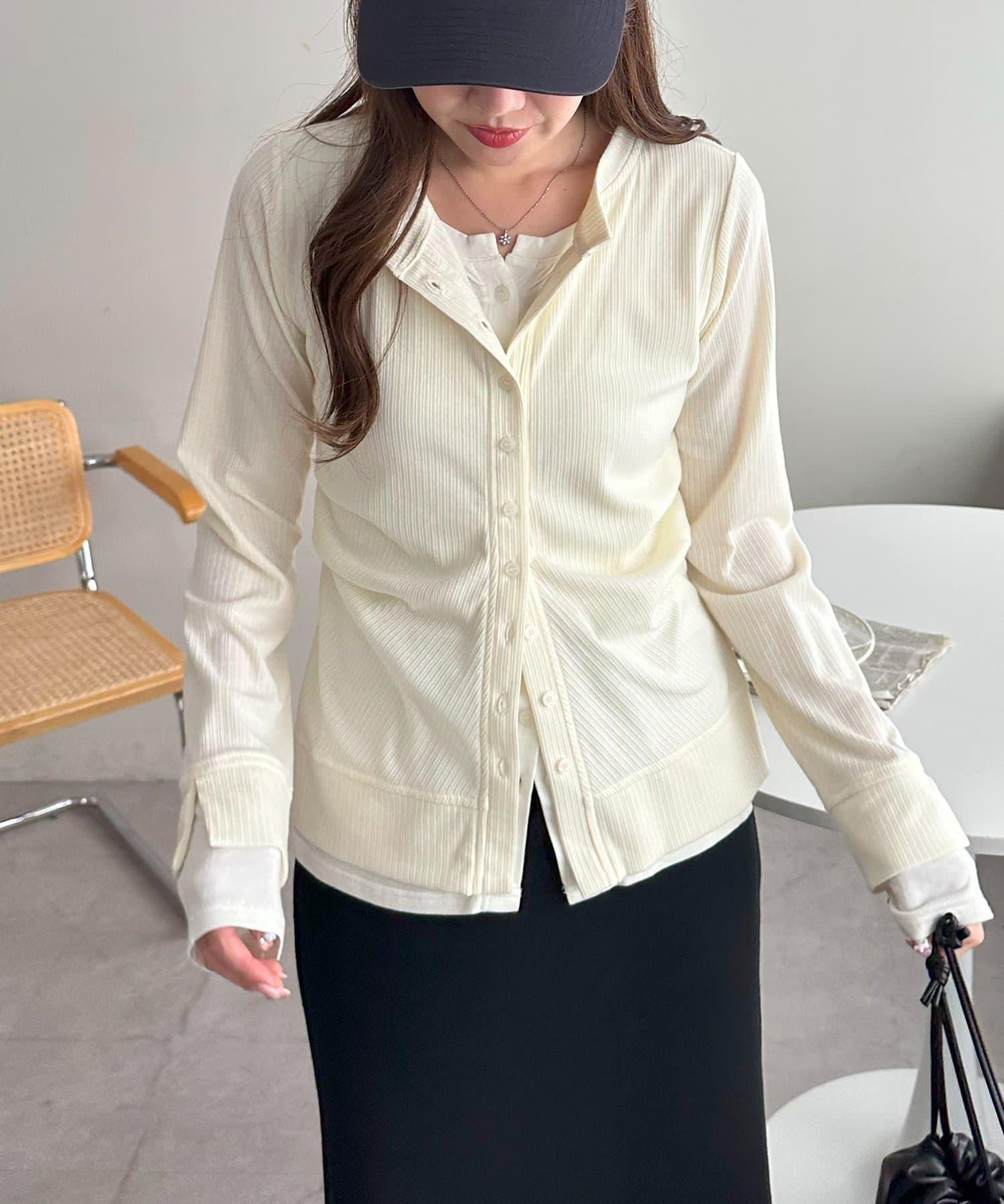 153cm 工作人員:您可以通過調整紐扣開口為這款多層上衣增添舒適感!