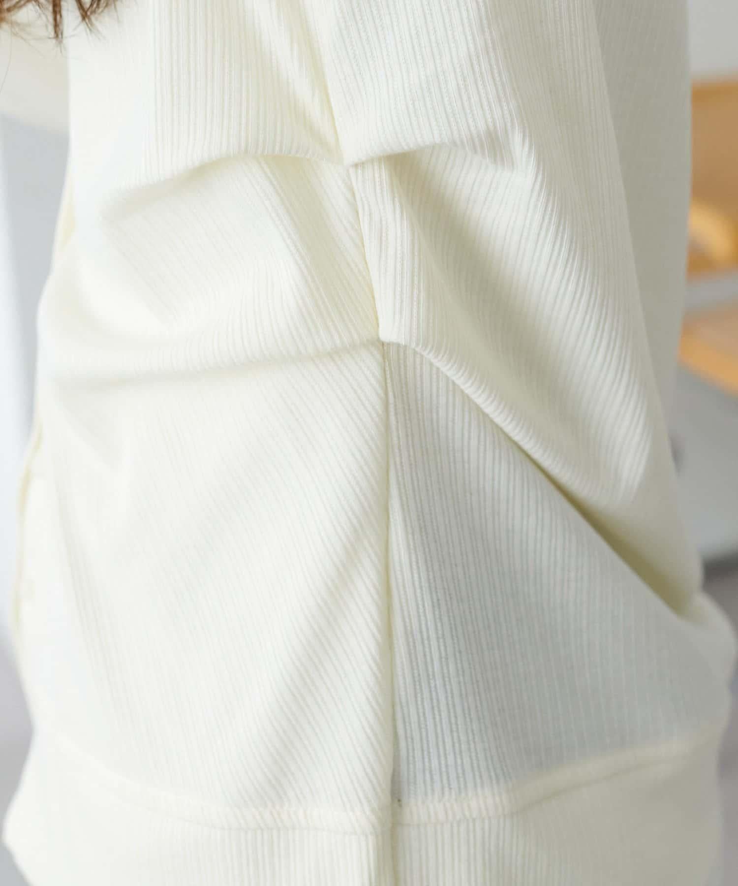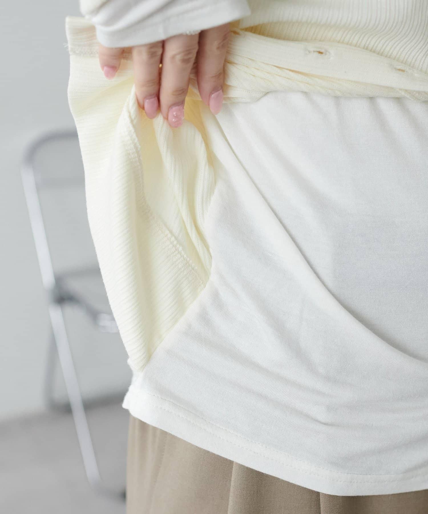 158cm 工作人員:褶皺自然地遮住了腹部,很好地修飾了身材!羅紋面料柔軟有彈性,穿起來活動自如。