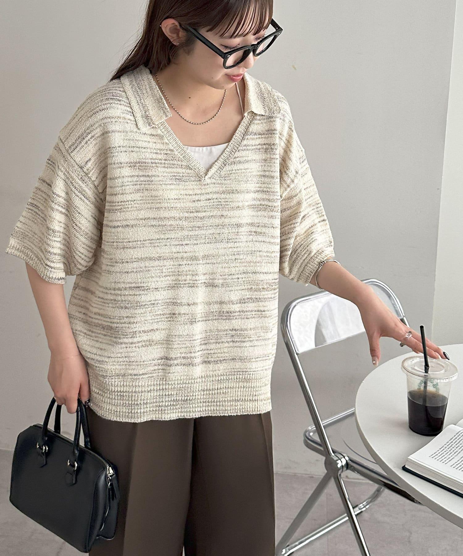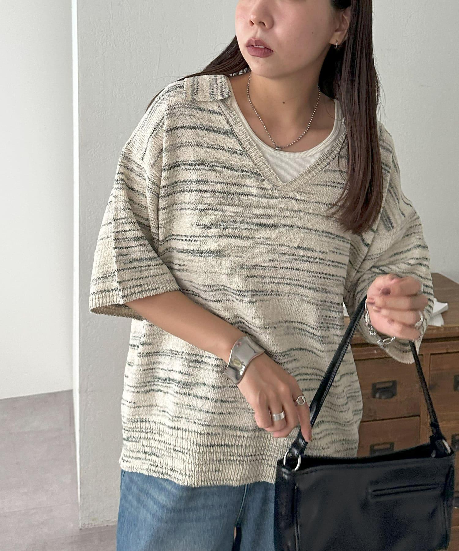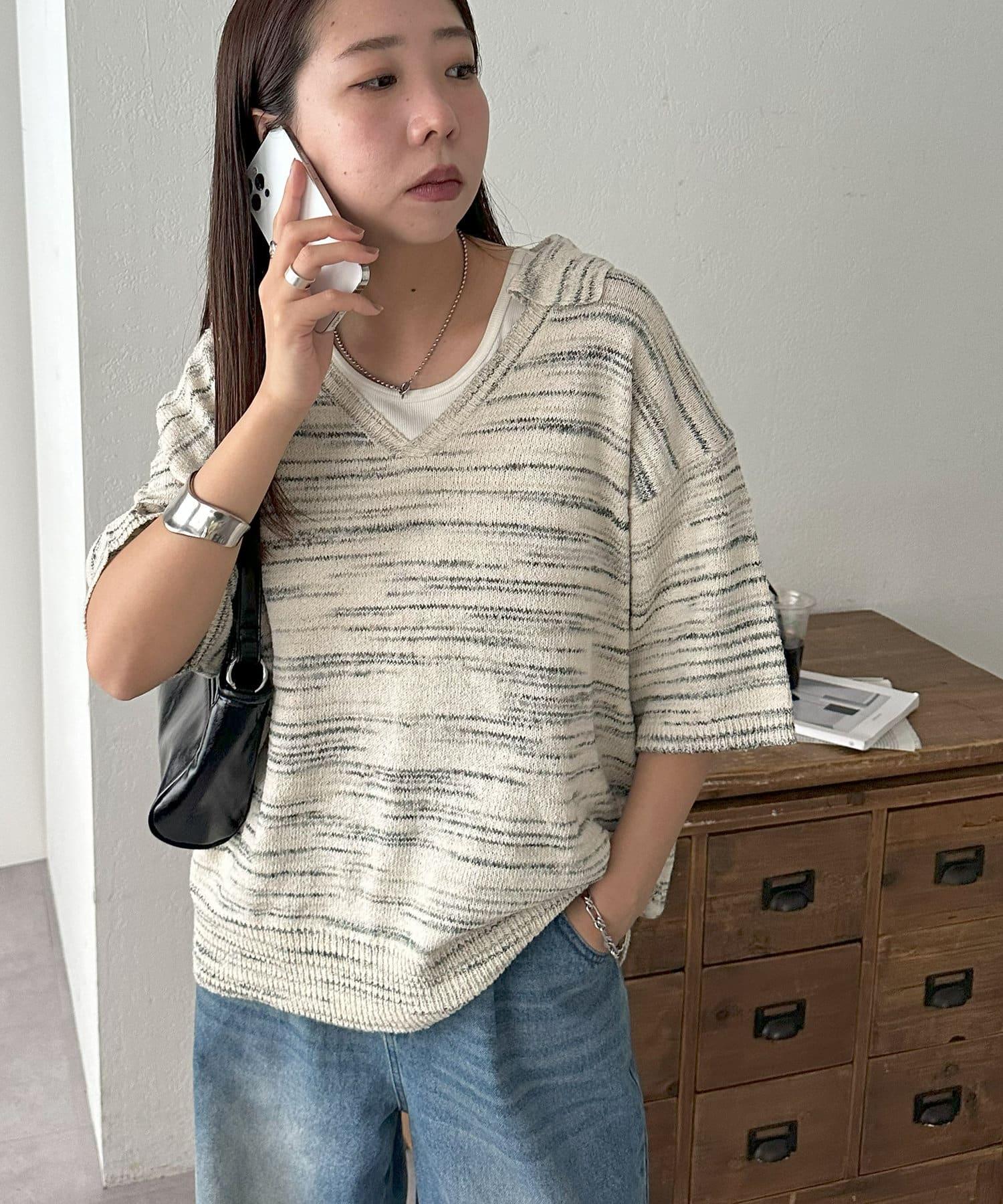 【Discoat】段染半袖立領針織衫