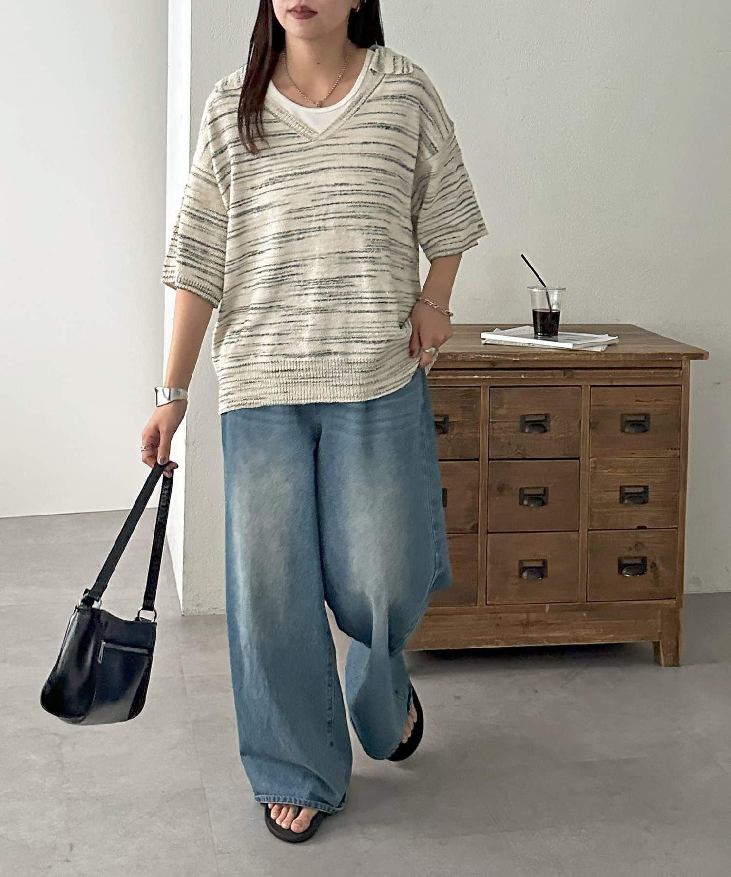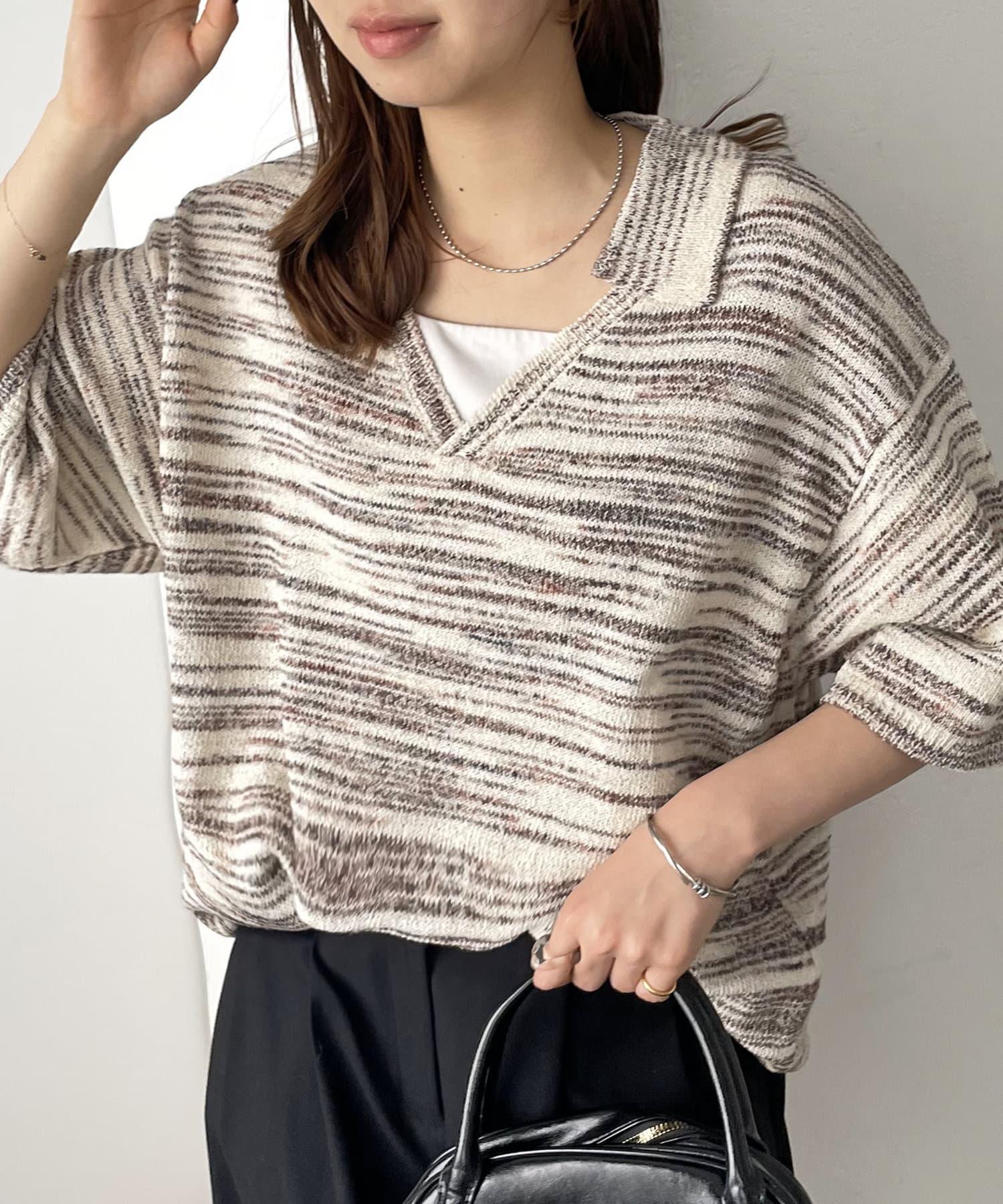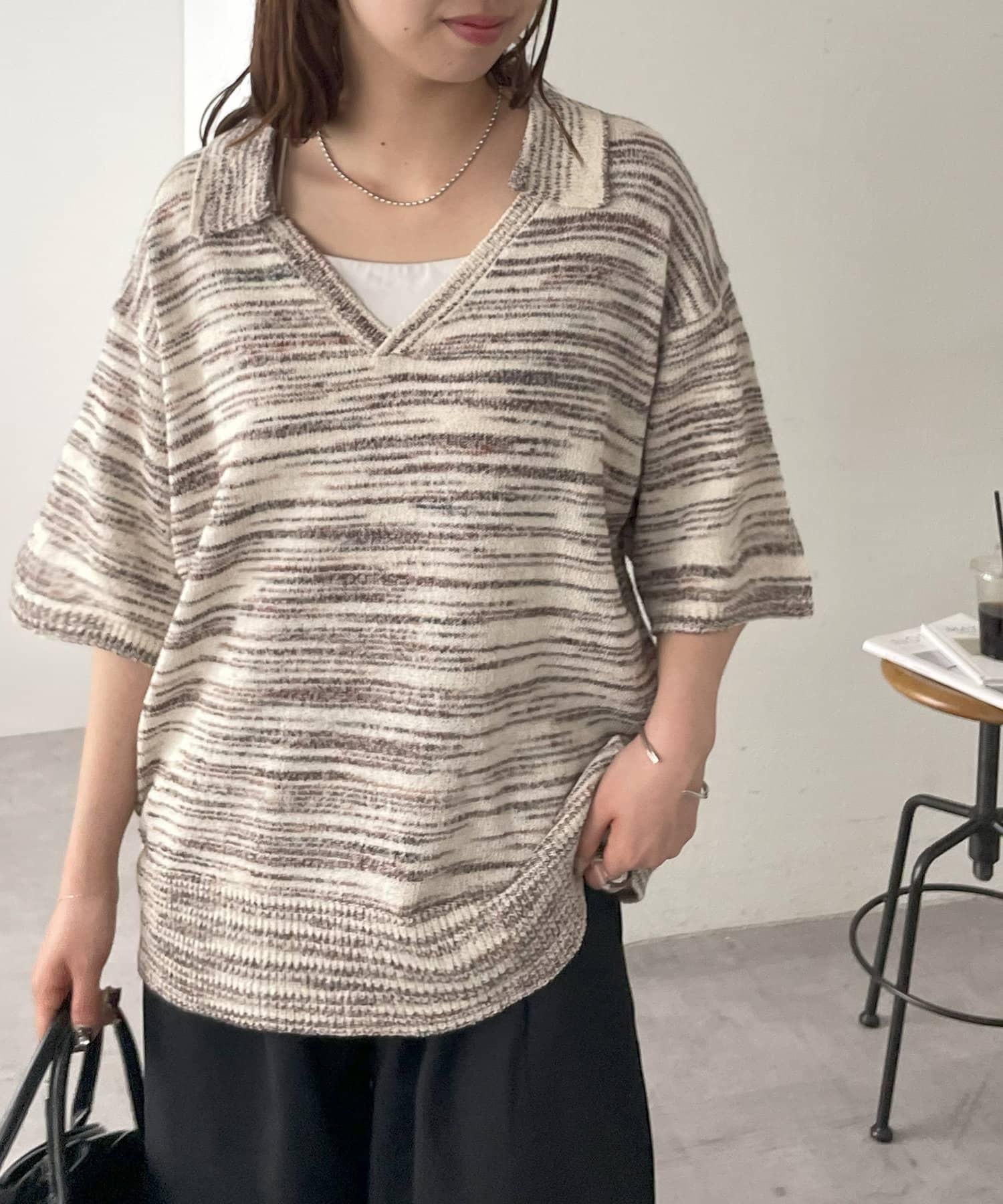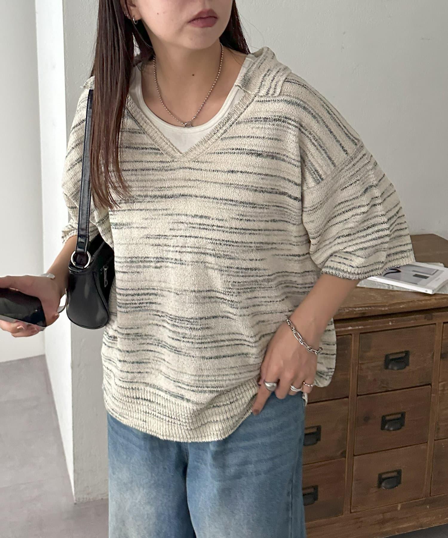 【Discoat】段染半袖立領針織衫