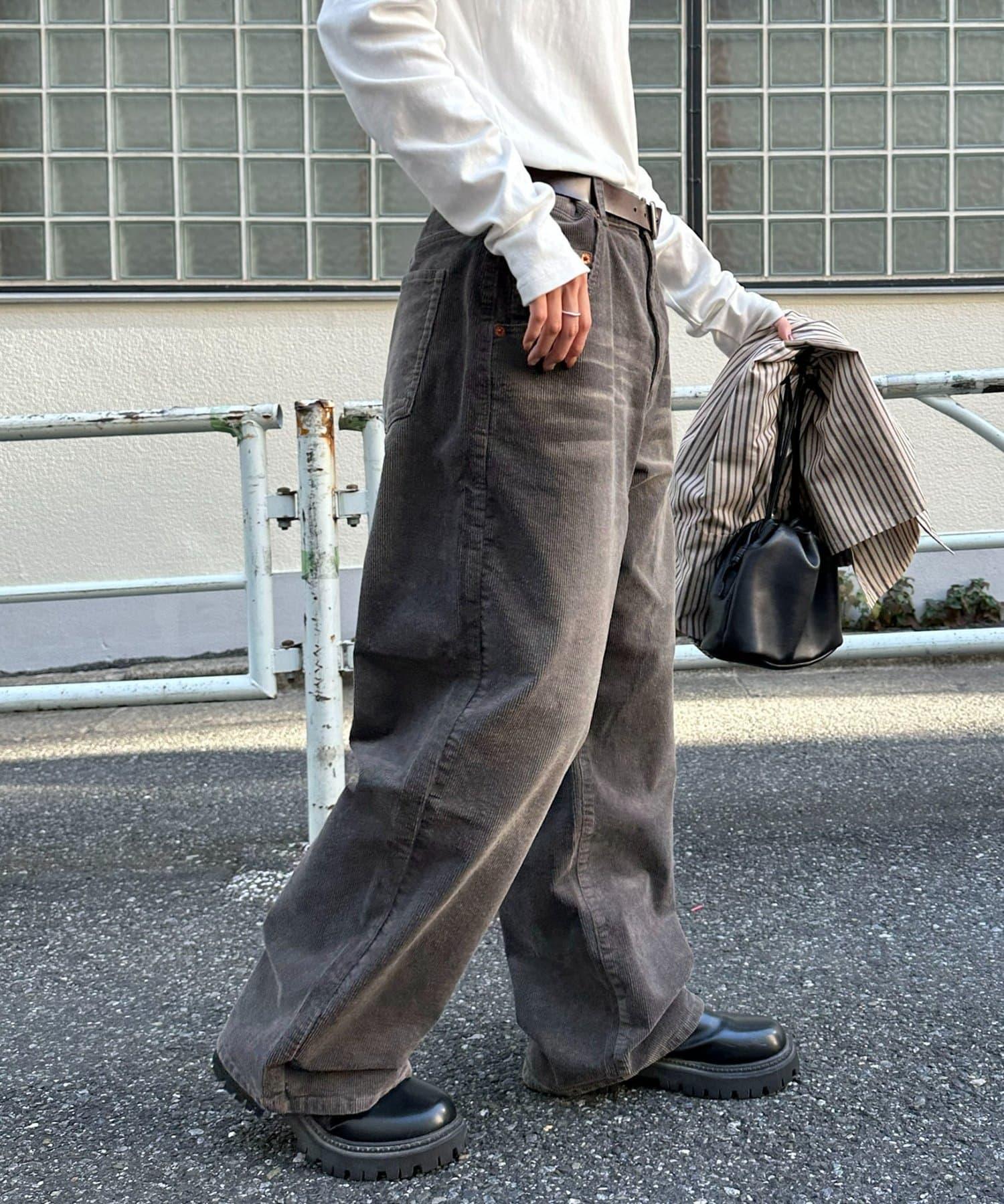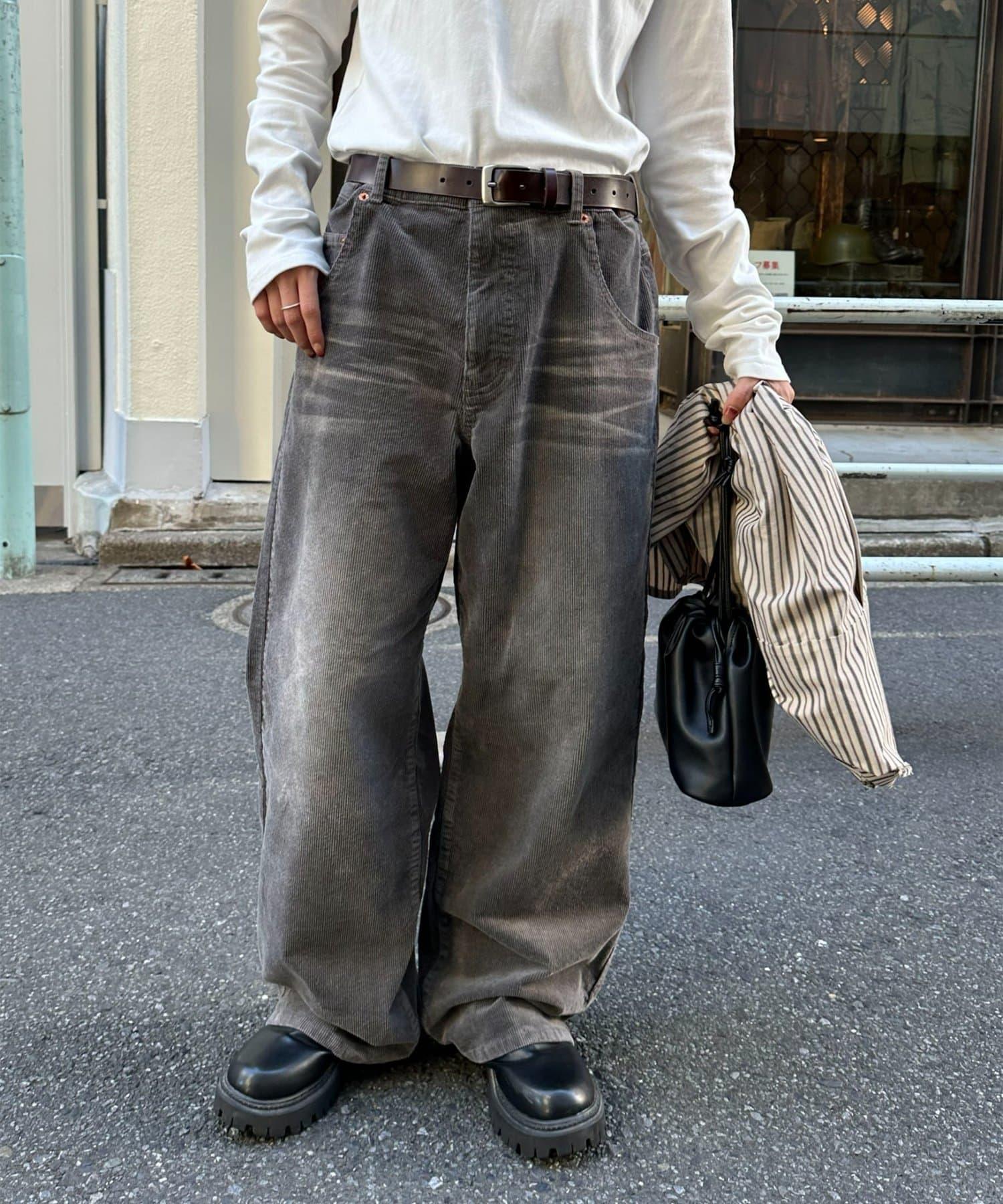 【Discoat】燈芯絨寬鬆染色長褲