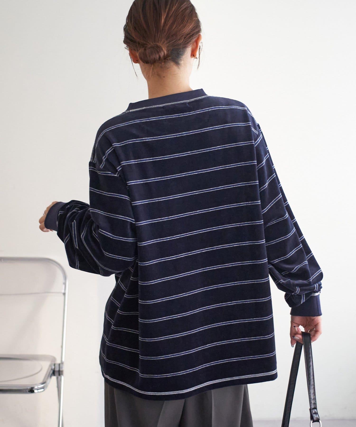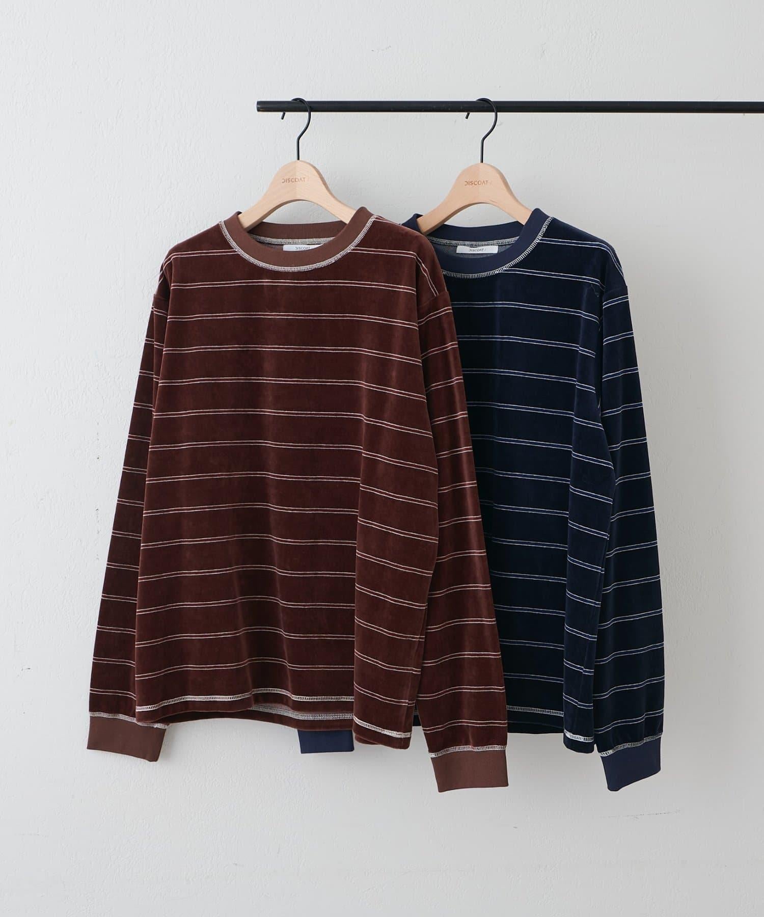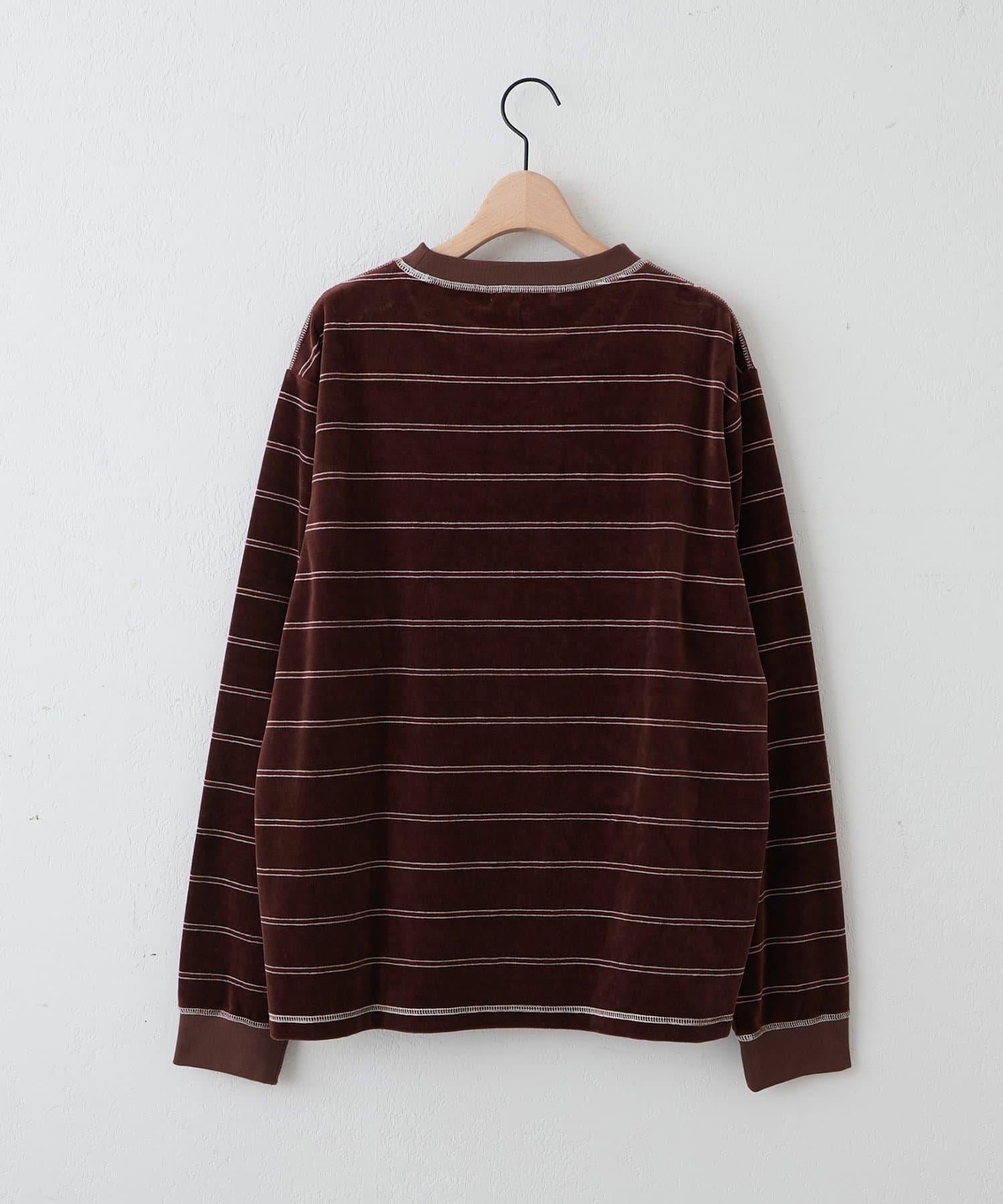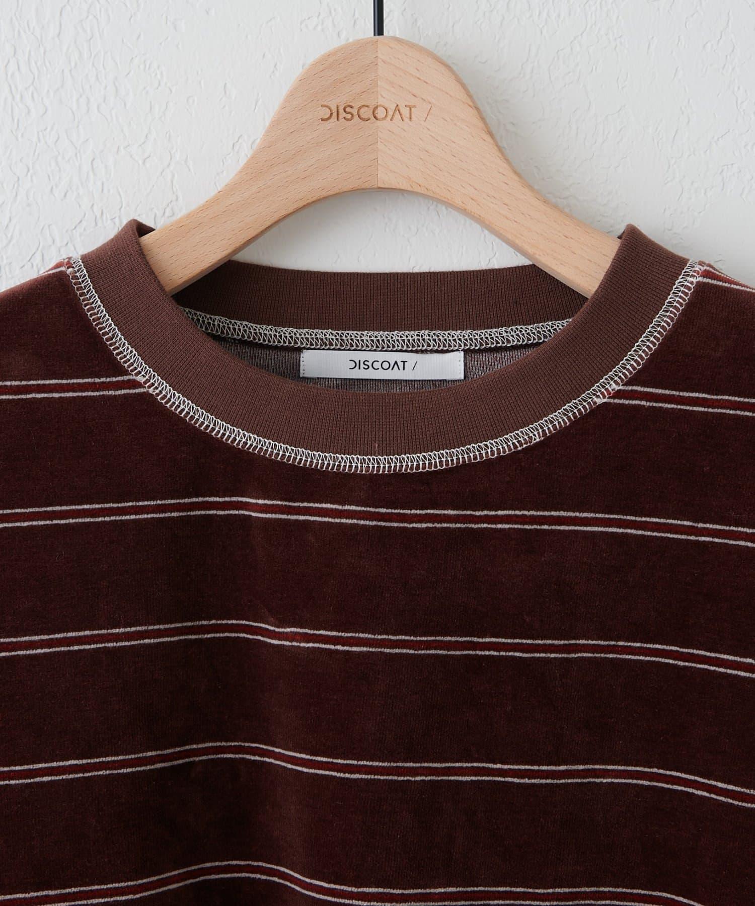 【Discoat】【男女同款】天鵝絨條紋圓領衫