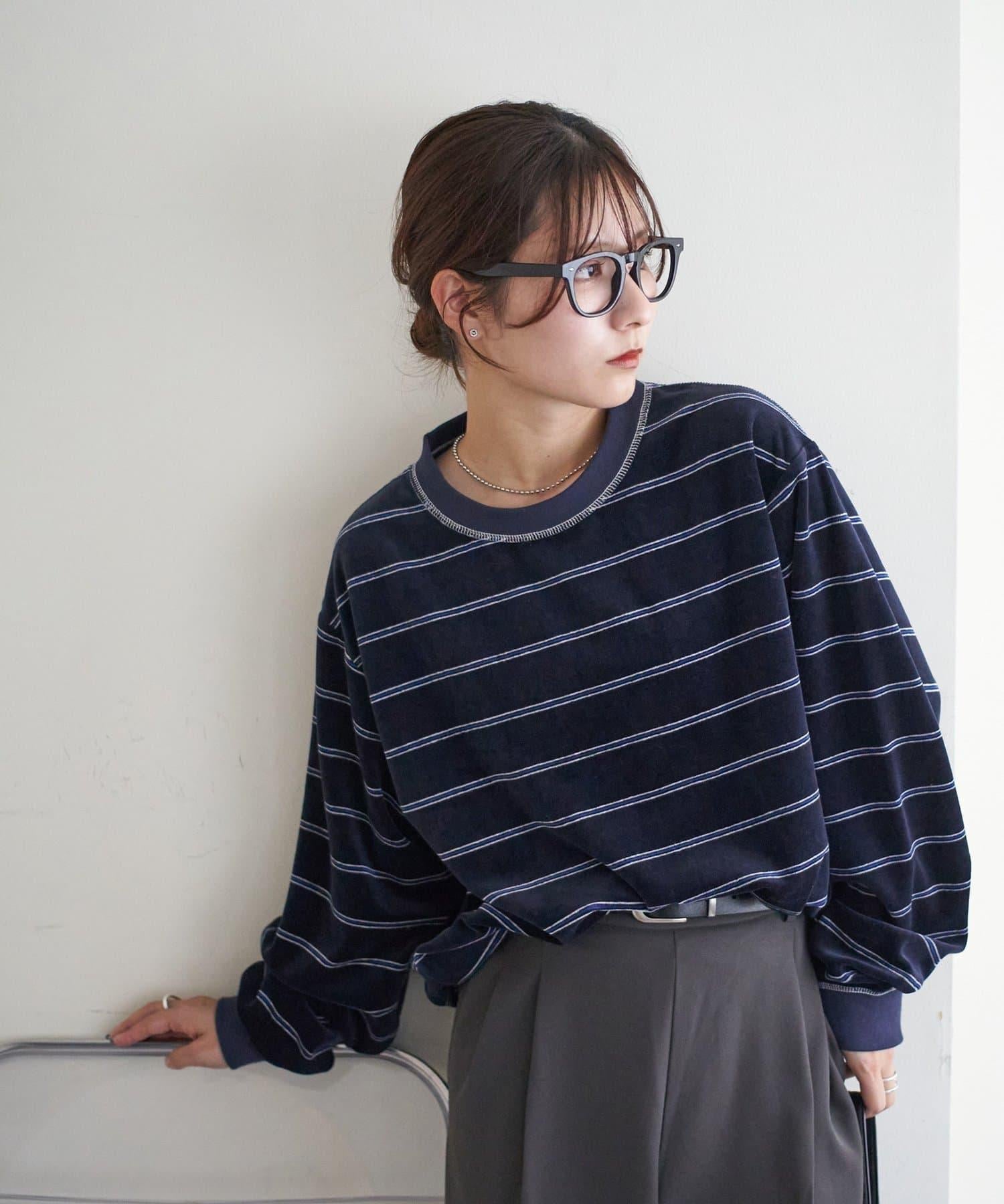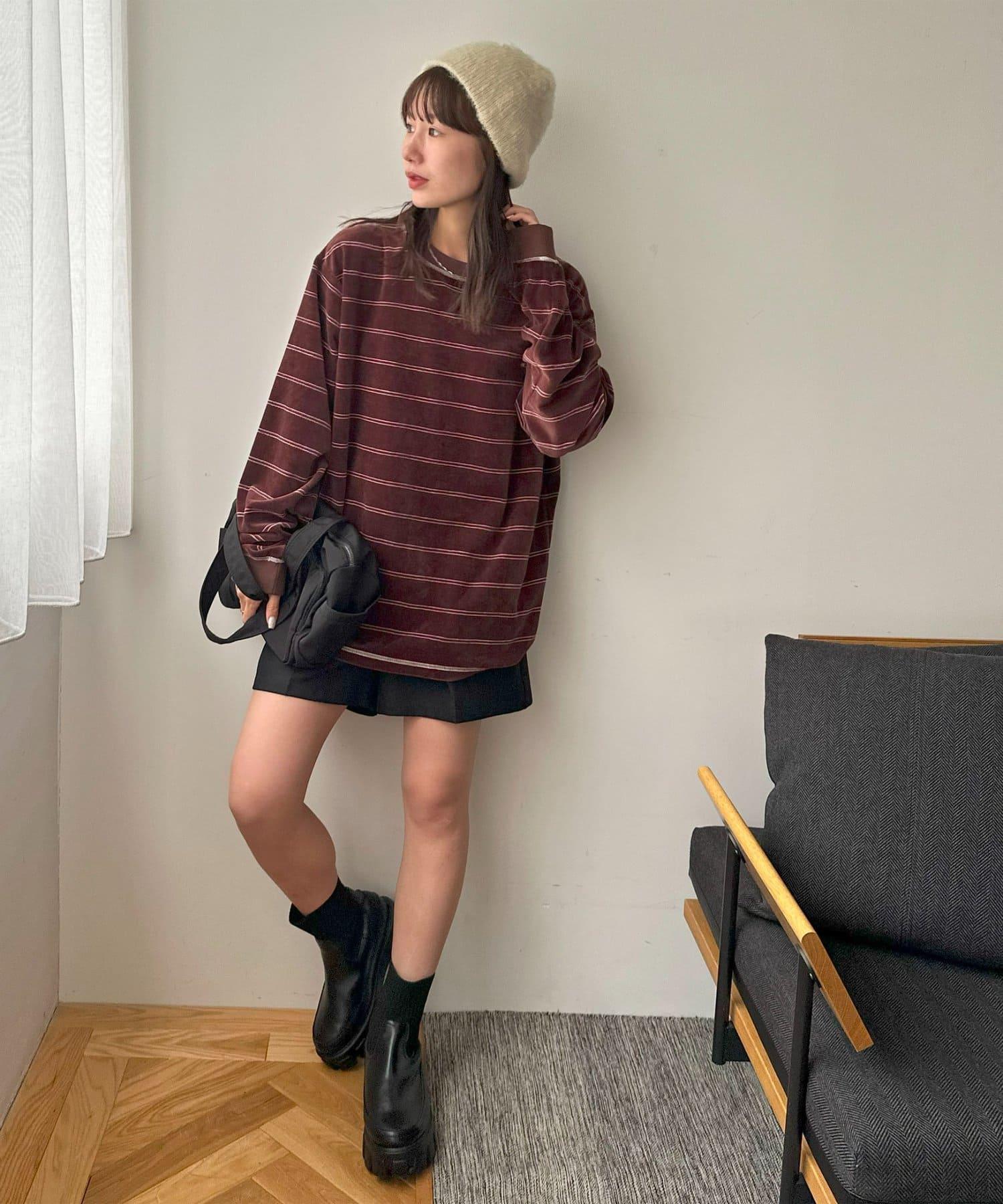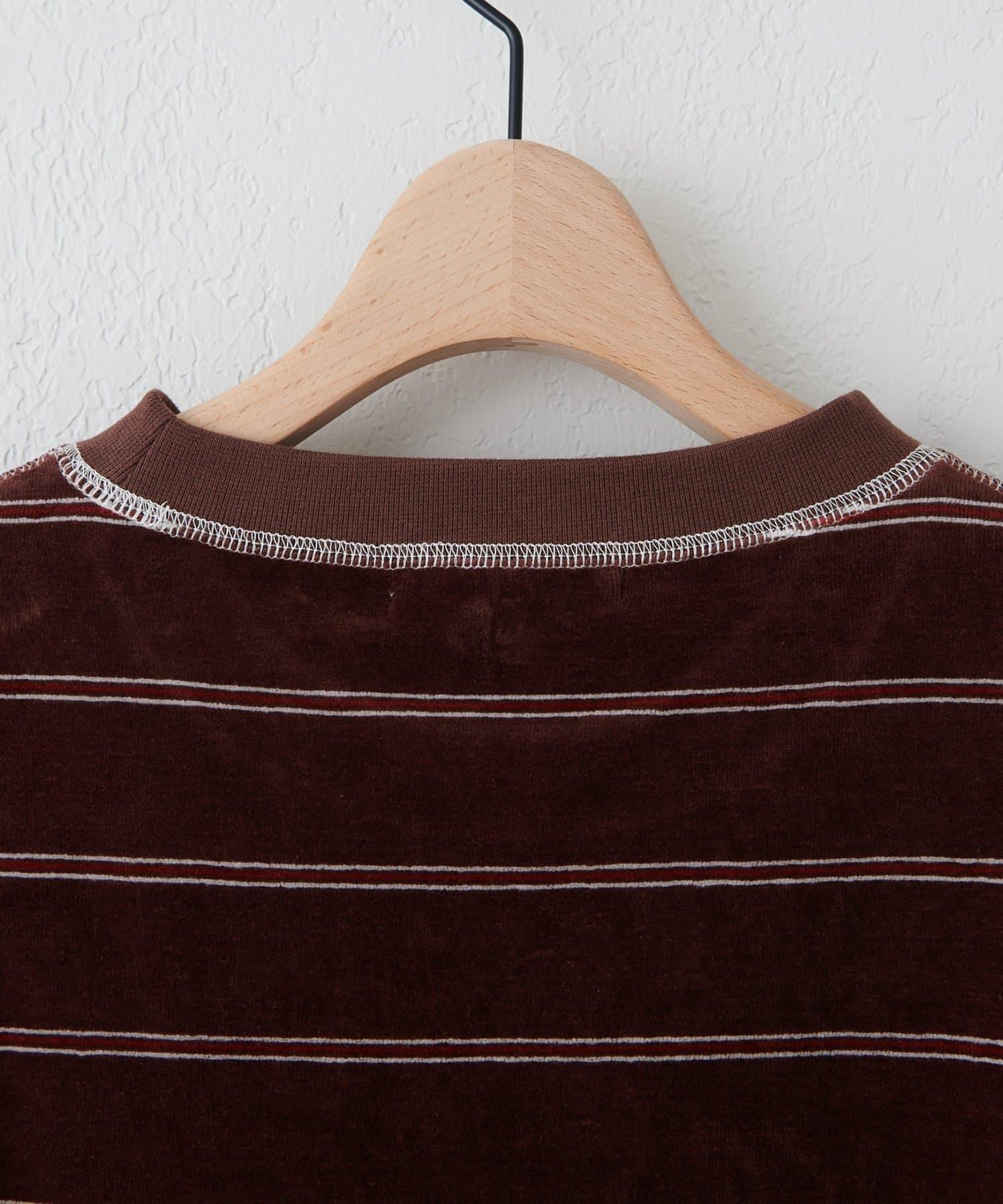 【Discoat】【男女同款】天鵝絨條紋圓領衫