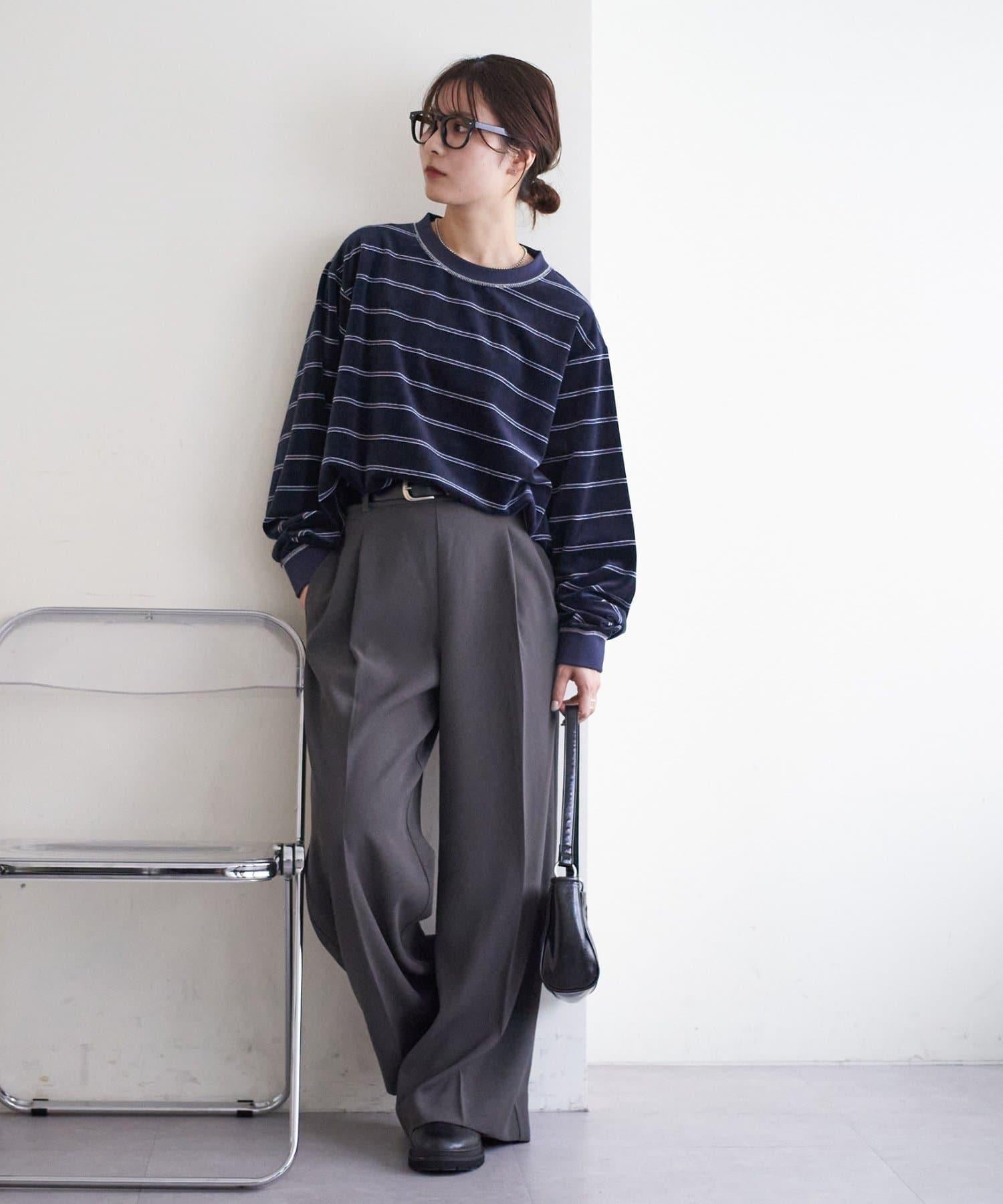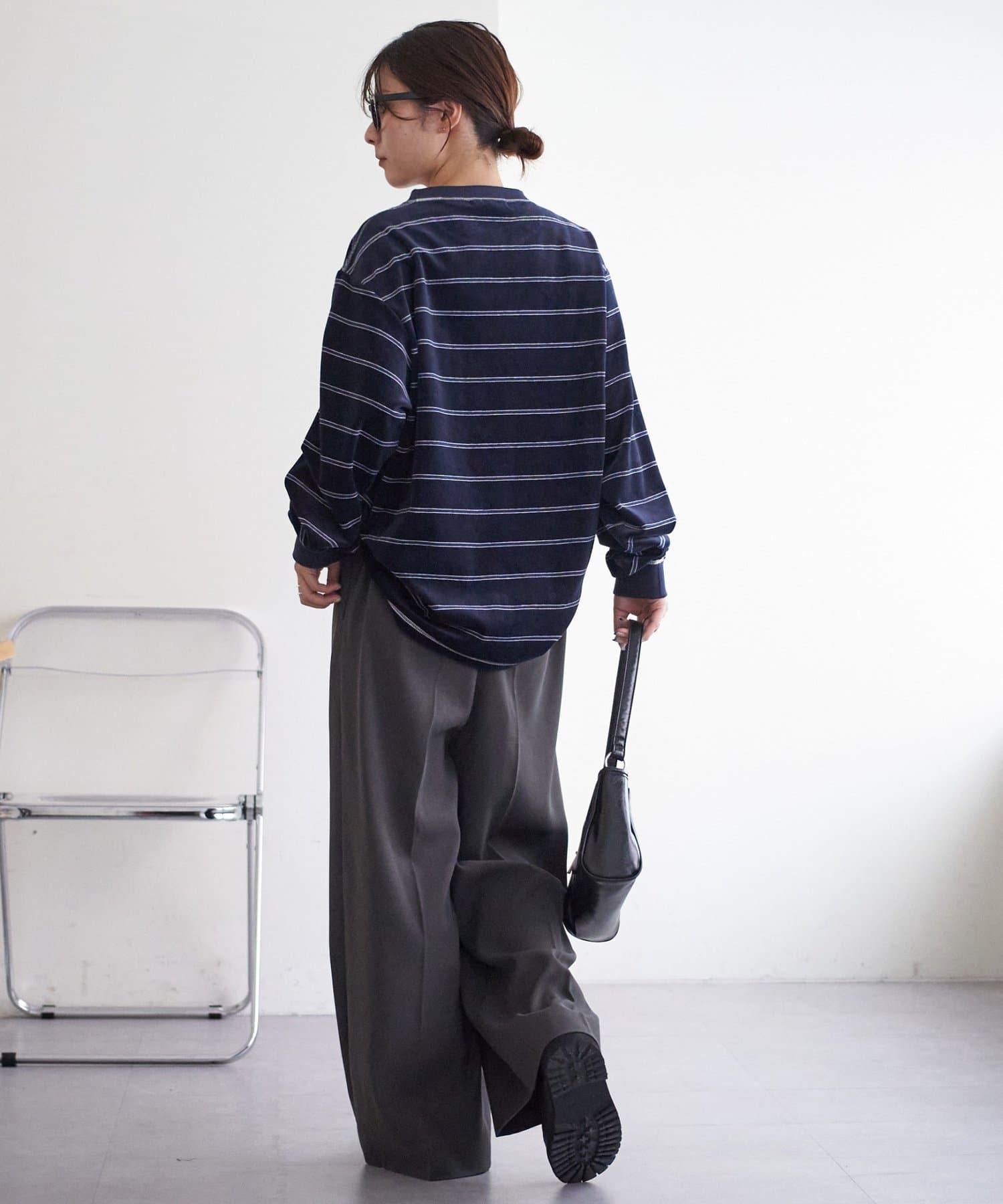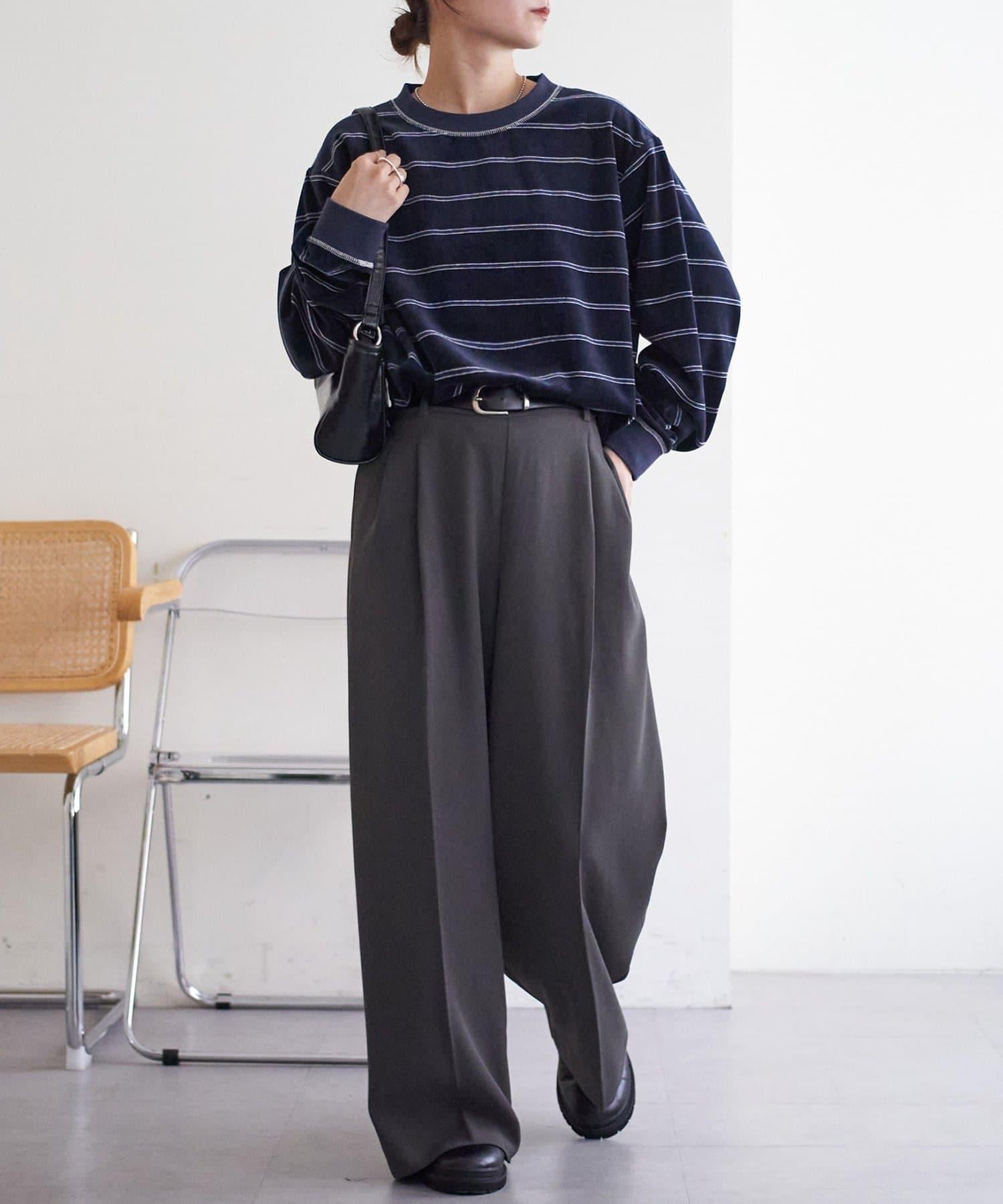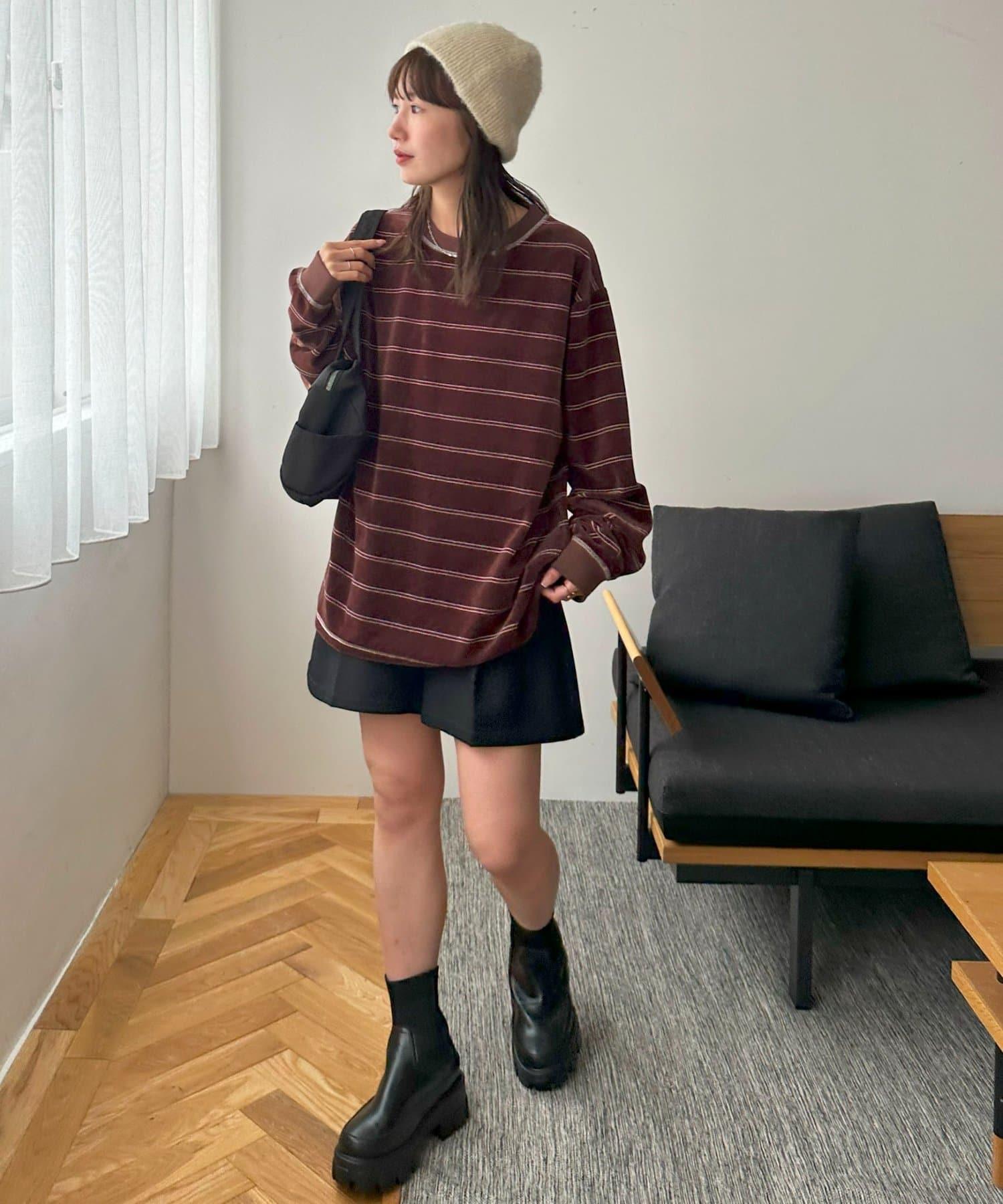 【Discoat】【男女同款】天鵝絨條紋圓領衫