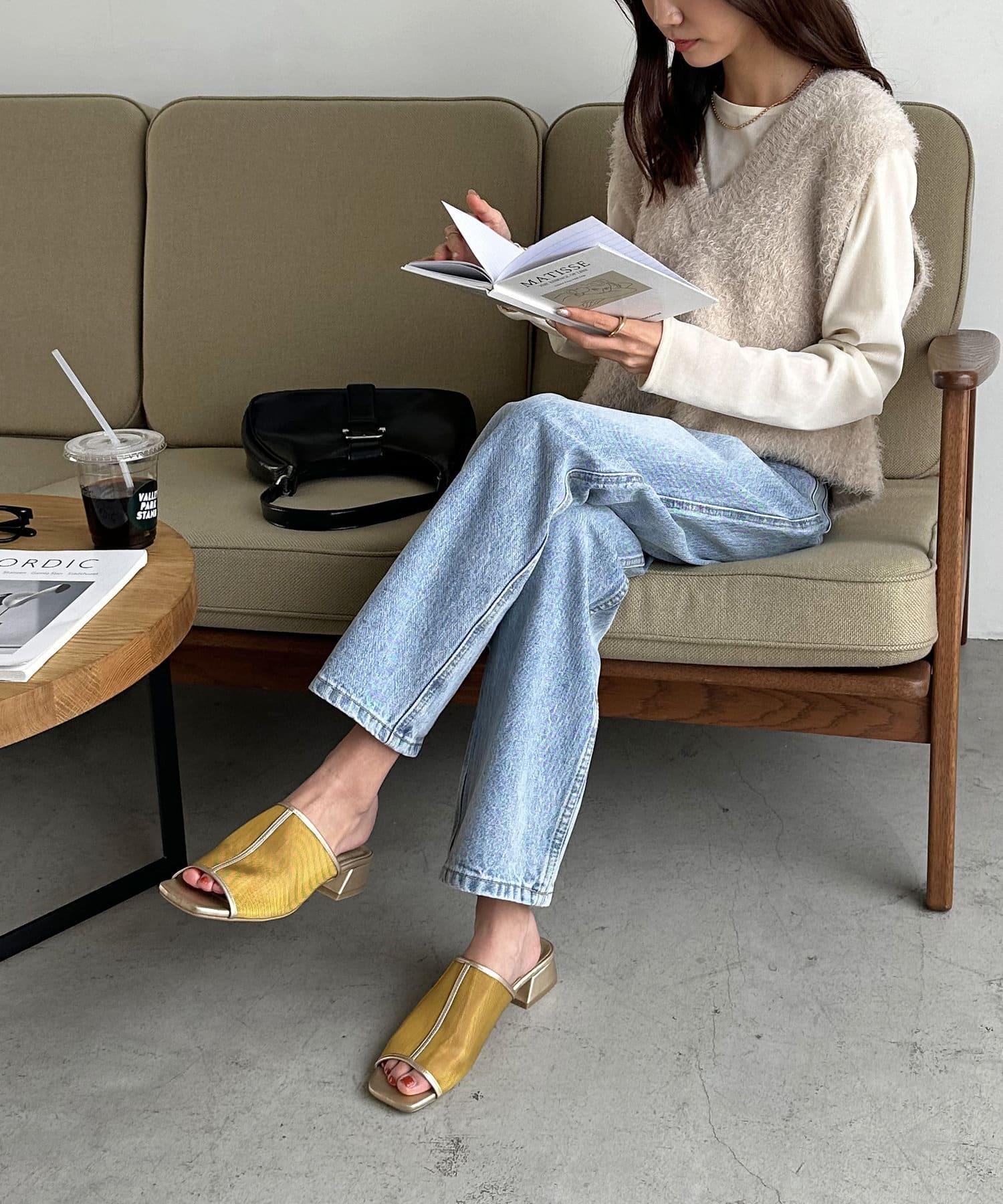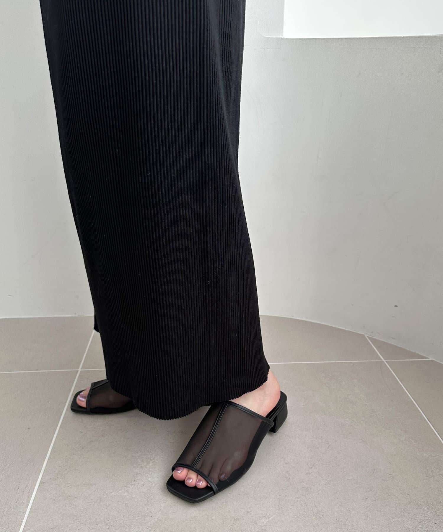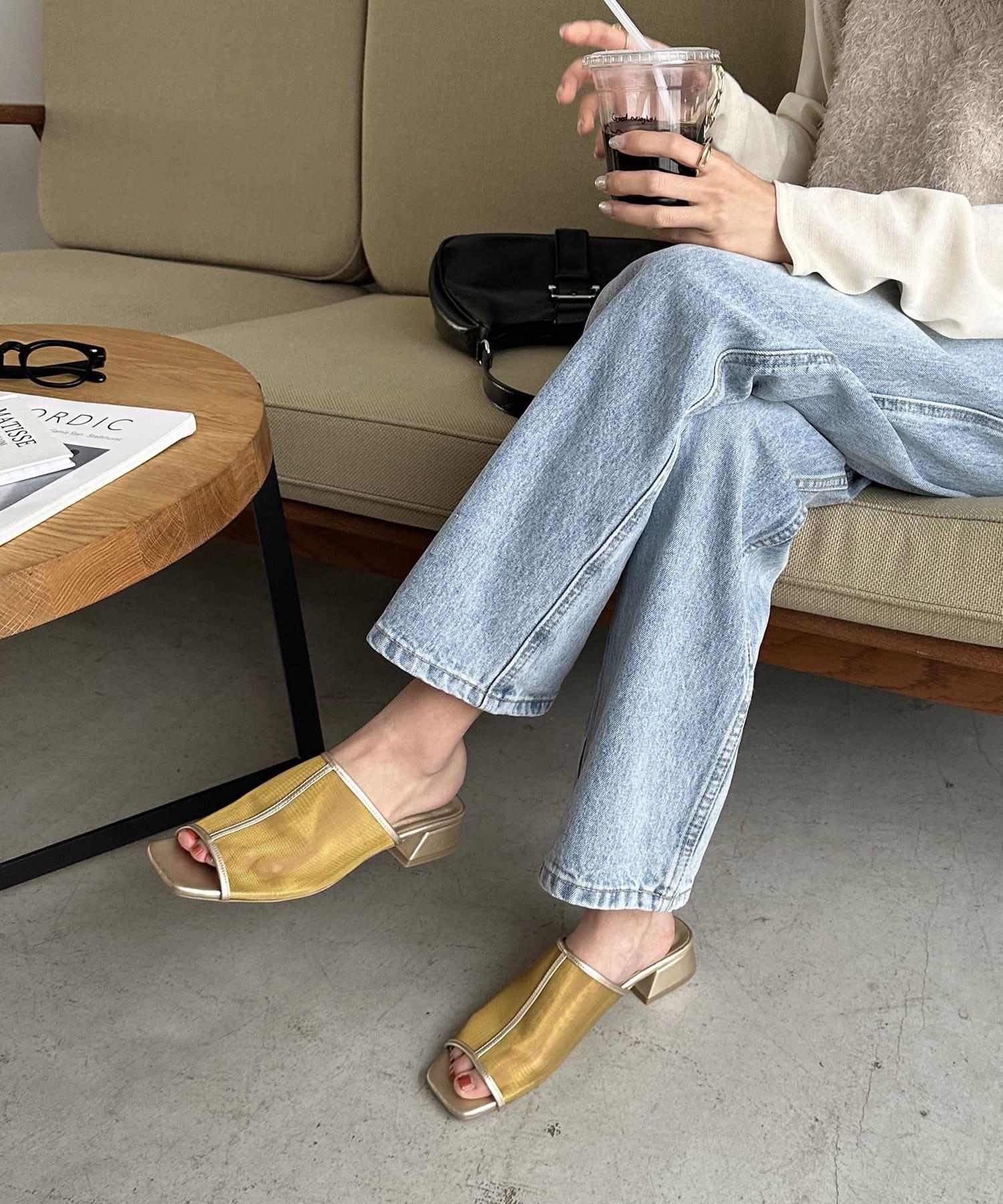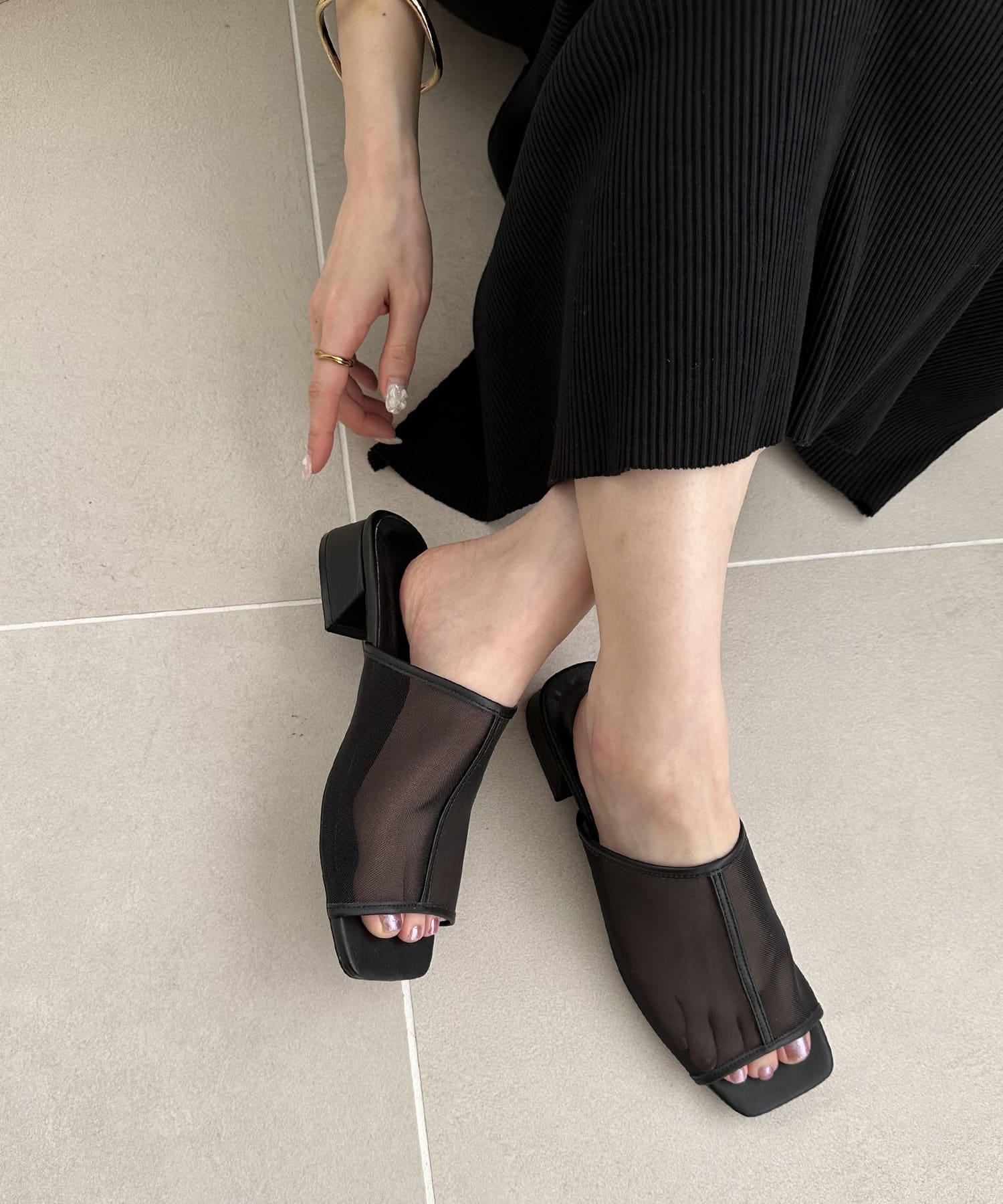夏季的經典 "透視單品 "從腳部開始協調!薄紗材質不會過於透明,給人很好的舒適感,裸露肌膚;3 厘米梯形鞋跟不會過高,給人穩重感,穿久了也不會累。鞋跟是梯形鞋跟,鞋跟不太高(3 厘米),給人一種穩定感,即使長時間穿著也不會覺得累。雖然是薄紗材質,但不僅可以搭配漂亮的款式,也可以搭配牛仔褲等休閒搭配。