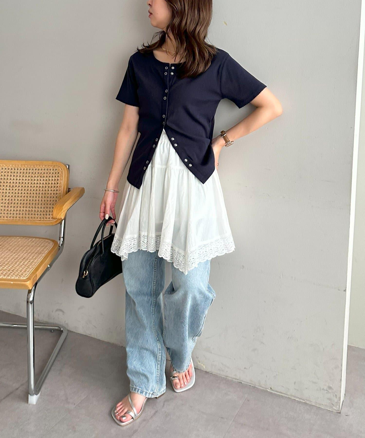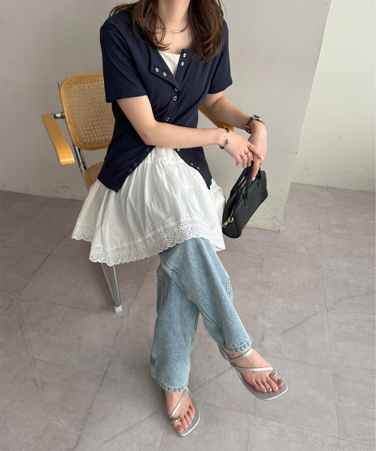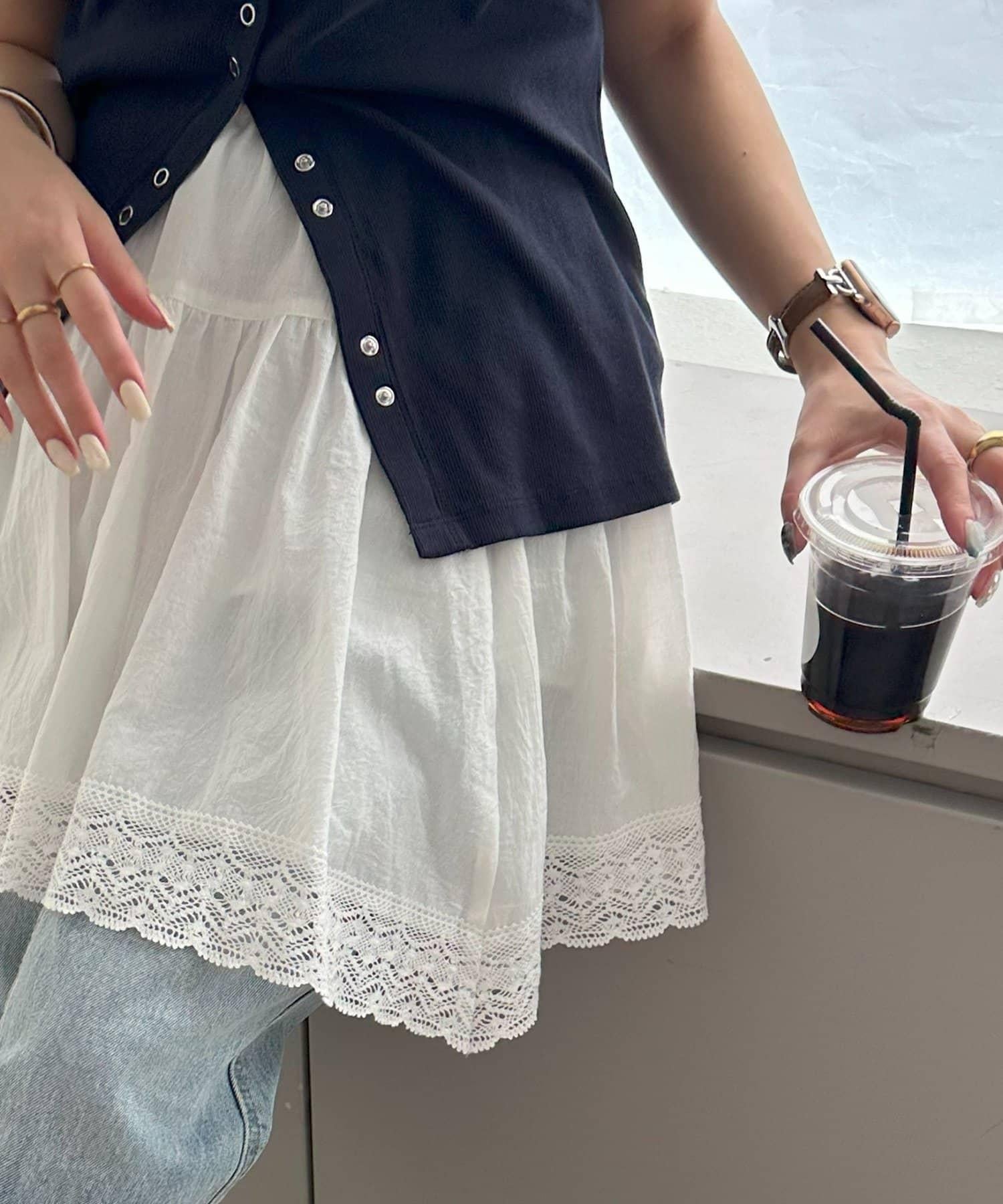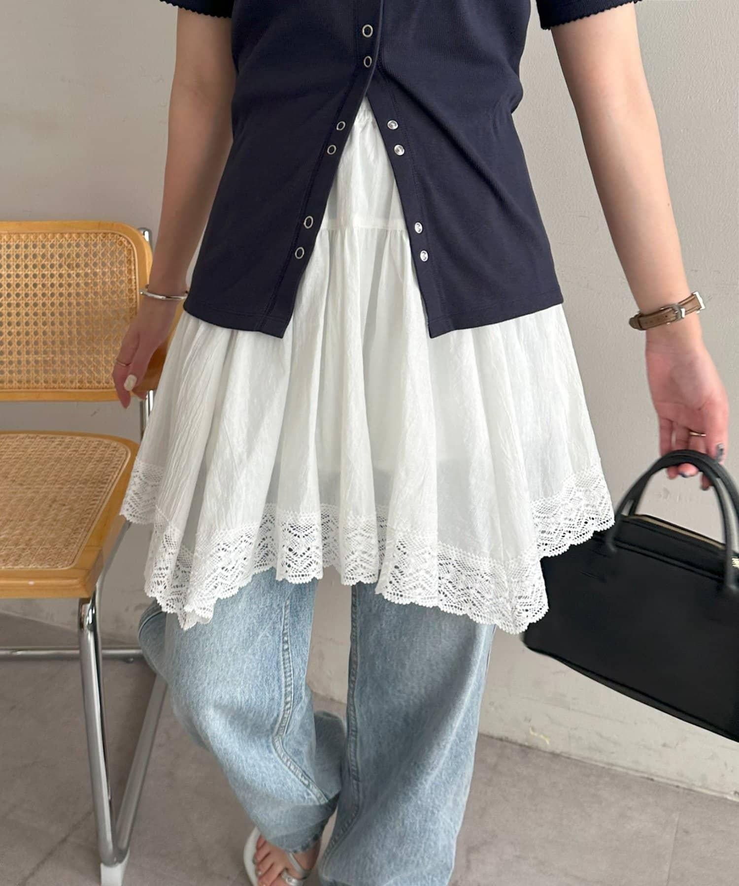下襬採用蕾絲裝飾,給人甜美而優雅的成熟印象。