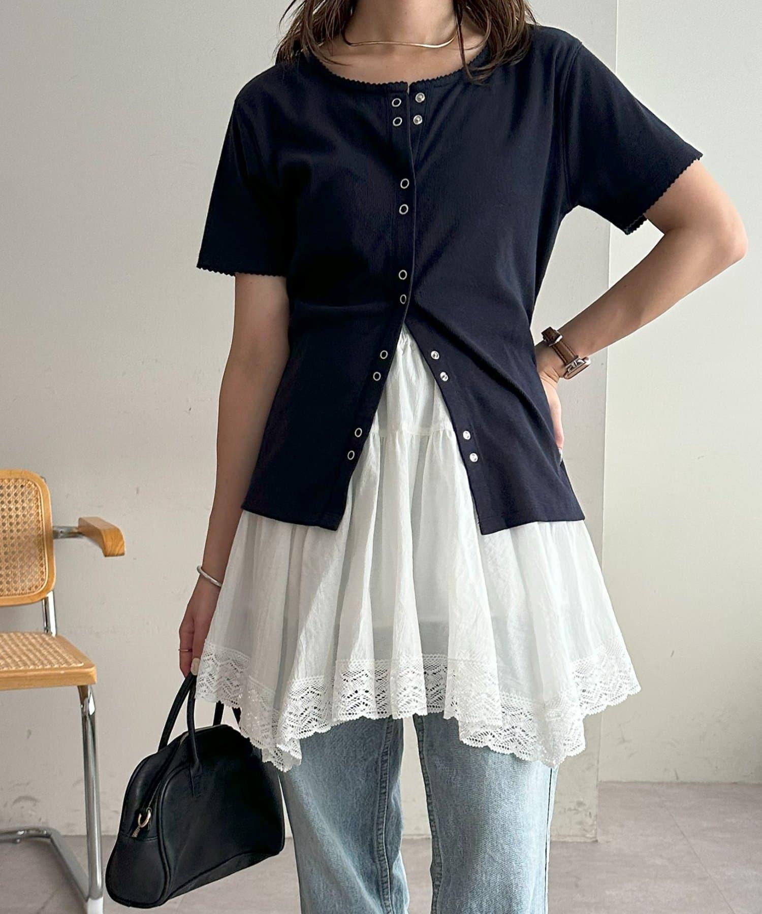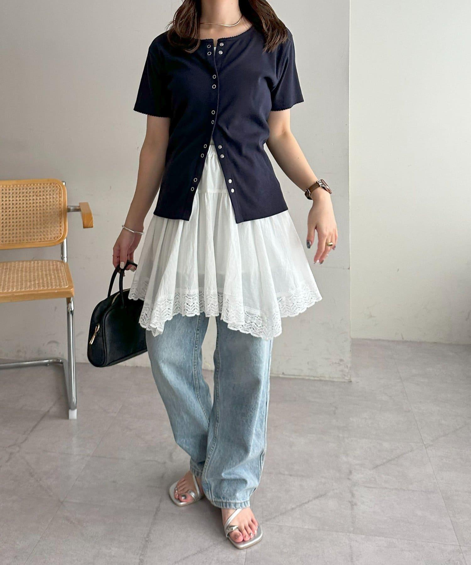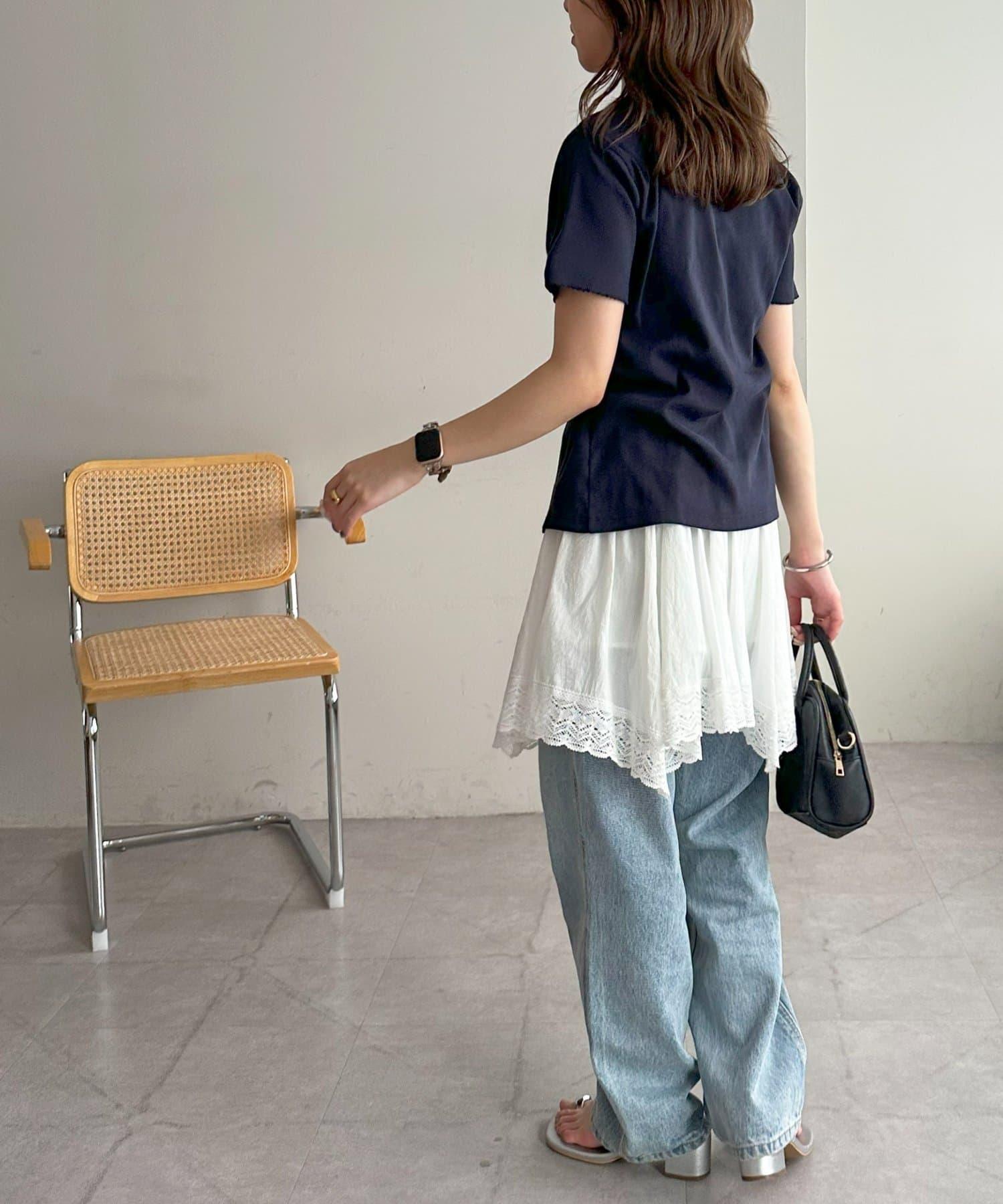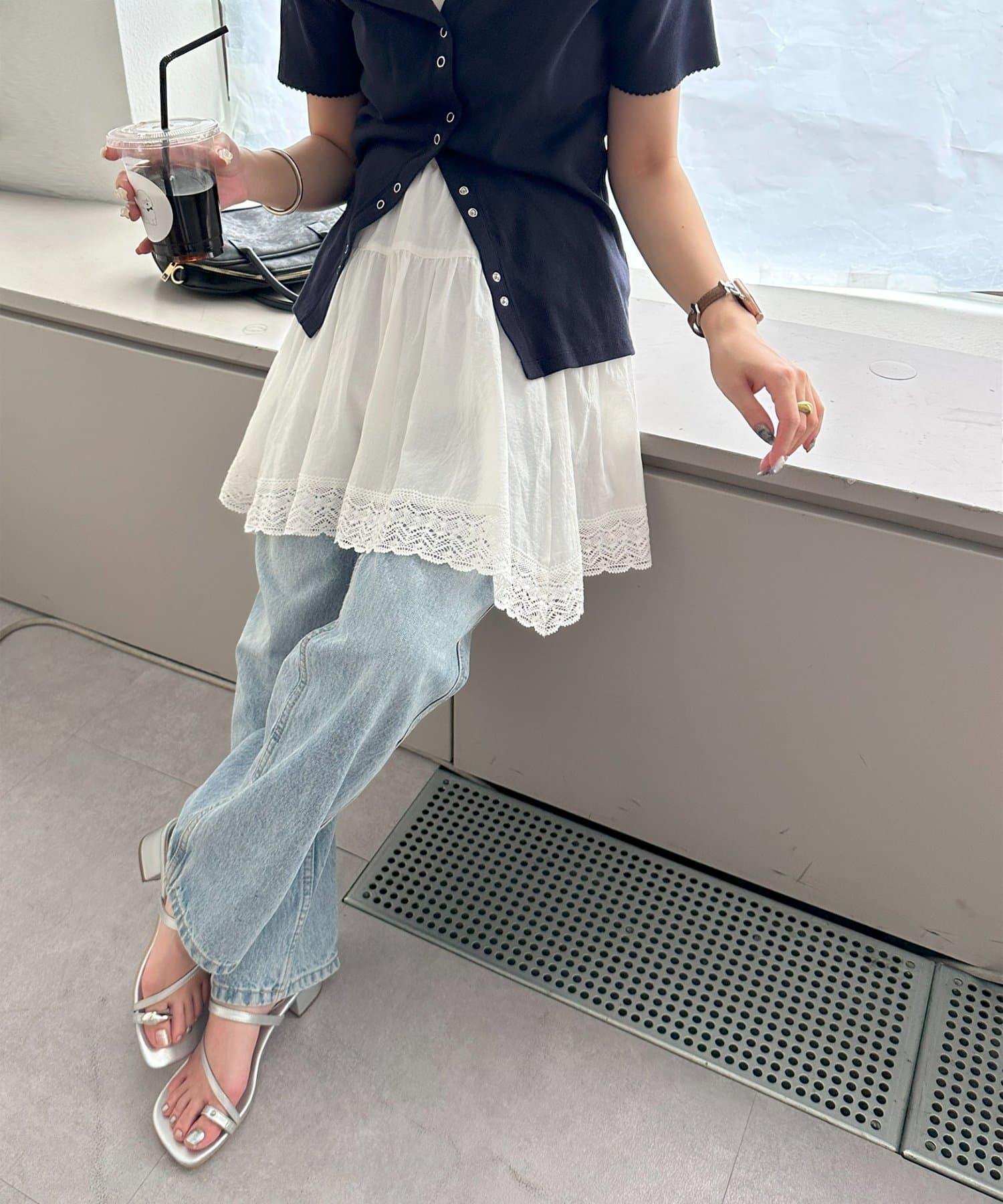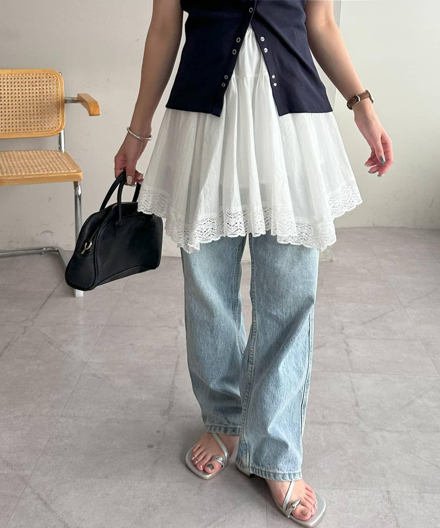 下襬採用蕾絲裝飾,給人甜美而優雅的成熟印象。
