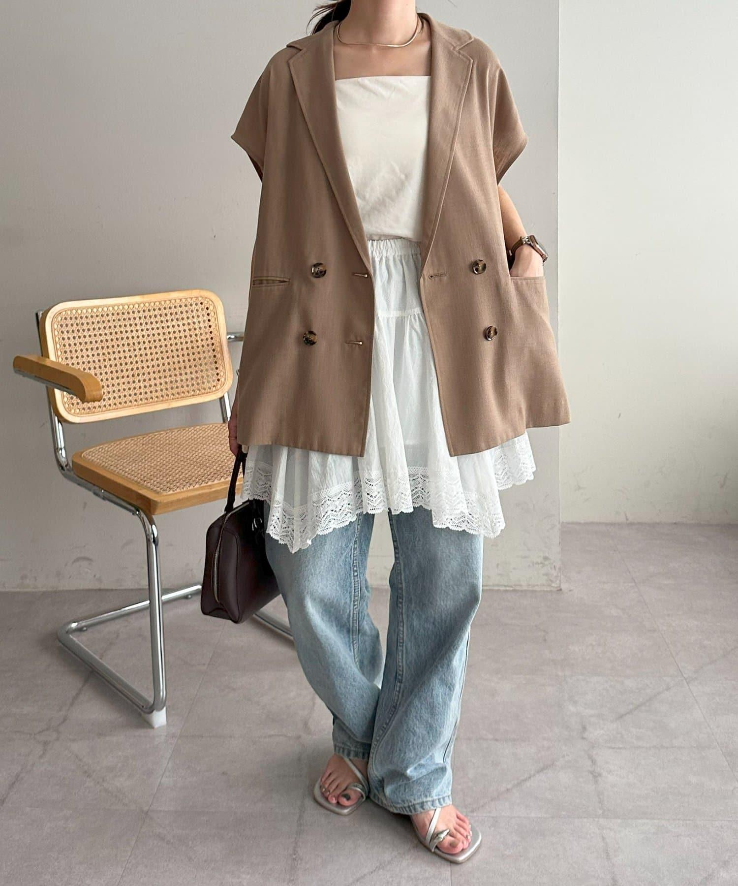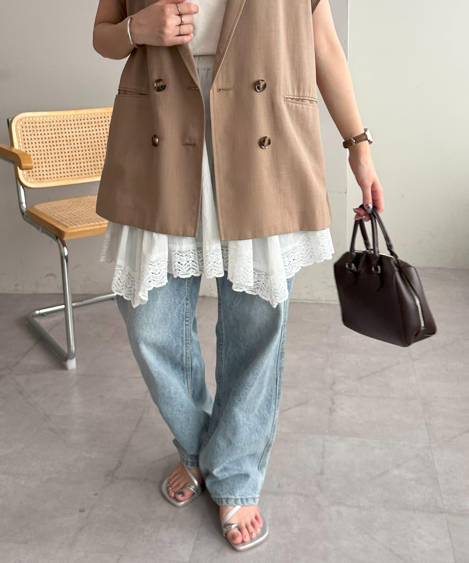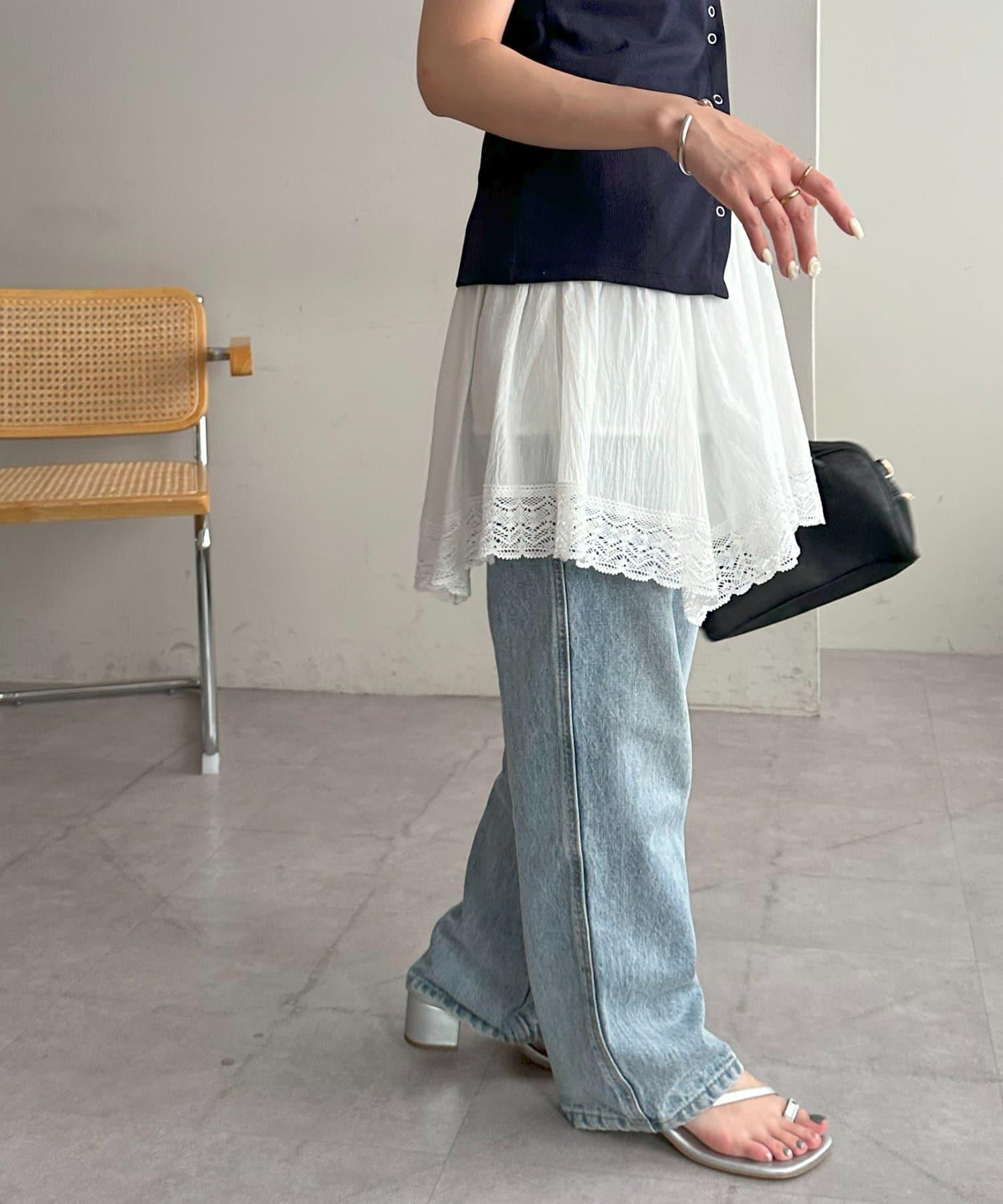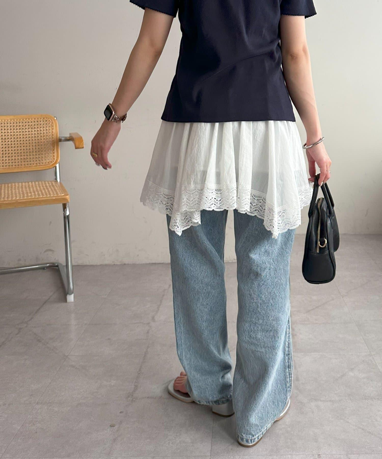 下襬採用蕾絲裝飾,給人甜美而優雅的成熟印象。