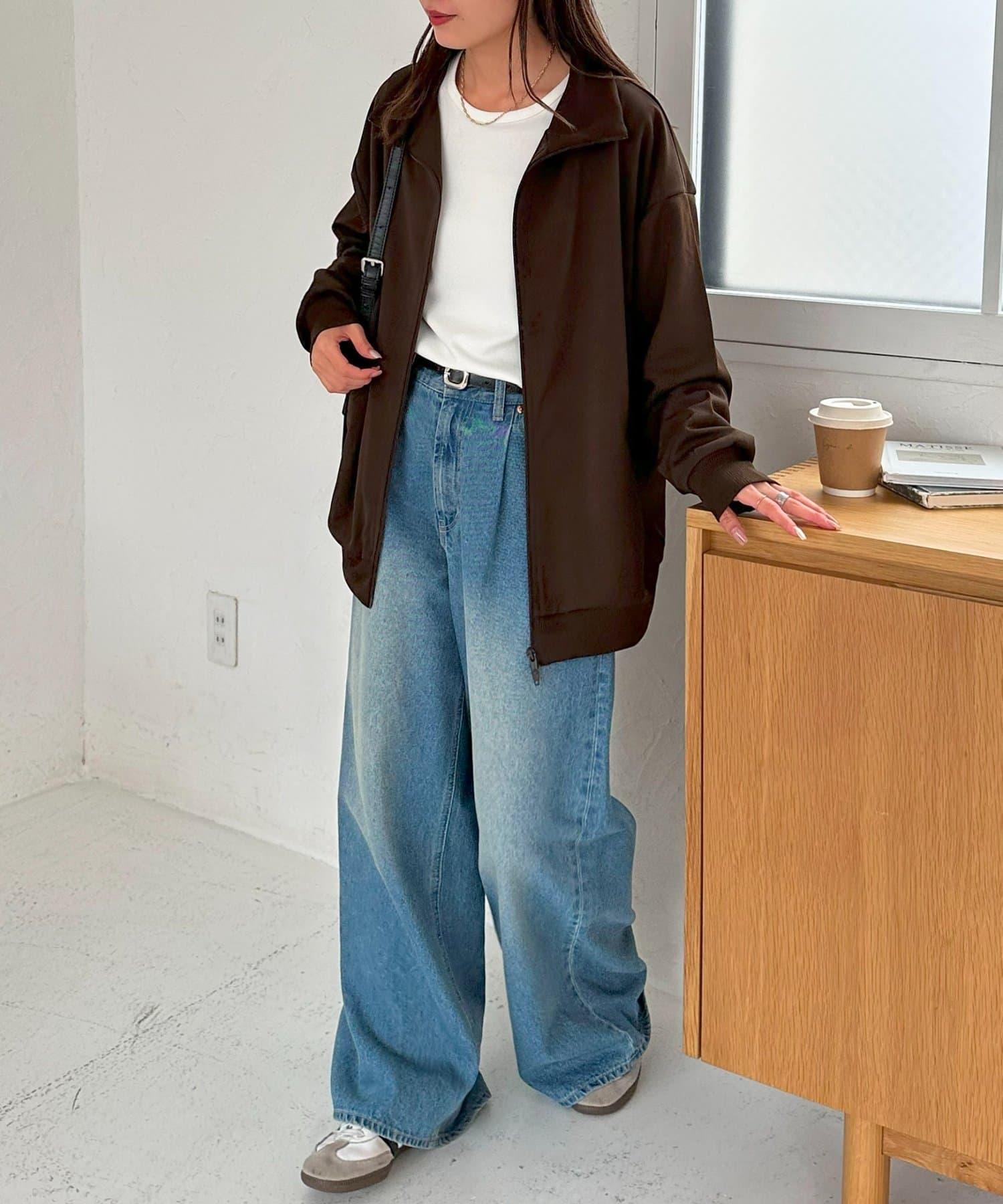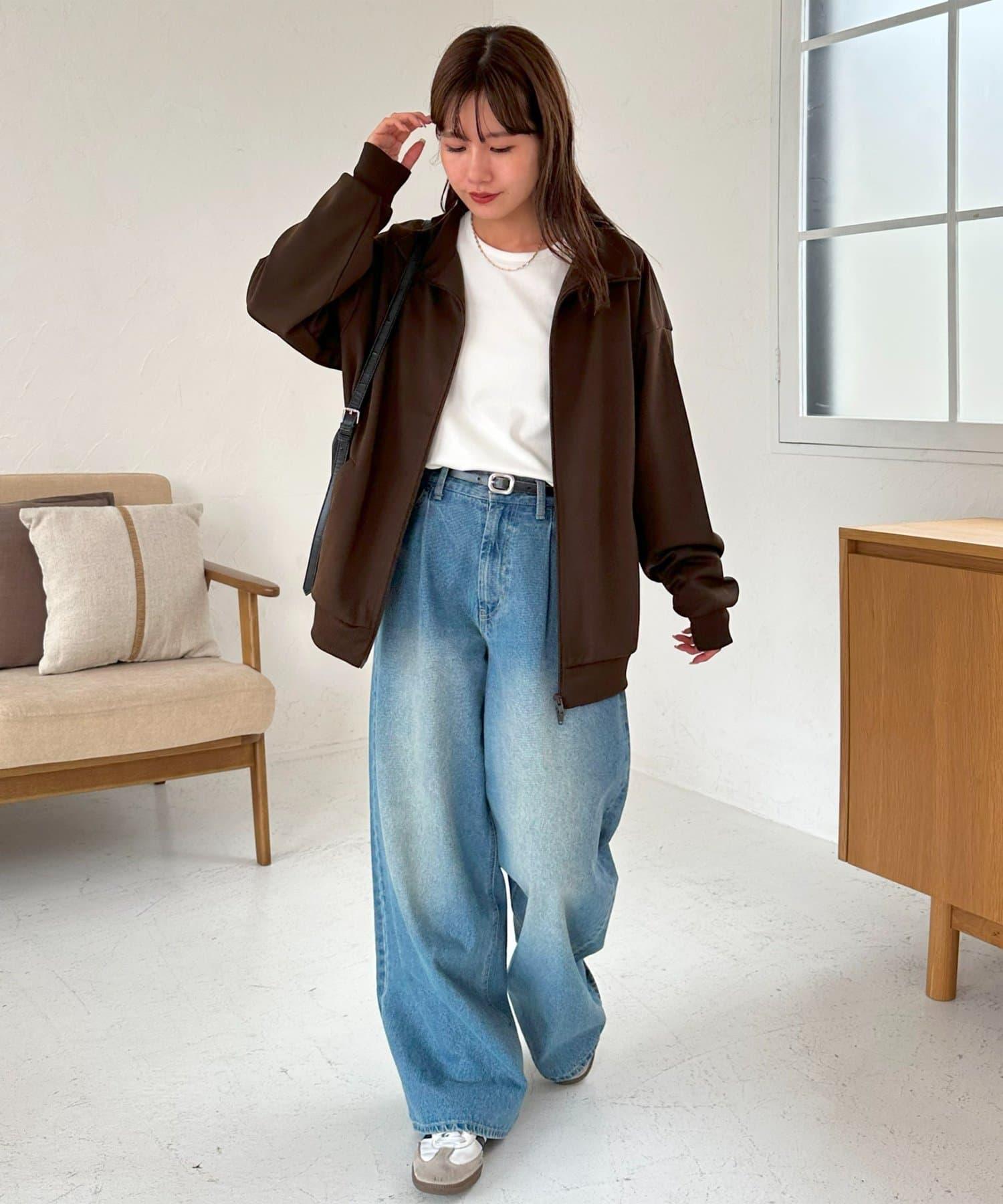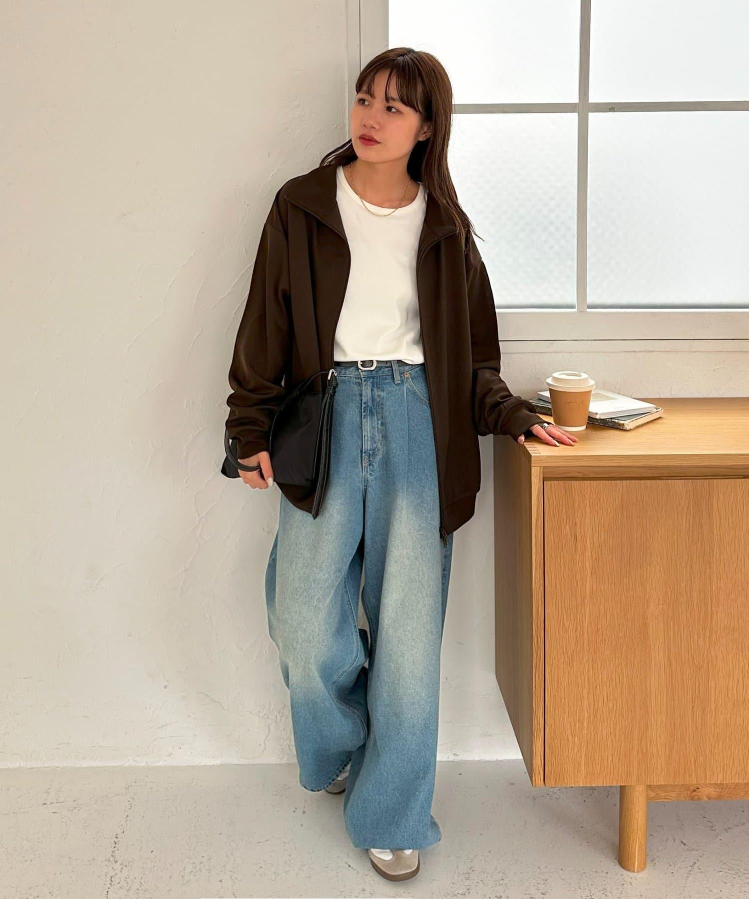 155 厘米女裝員工:寬鬆的尺碼完全遮住臀部的長度讓人欣喜。袖子也很長,但肋部結實,所以到手就停住了◎與連衣裙或短裙搭配時很可愛,粗獷的風格也能輕鬆完成!
