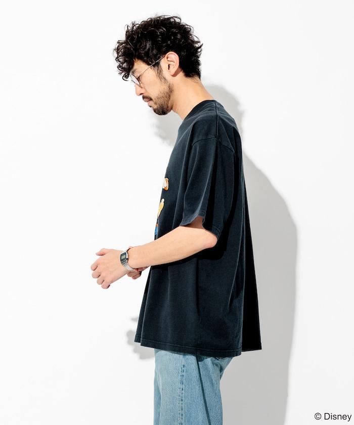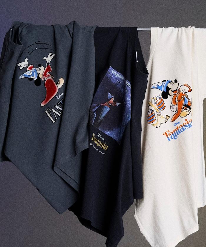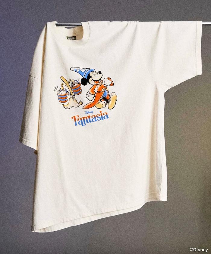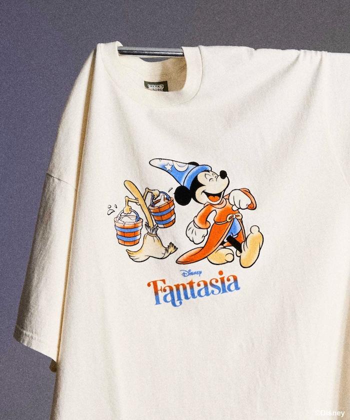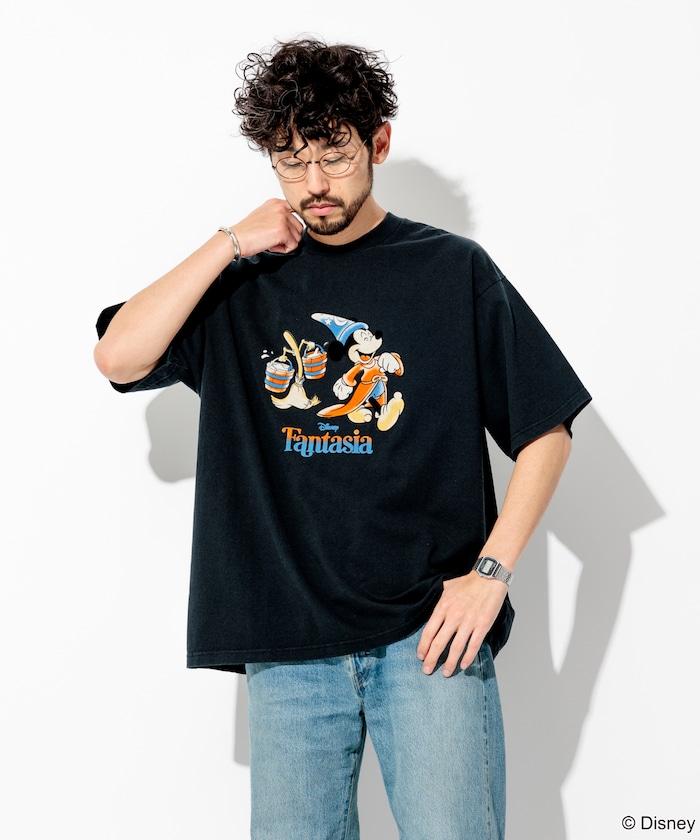 DISNEY/《迪士尼》/『幻想曲』/藍色/米奇老鼠/絨布印花 圓領T恤