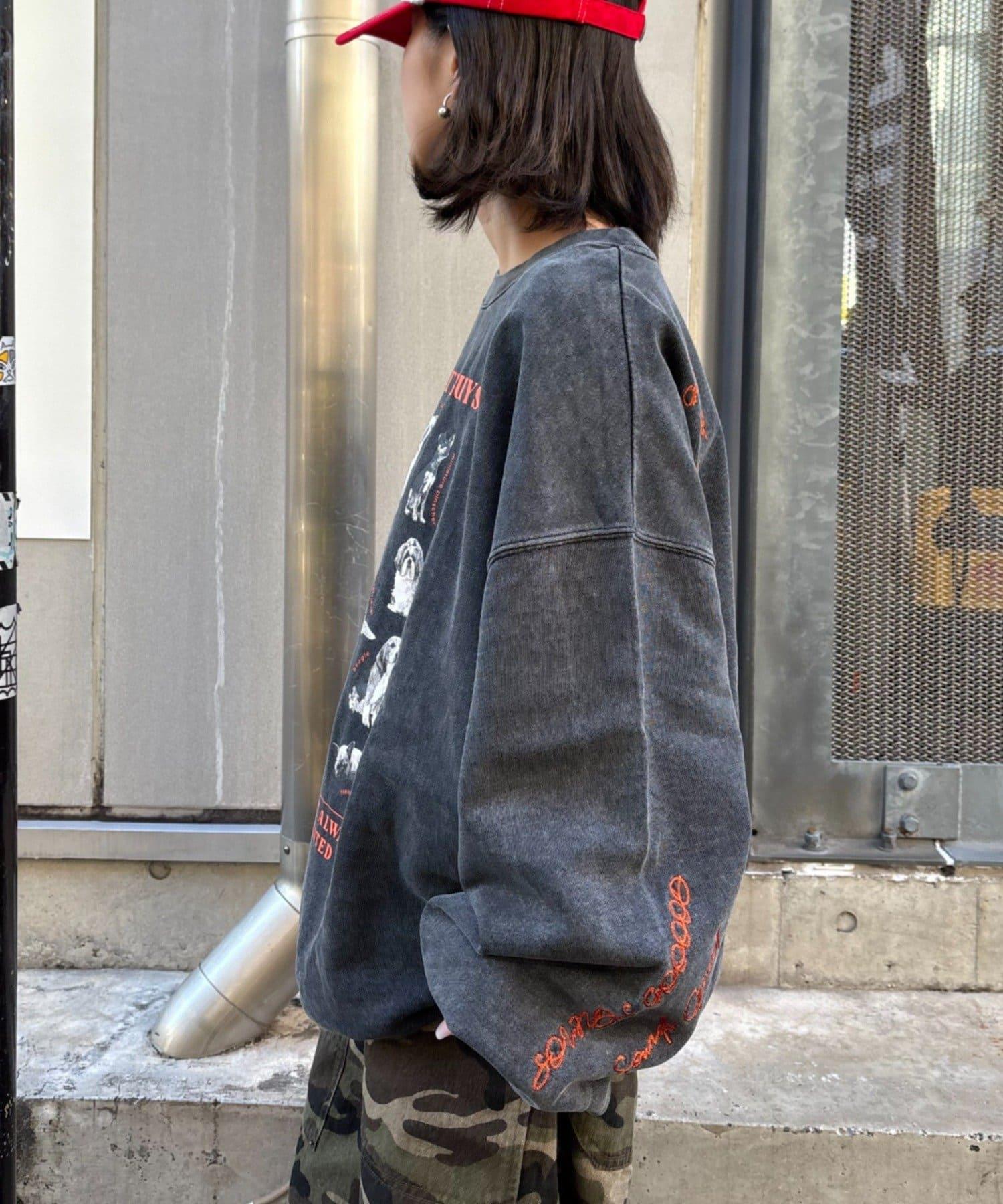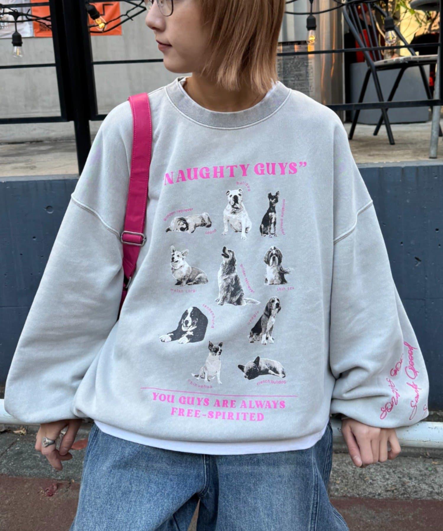 黑色衛衣上印有穩重可愛的小狗圖案。
