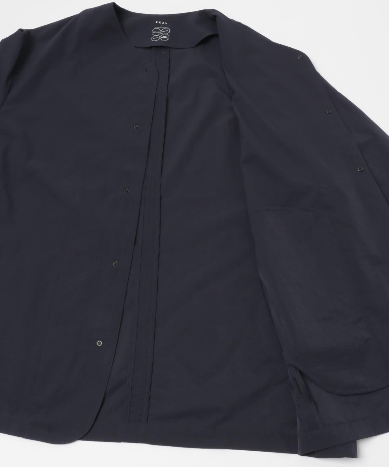 無領設計以相同材料製成的夾克為基礎。👍後以簡約、輕盈的印象收尾。