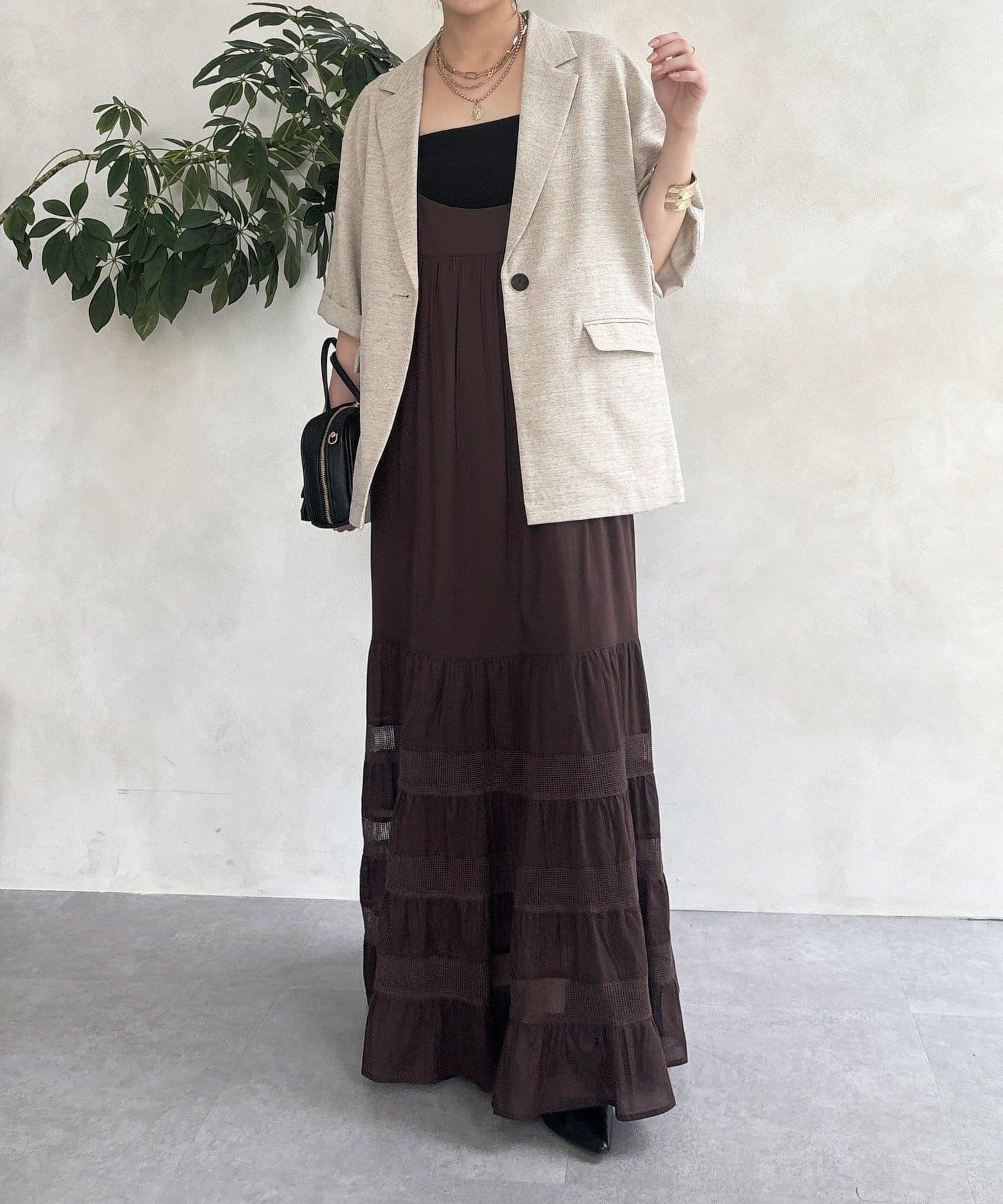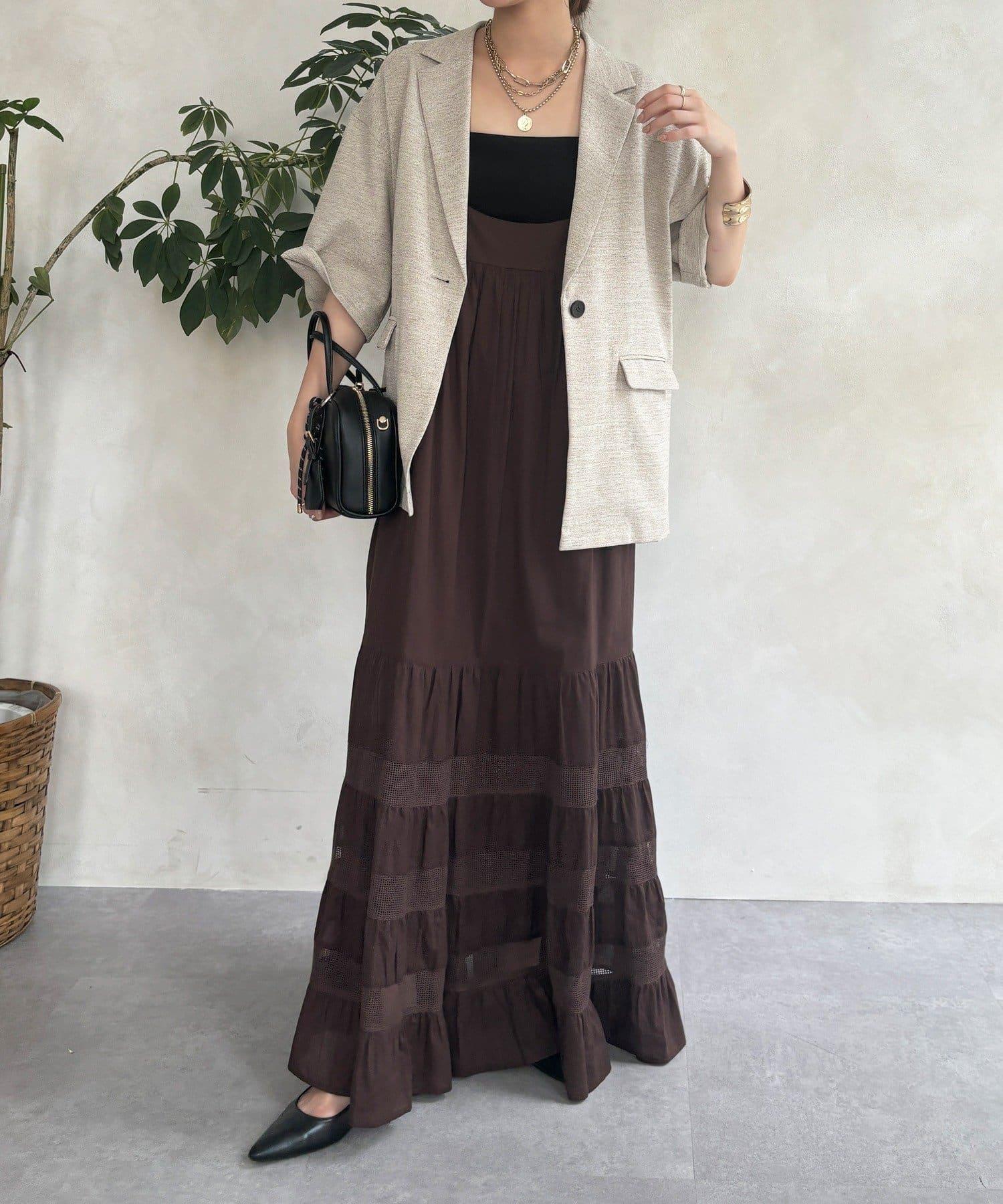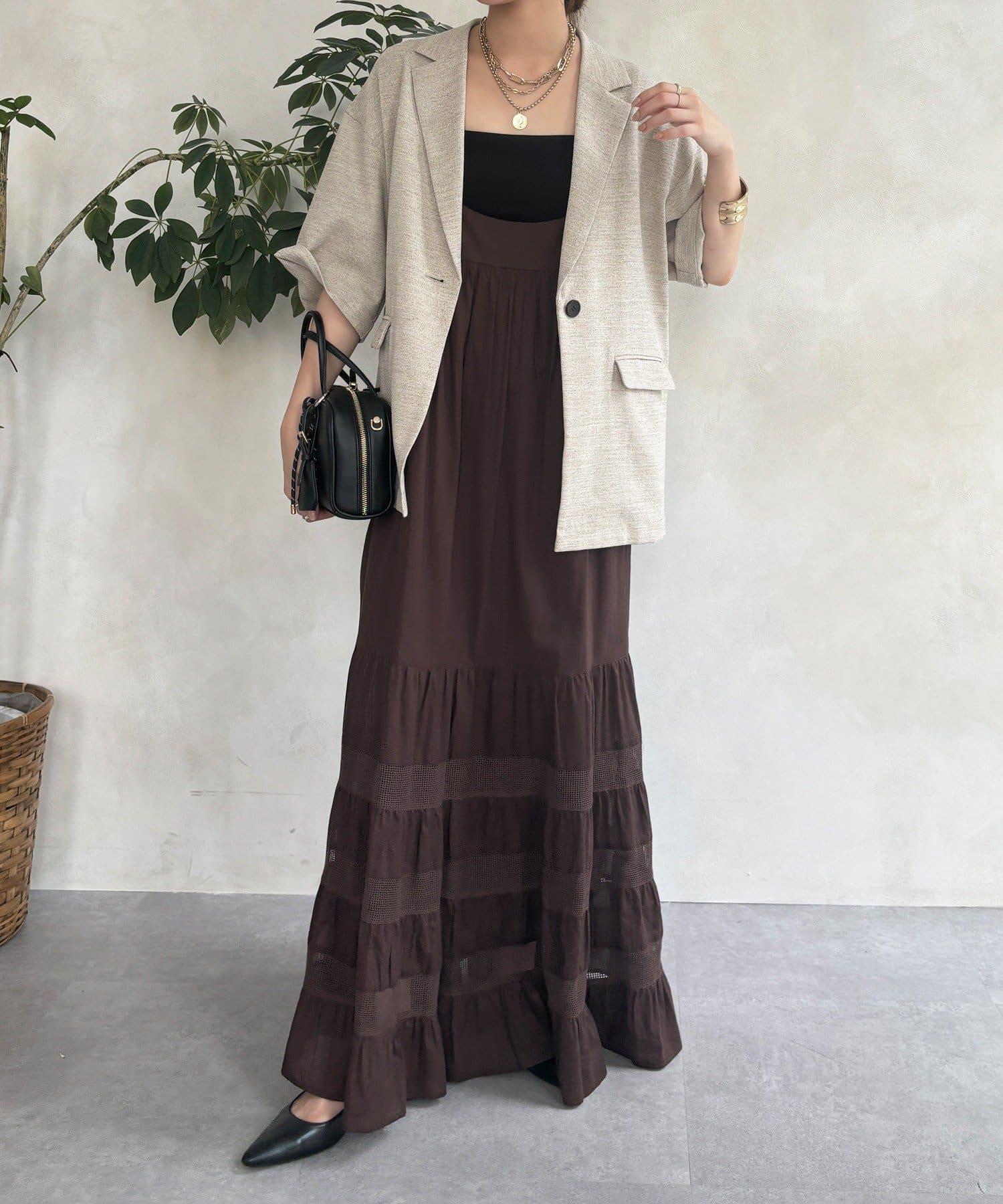 這款單品可作為套裝穿著,營造出沉穩、成熟的氛圍。