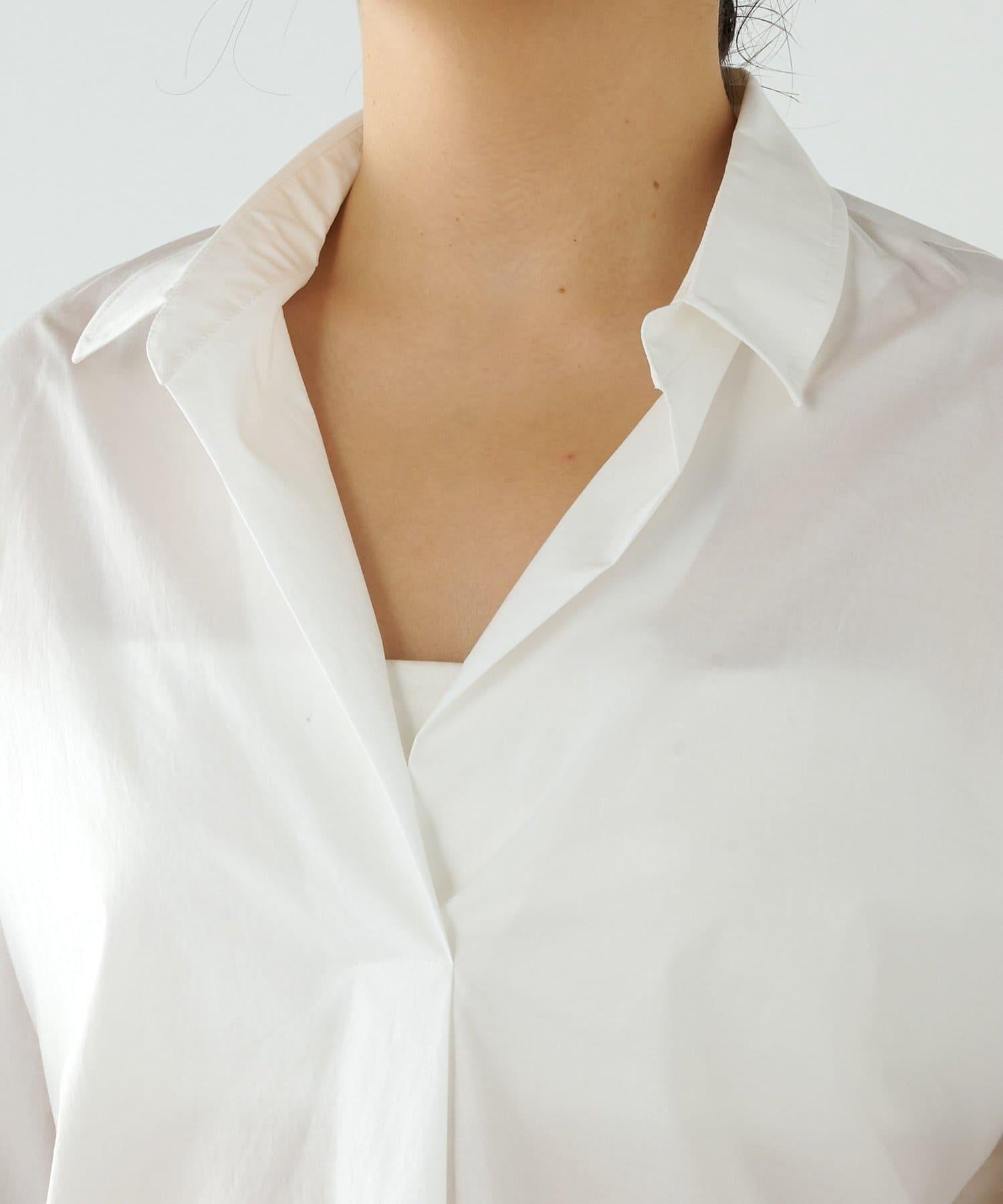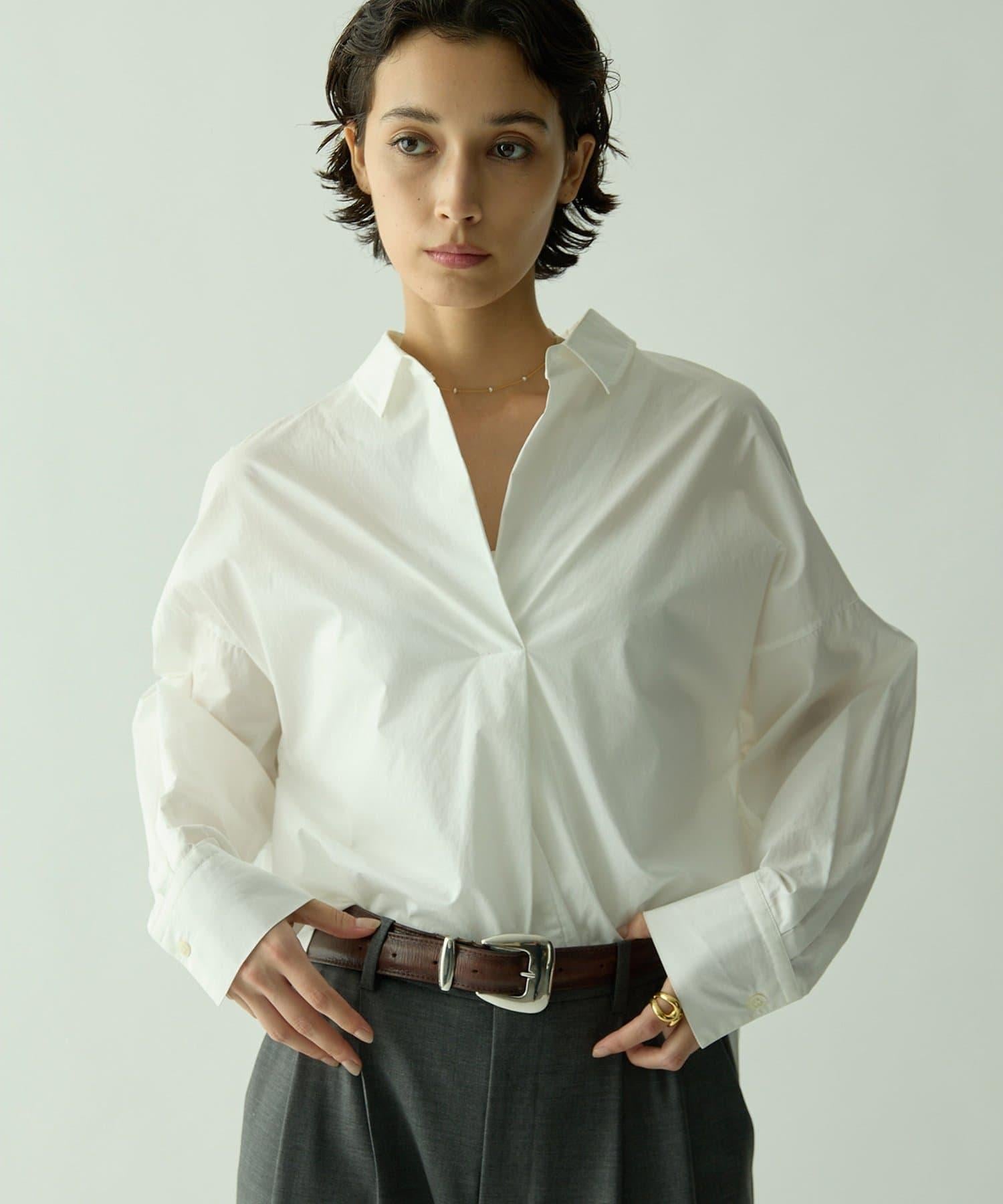 領口清晰開闊,優雅嫵媚。柔軟的棉質面料穿著舒適。長度不會太長,能遮住臀部,便於搭配下裝。