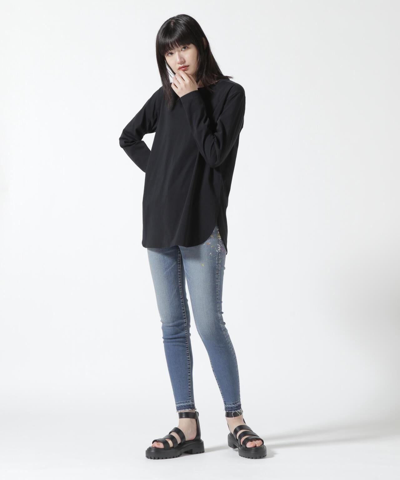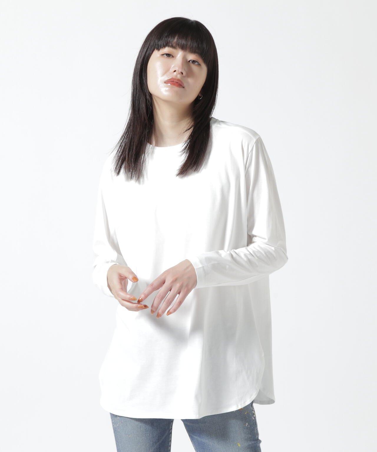 流行的長款圓擺短袖 T 恤。圓邊設計單穿也很好看。由於尺寸小巧,它非常適合那些不喜歡過大單品的人,或者想把它作為多層衣服的內搭的人。白色有點透明,所以👍穿一件吊帶衫或類似的衣服作為內層。它的面料很薄,所以夏天可以單穿,冬天可以疊穿並收邊,一年四季都可以穿。頸部的設計不太開放,也沒有羅紋,因此給人一種整潔、不太休閒的感覺。DROIT BELLO】2017AW 年👍亮相的日本品牌,以三四十歲的人群為目標消費群,提供成年人無論上班還是下班都能穿的服裝,注重材質和細節。