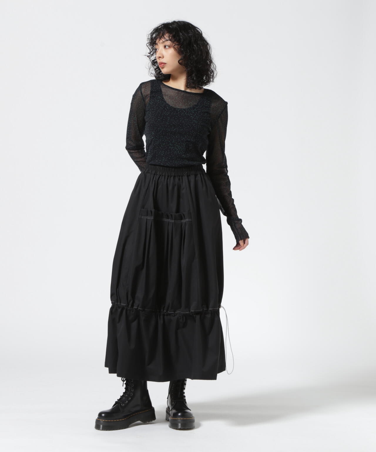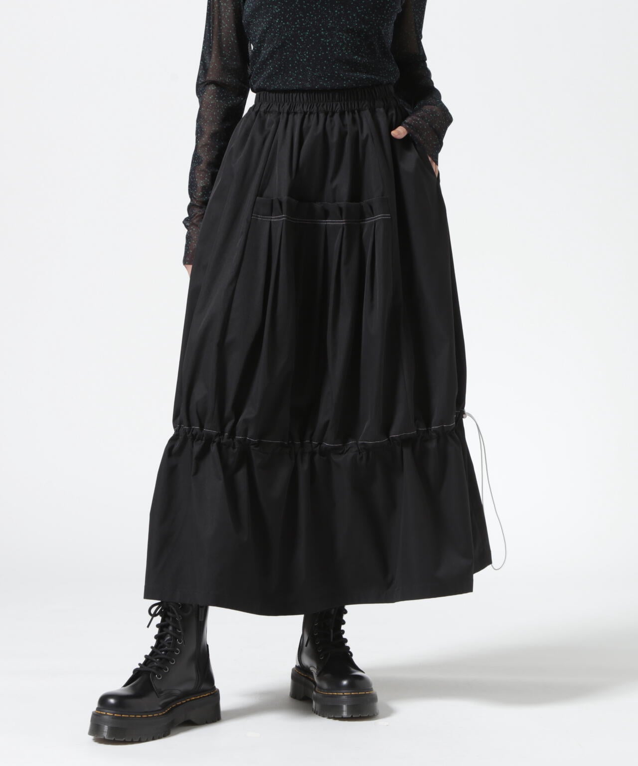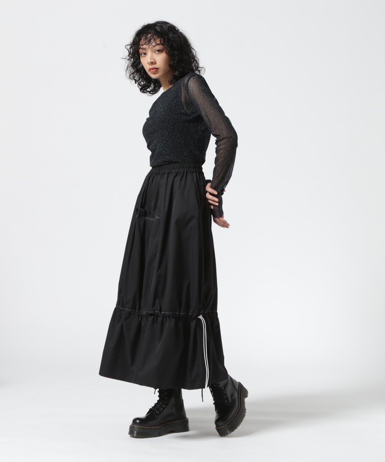 板裙的女性化輪廓也很吸引人。可通過抽繩改變廓形,使其在休閒裝中更具模式優勢。適合粗獷、休閒的造型,又不失霸氣。