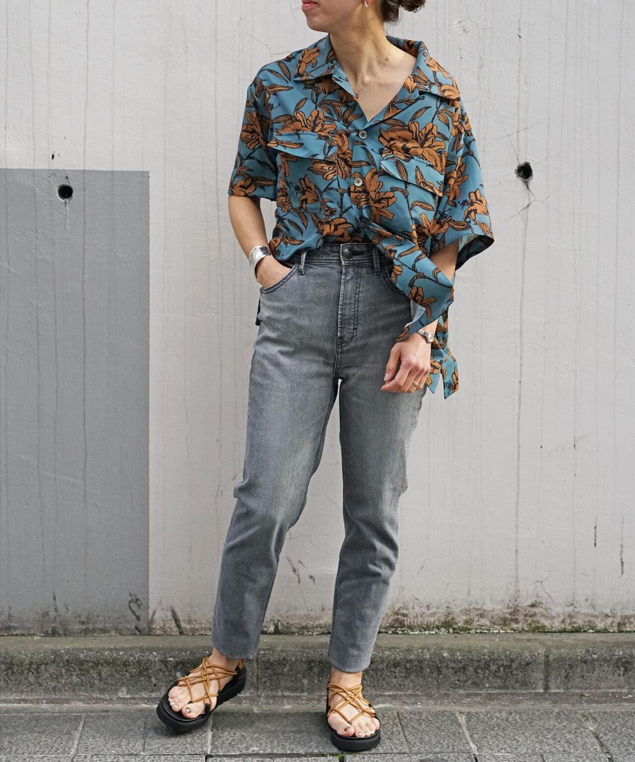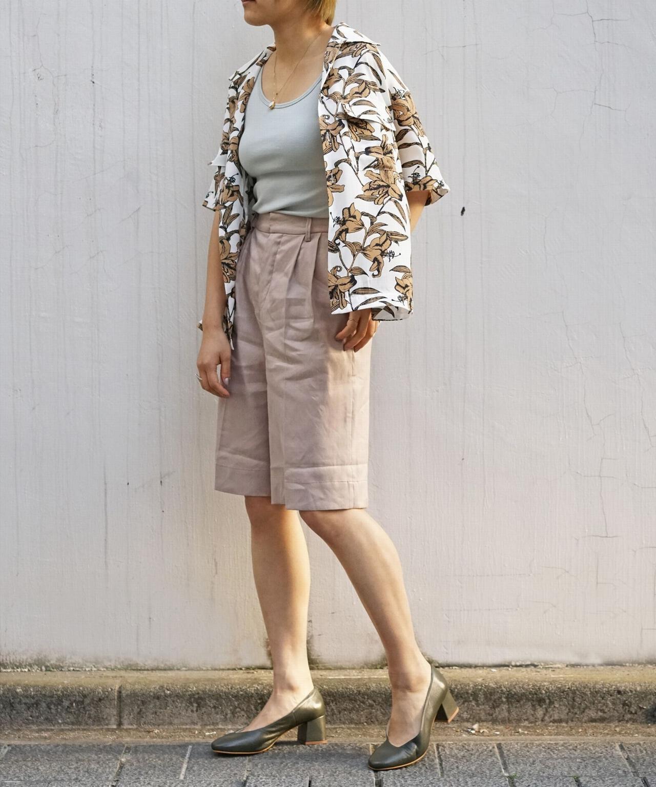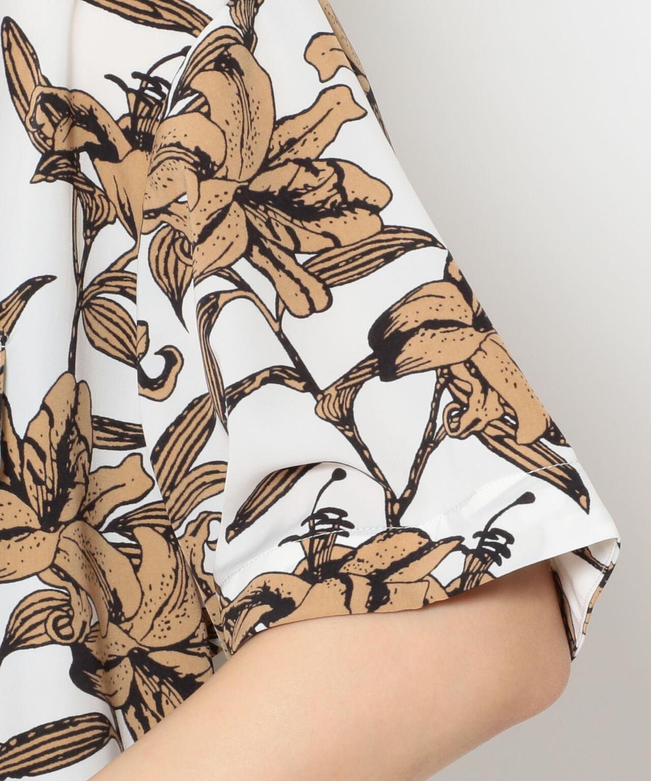 DROIT BELLO 特製花卉印花襯衫。前襟紐扣開合設計,既可敞開穿出梭織上衣的健康風格,也可合攏穿出整潔、乾淨的休閒風格,讓您根據自己的穿著方式享受各種氛圍。也可與同系列長褲搭配穿著。(品牌貨號:607421302-70)白色:模特:166cm藍色:模特:155cm【DROIT BELLO】2017AW年出道的日本品牌。該品牌提供成人上班和下班均可穿著的服裝,注重材質和細節。