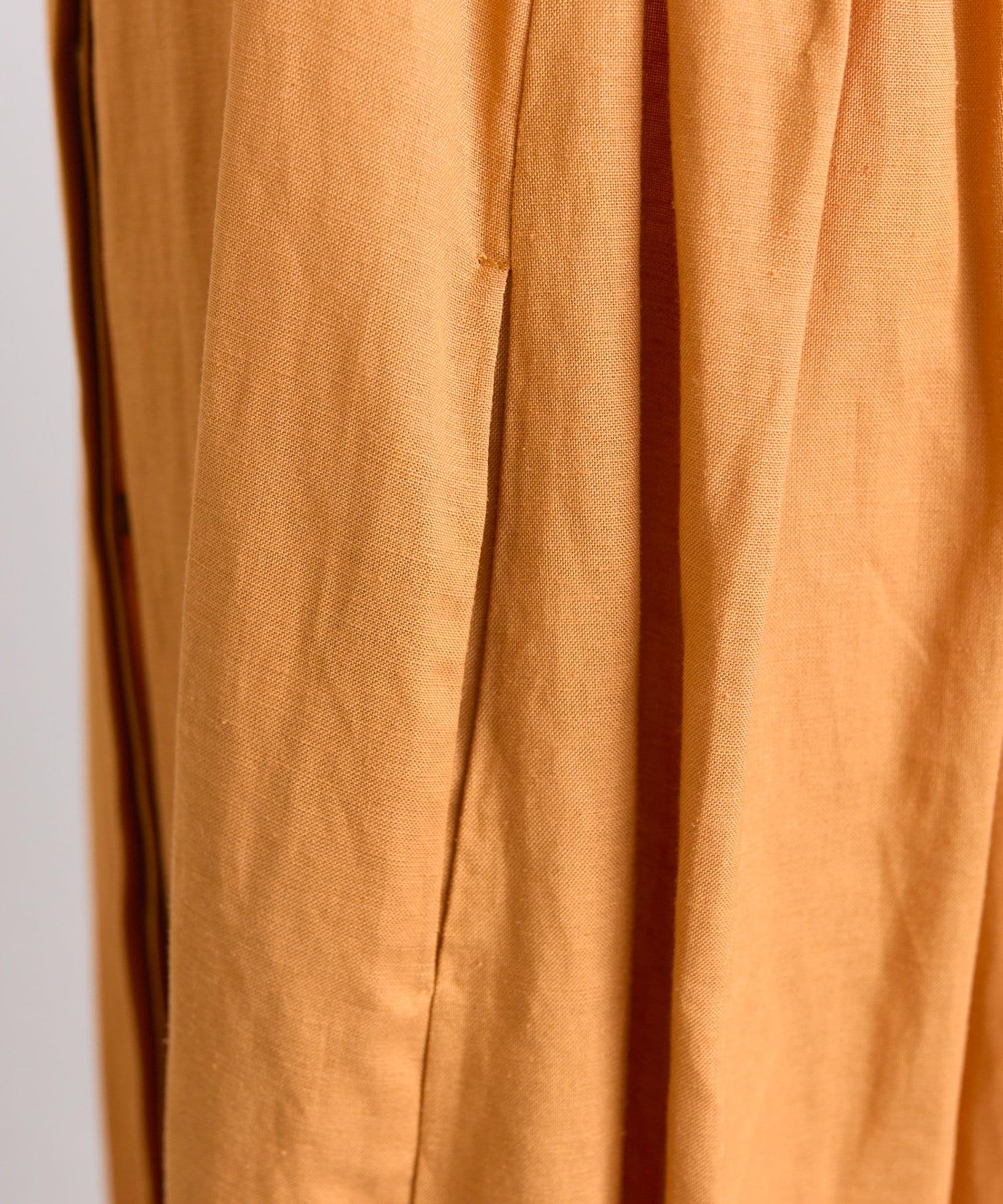 裙子由亞麻混紡製成,手感乾爽,略帶彈力。