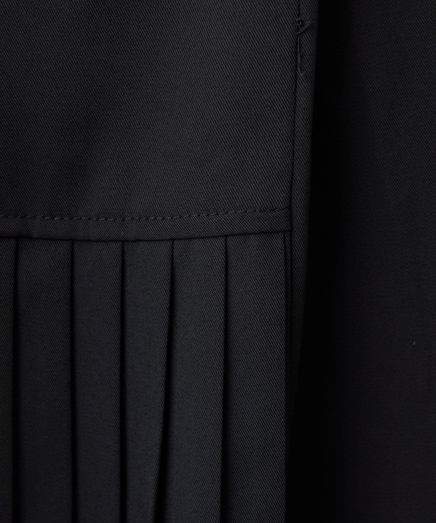 廓形有落差感,褶皺設計強調垂直線條。