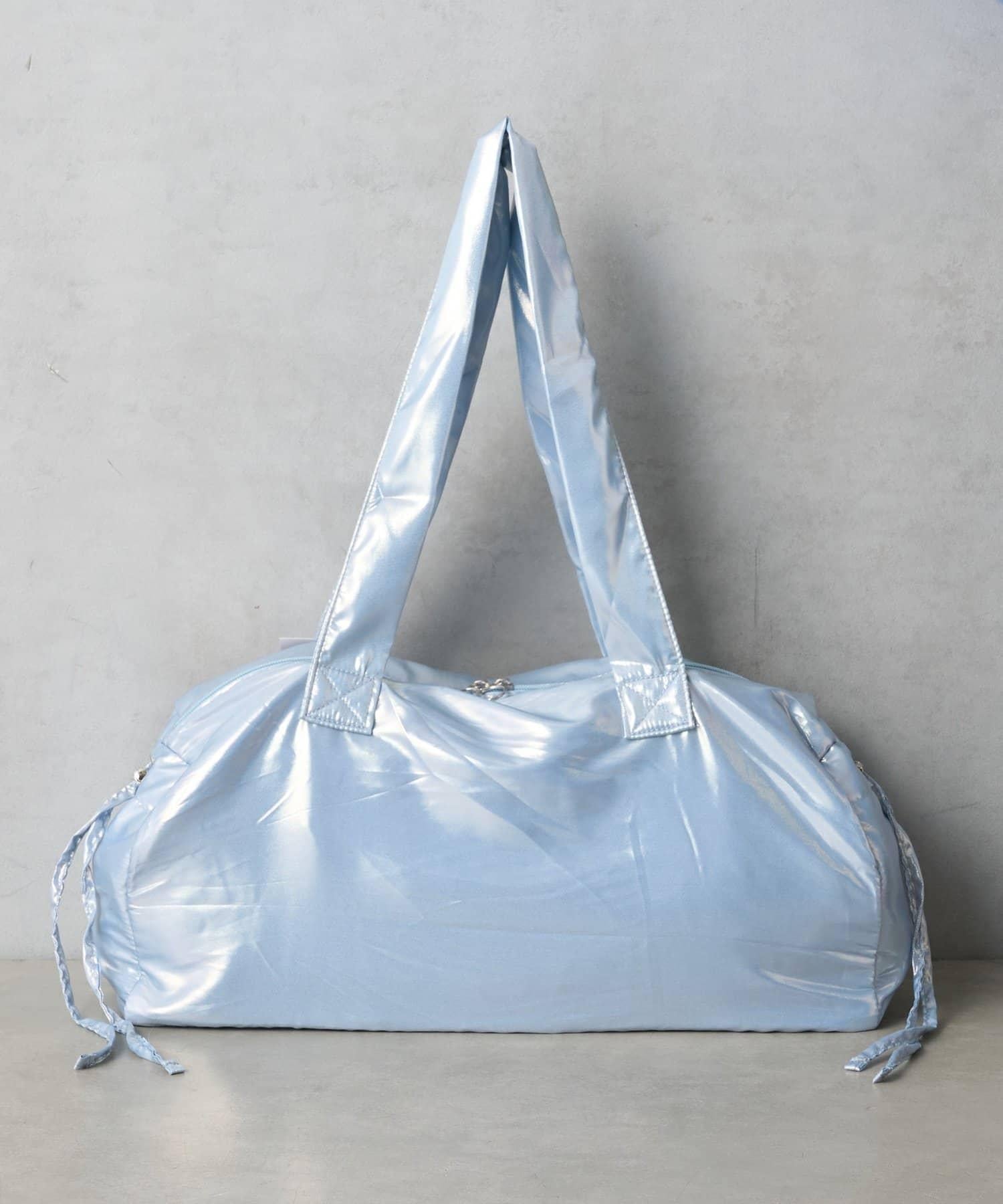 這款輕便手提包採用柔軟蓬鬆的面料製成,具有時尚的橫向輪廓。