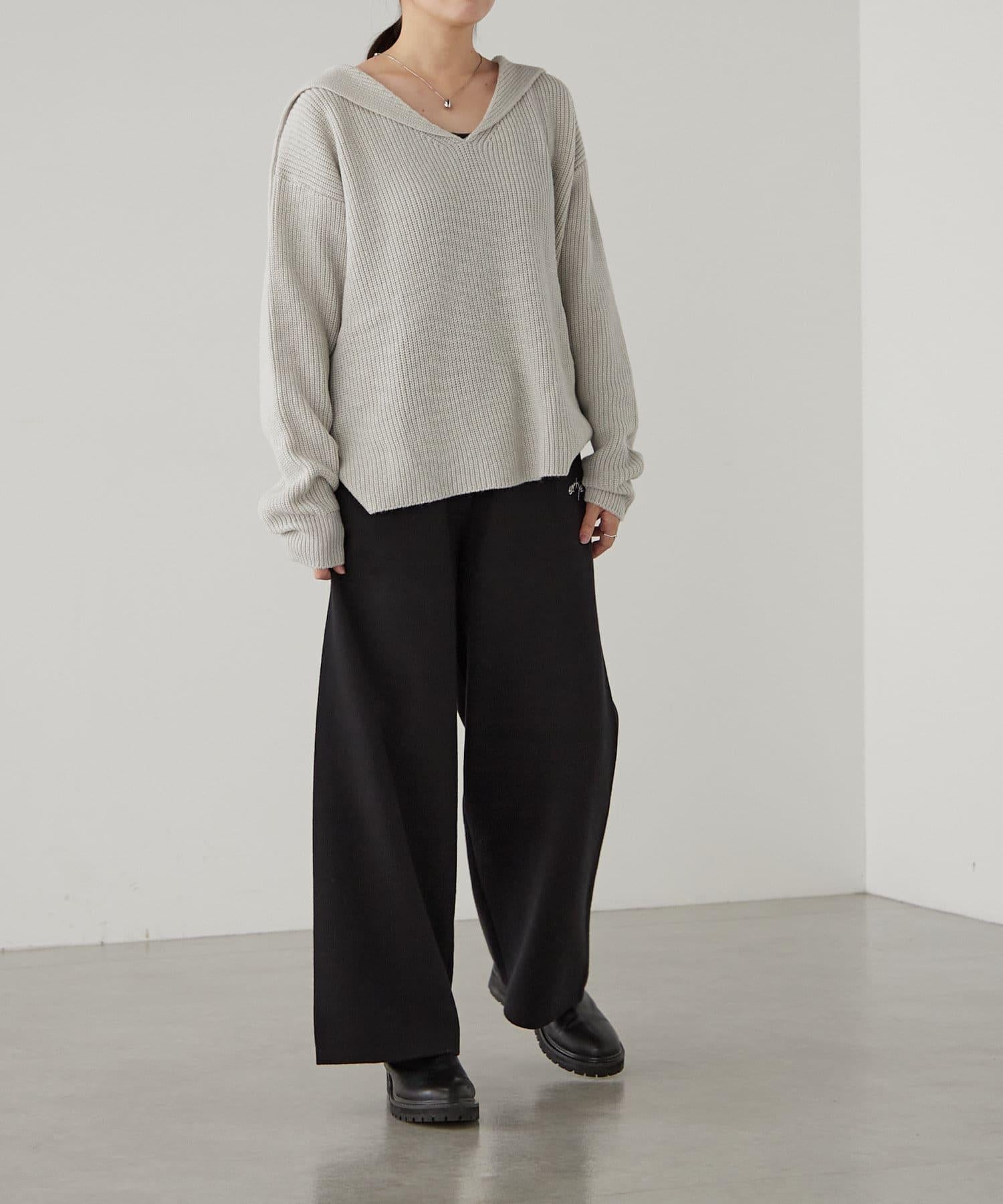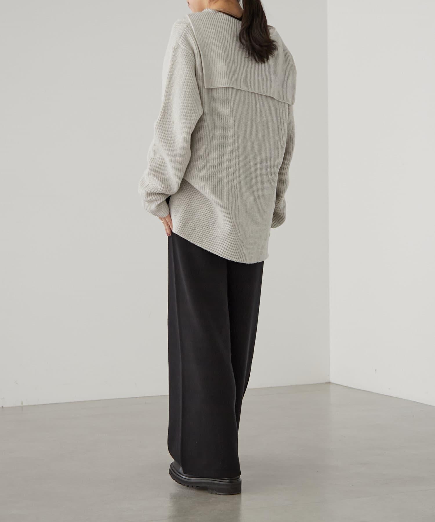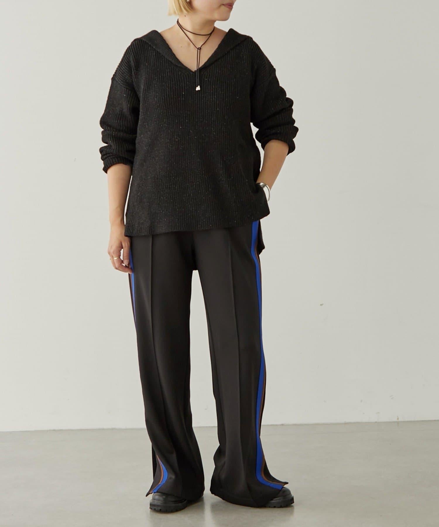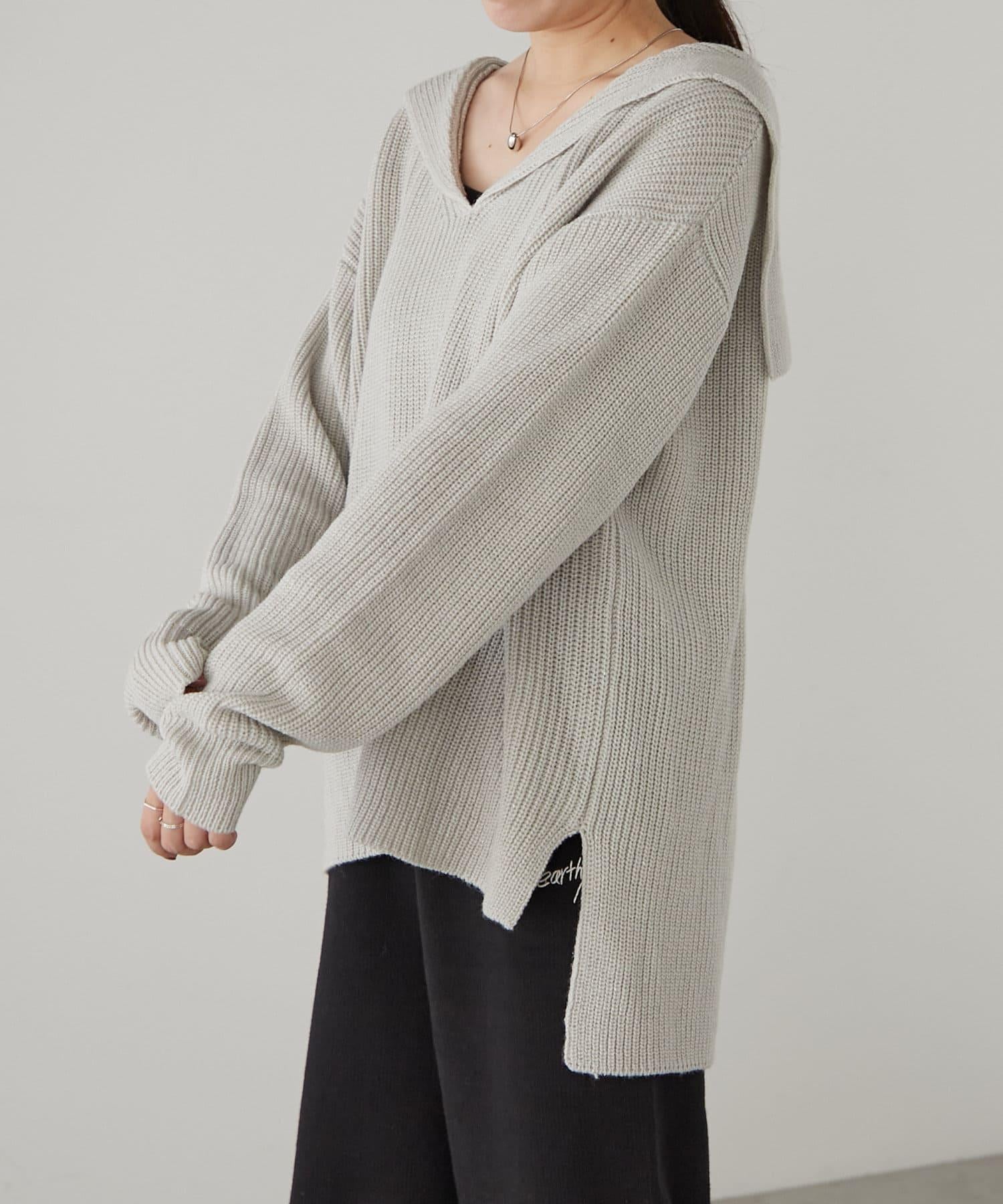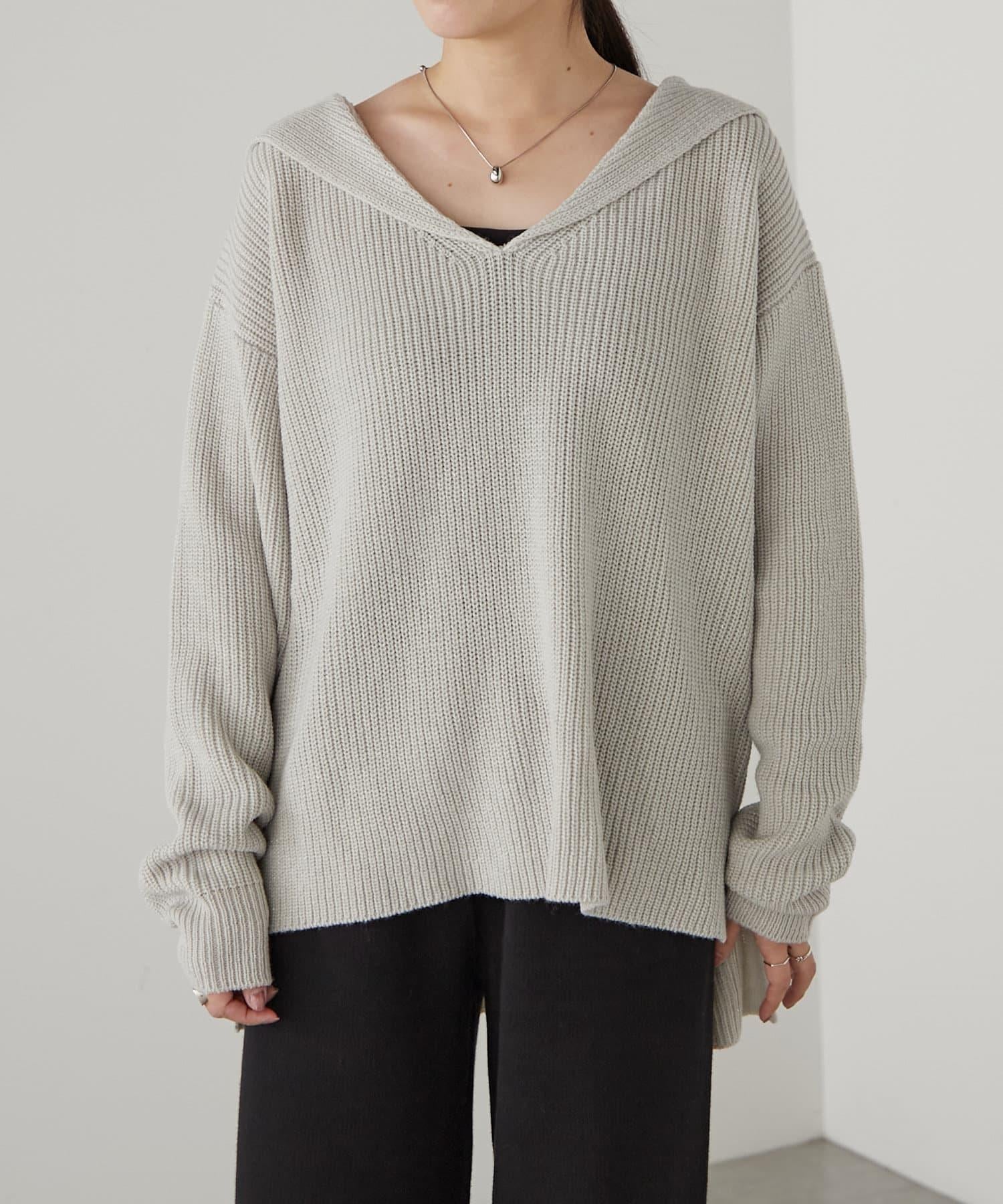 這款針織套頭衫帶有時尚的水手領,單面採用混有微微閃光的紗線隨意編織而成。