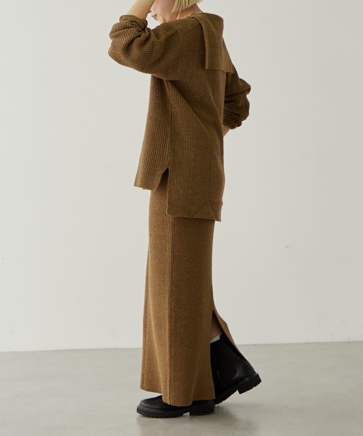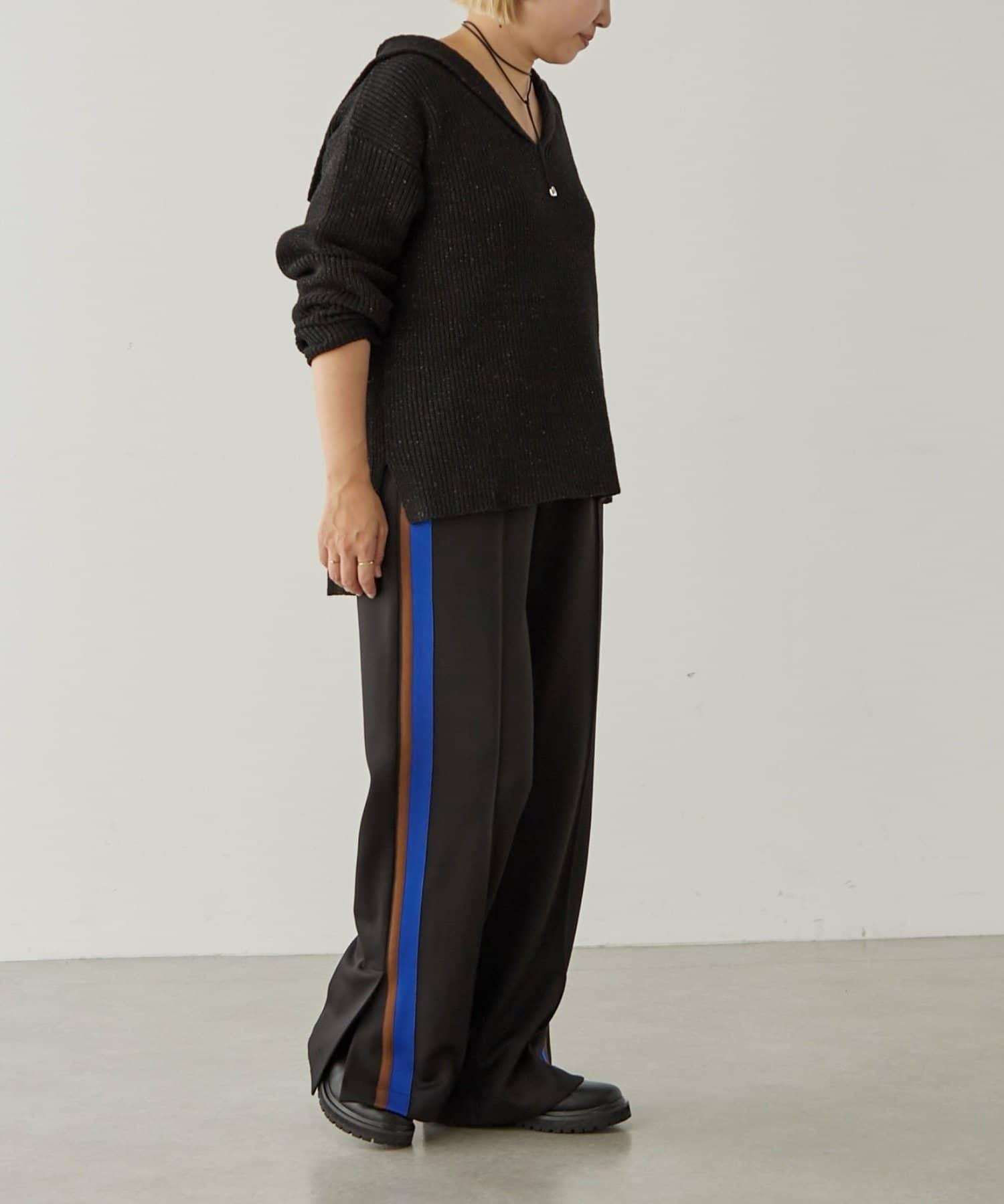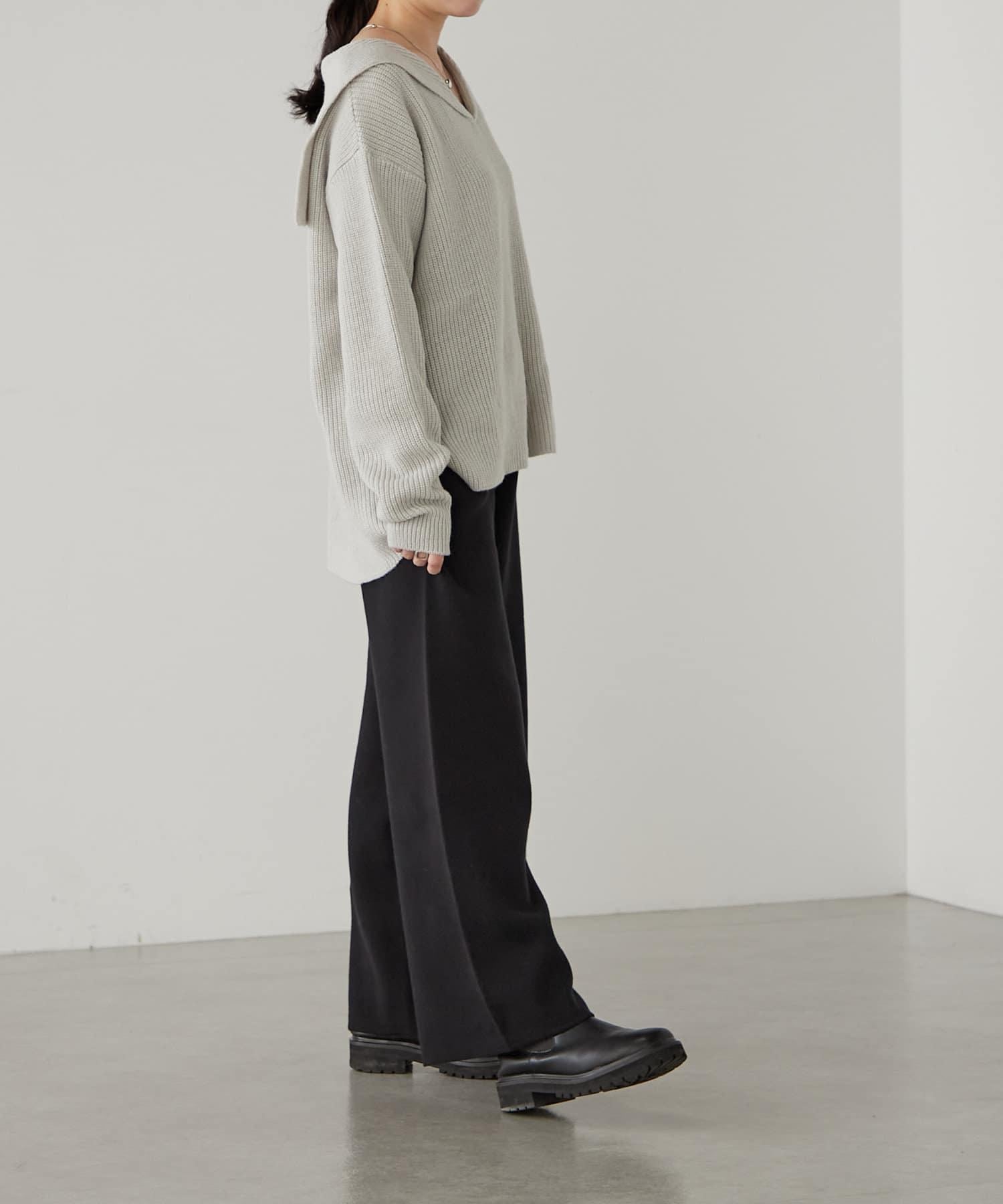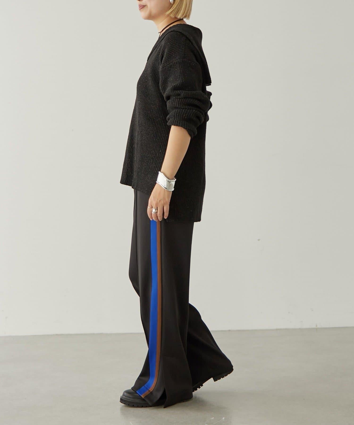 這款針織套頭衫帶有時尚的水手領,單面採用混有微微閃光的紗線隨意編織而成。