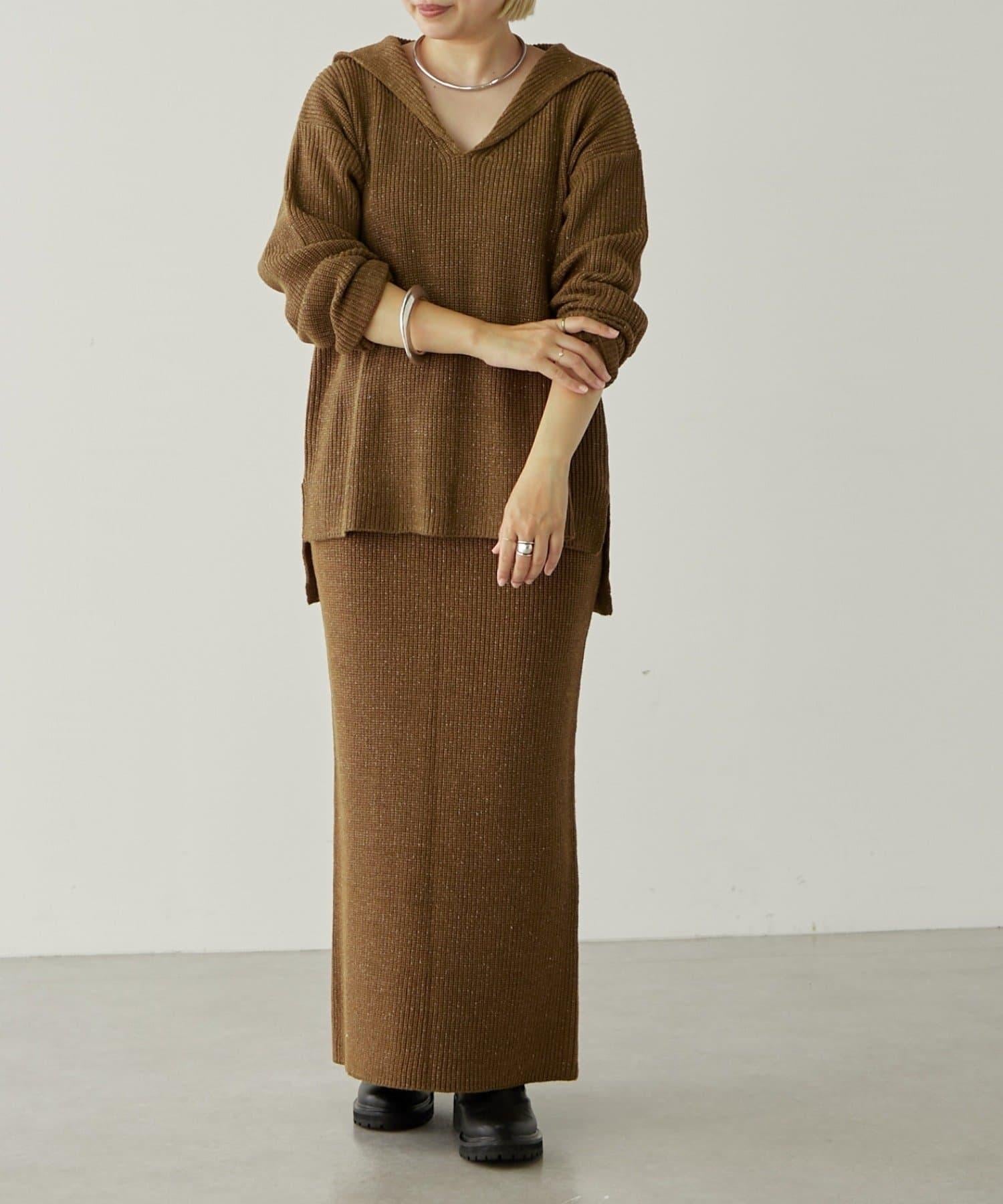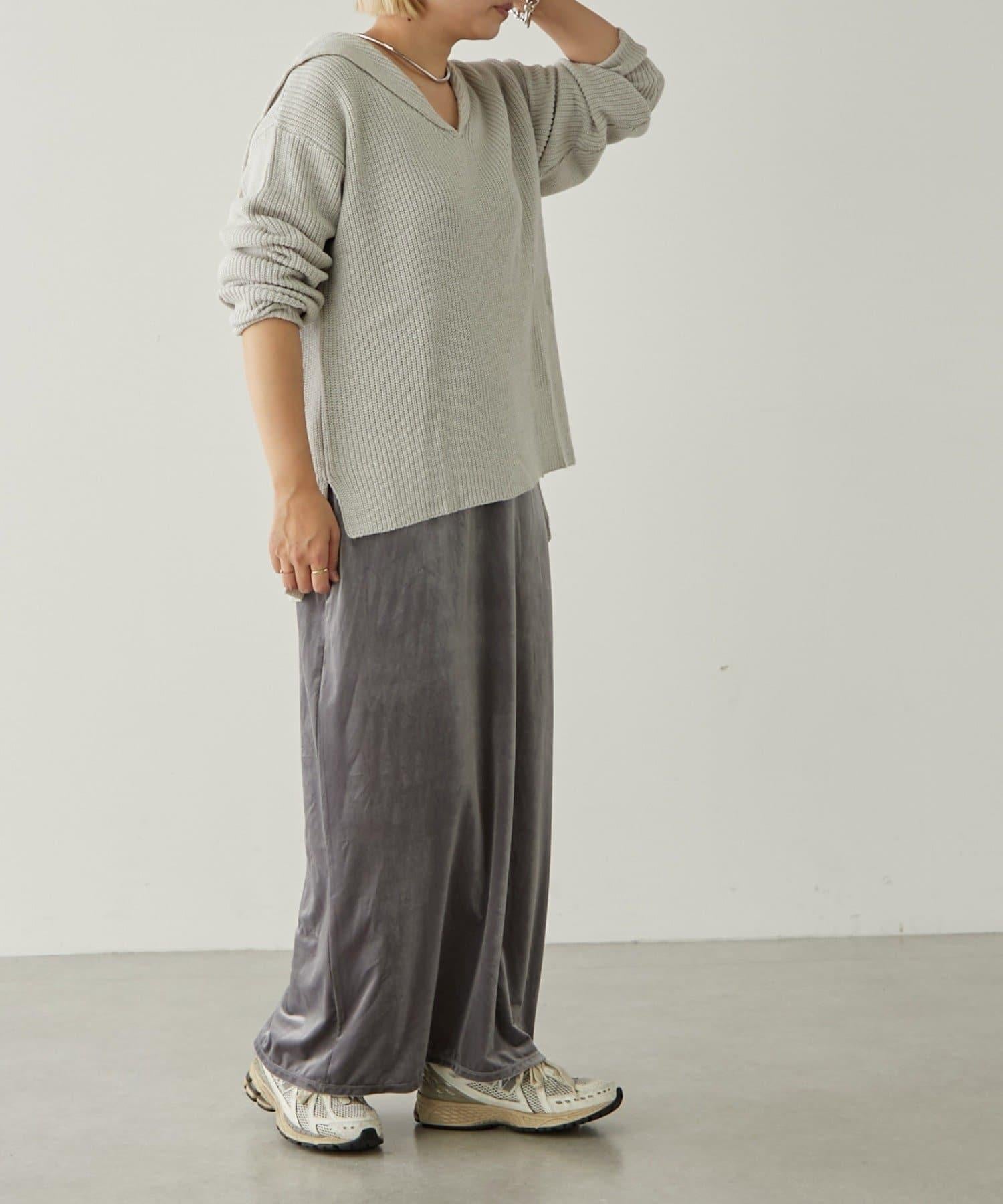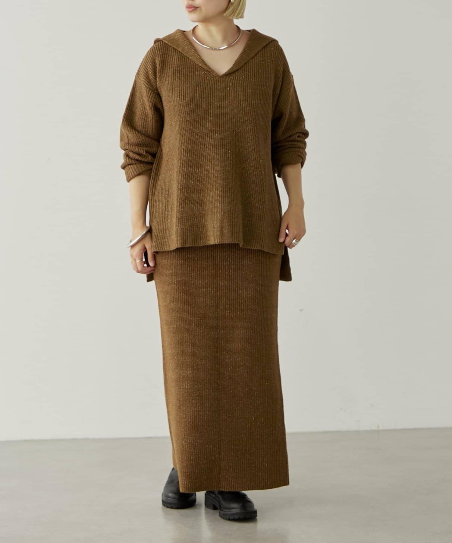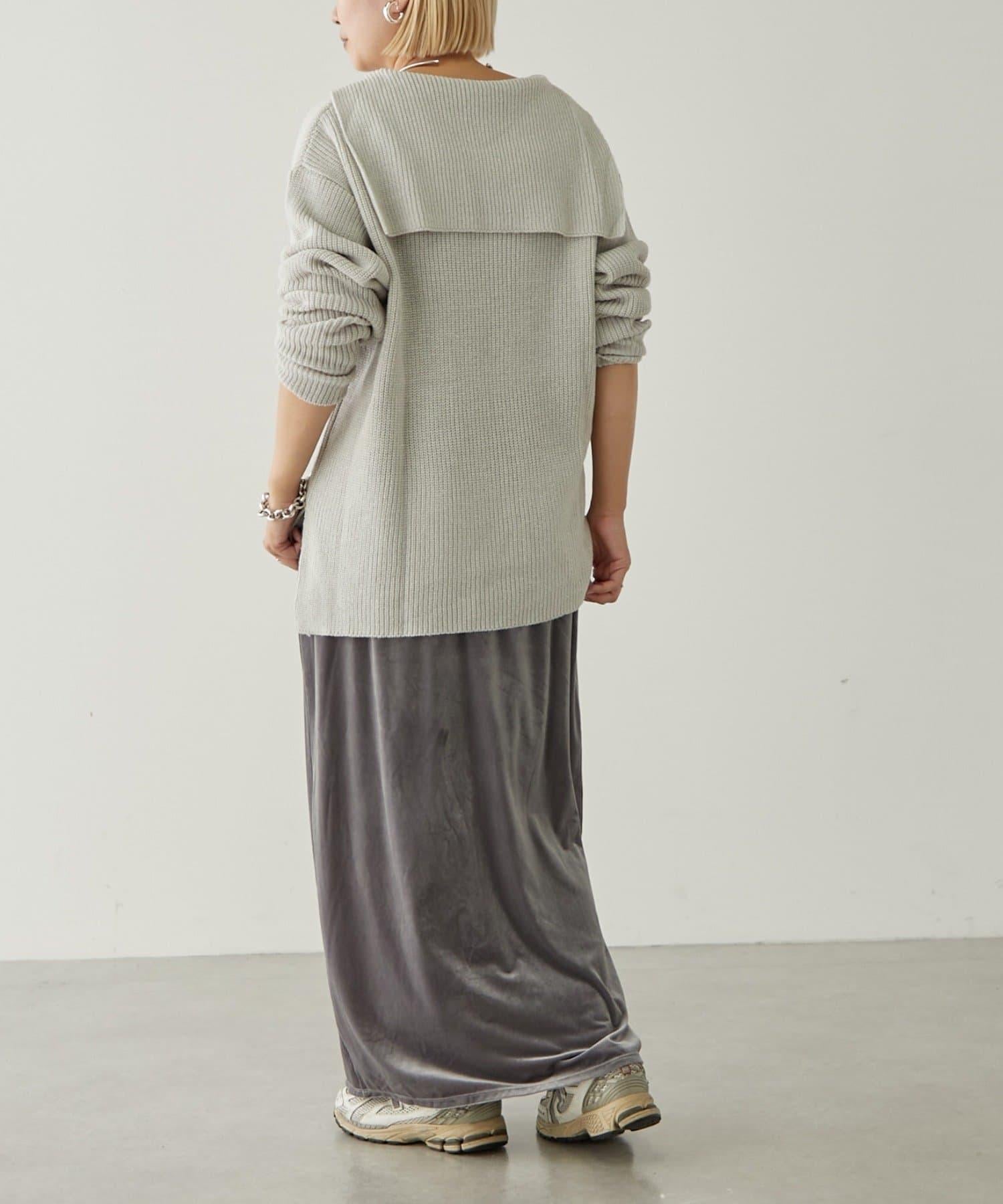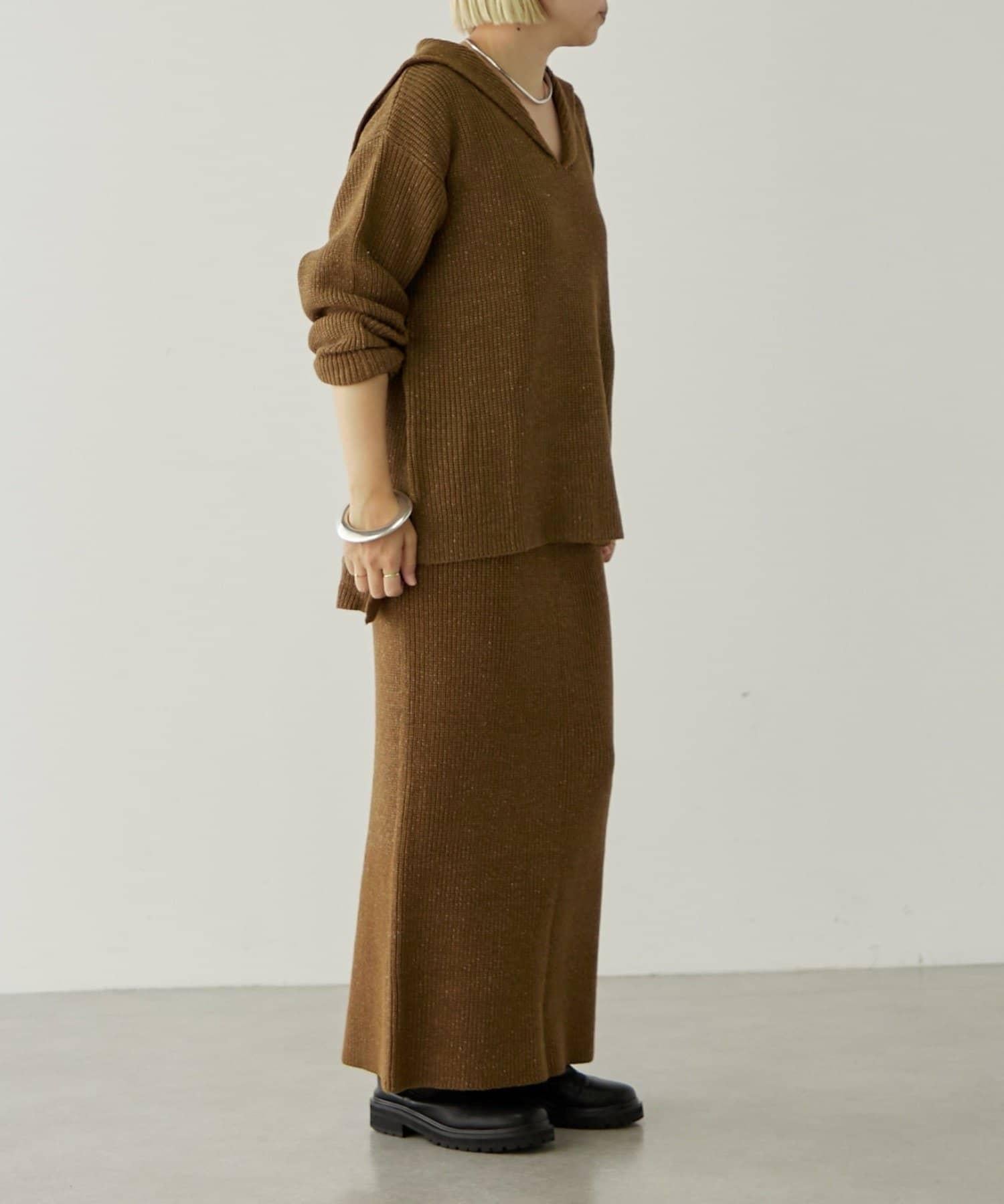 這款針織套頭衫帶有時尚的水手領,單面採用混有微微閃光的紗線隨意編織而成。
