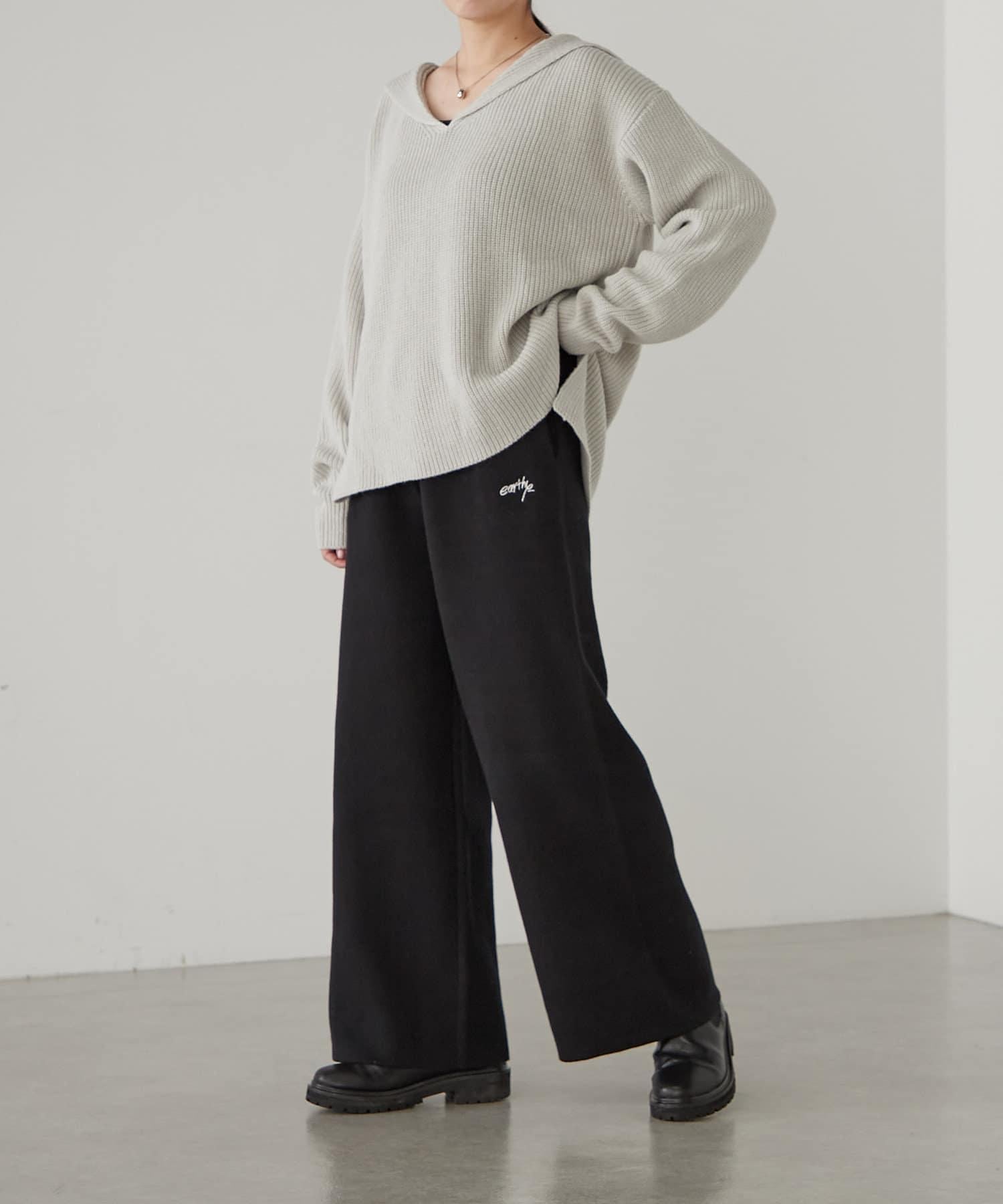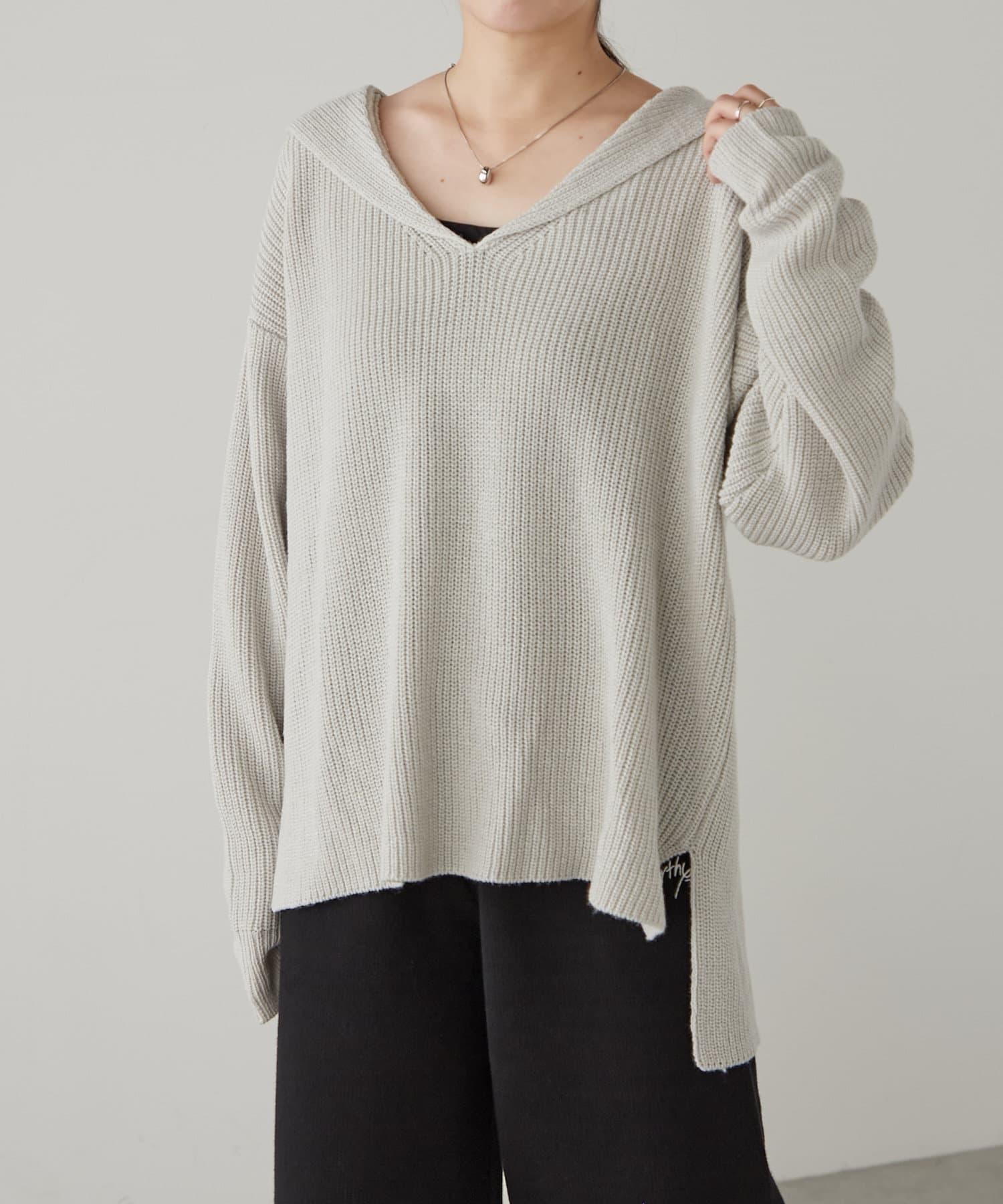 針織套頭衫衣身寬大,穿著毫無壓力!