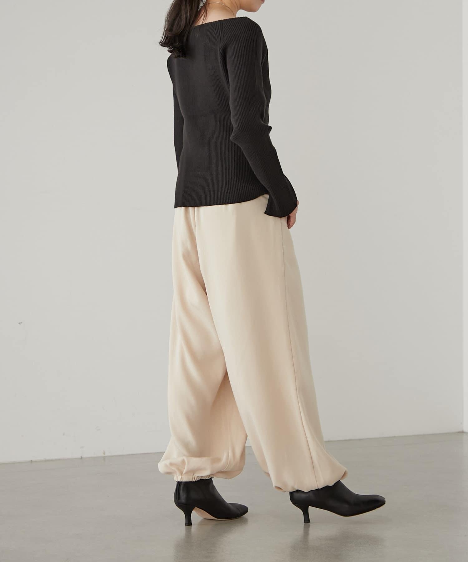 這款氣球褲的腰部有鬆緊帶,穿著方便,面料既寬鬆又美觀。