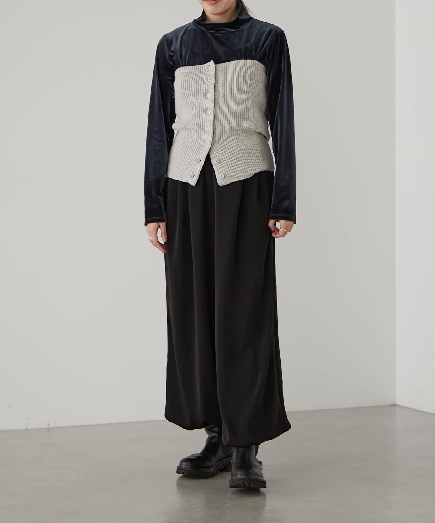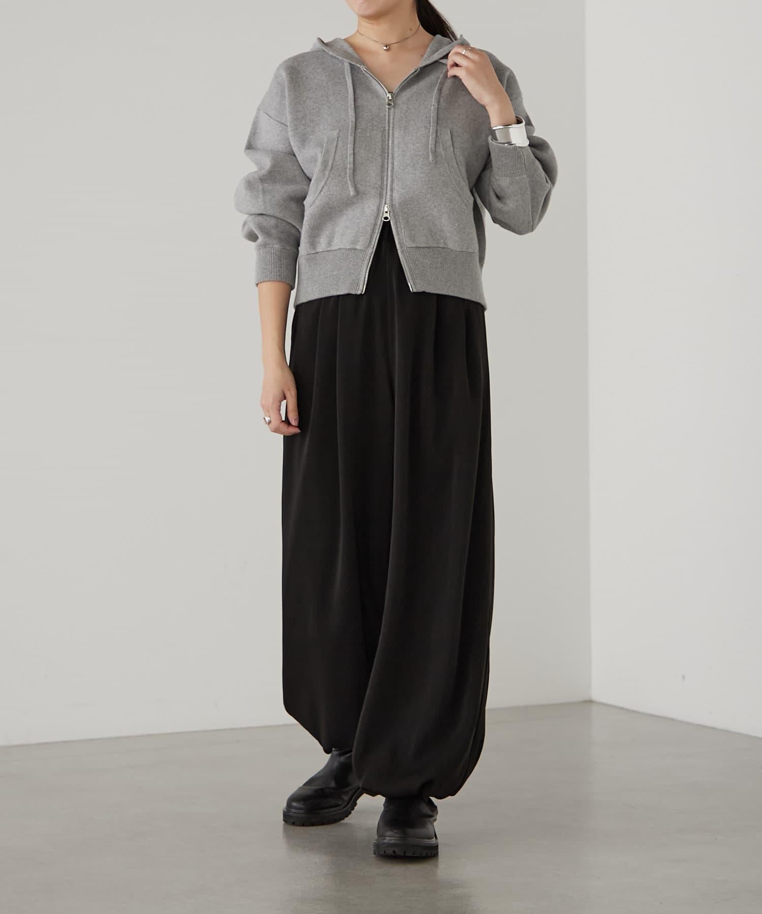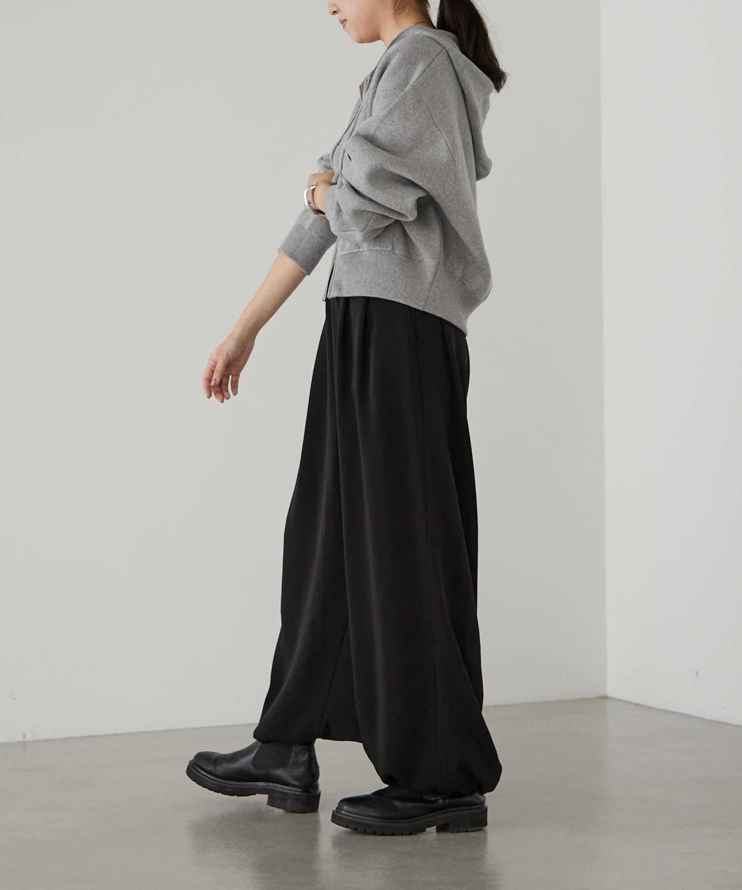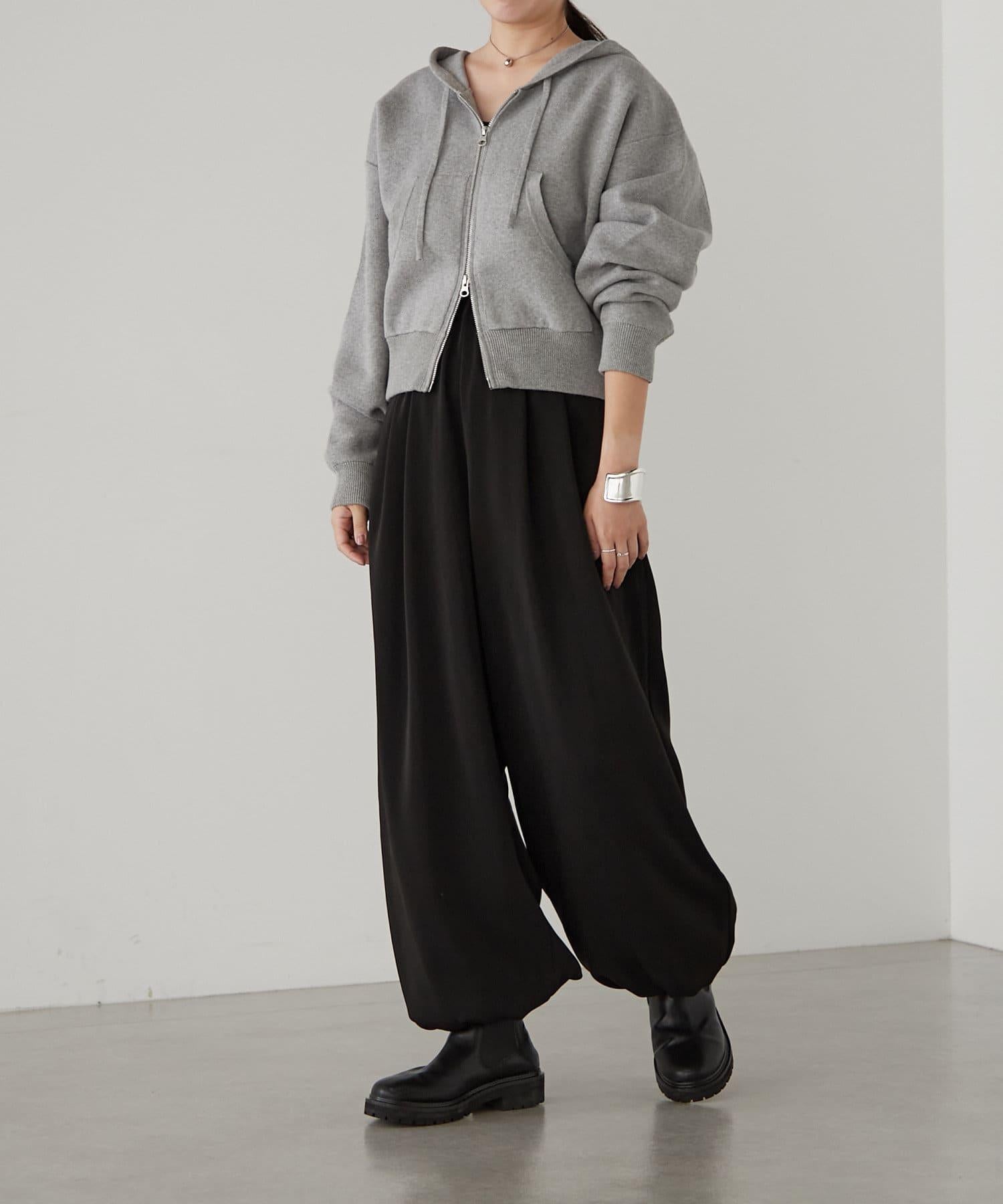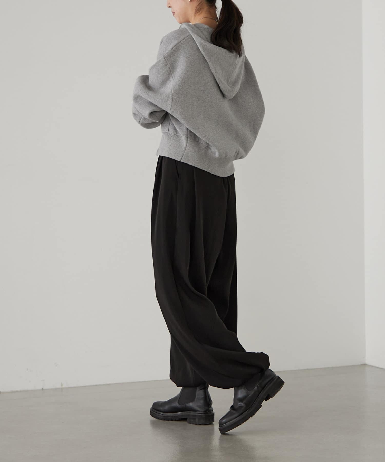 褲腿周圍堆積的體積營造出一種時髦的氛圍。
