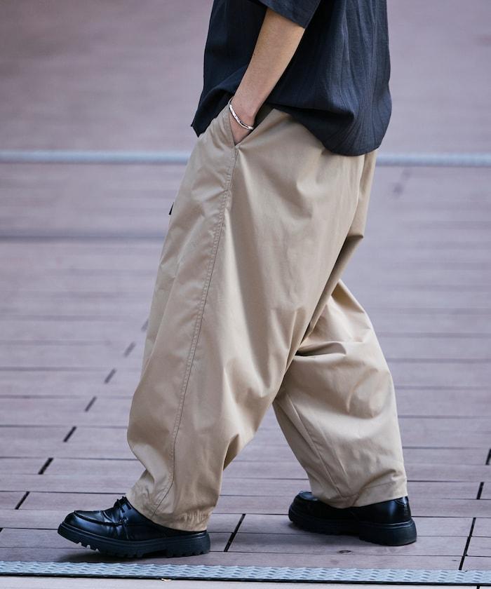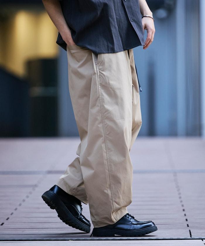 褲子規格簡單,可以不繫腰帶穿著,在夏天非常適合。
