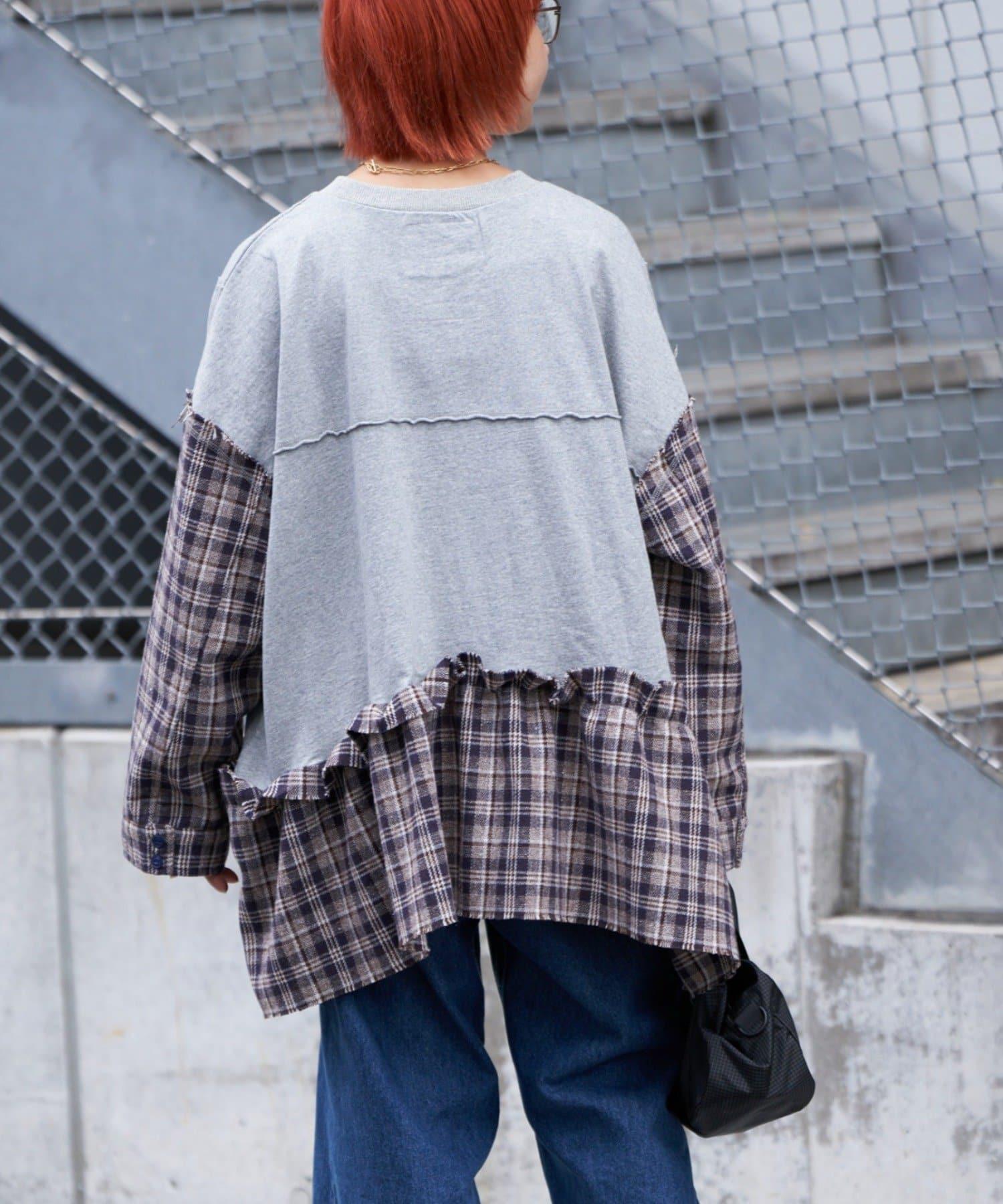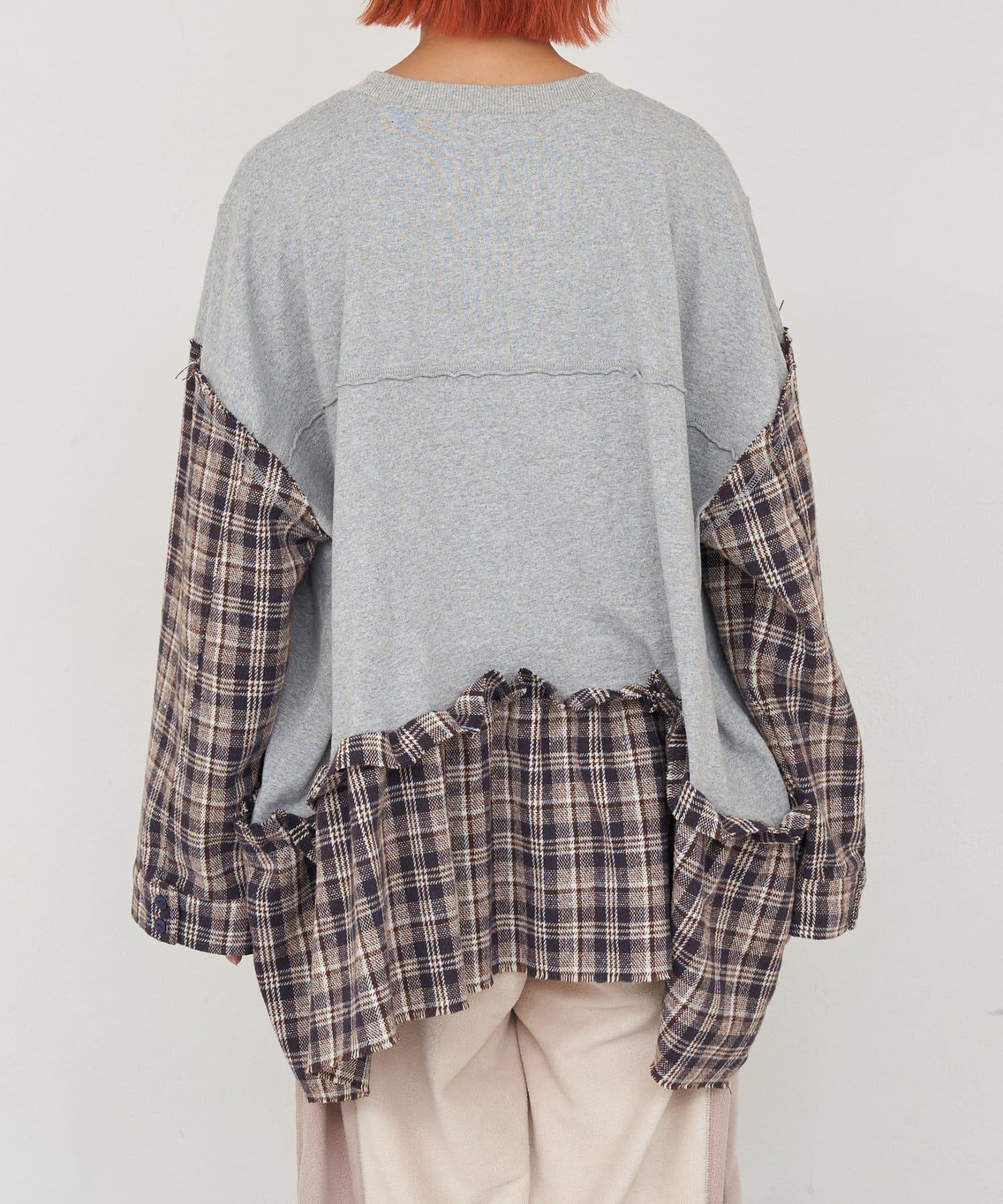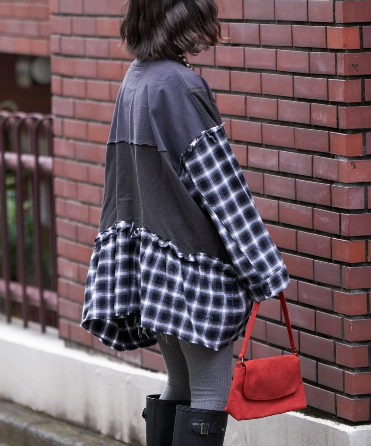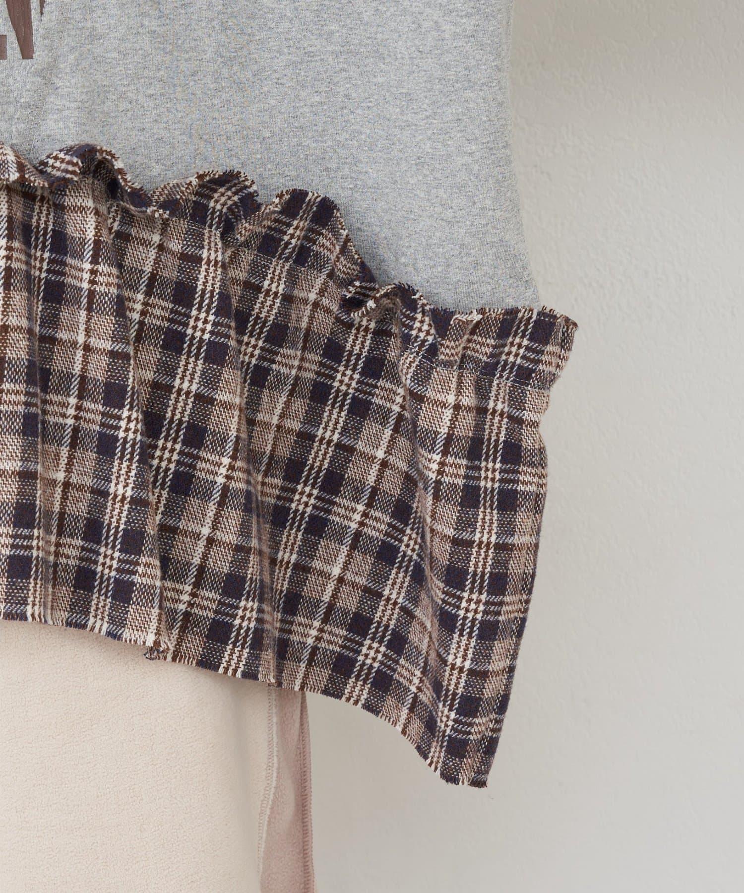 【etsinta/エシンタ】拼接格紋荷葉邊T恤