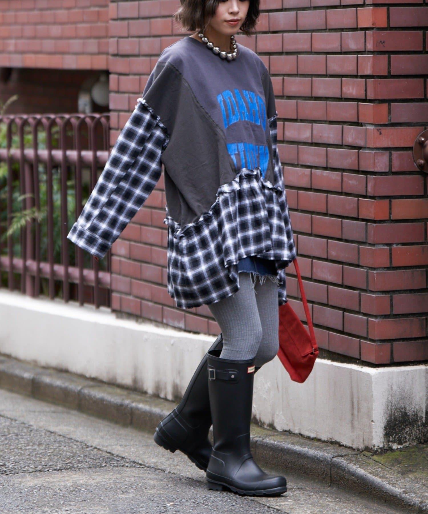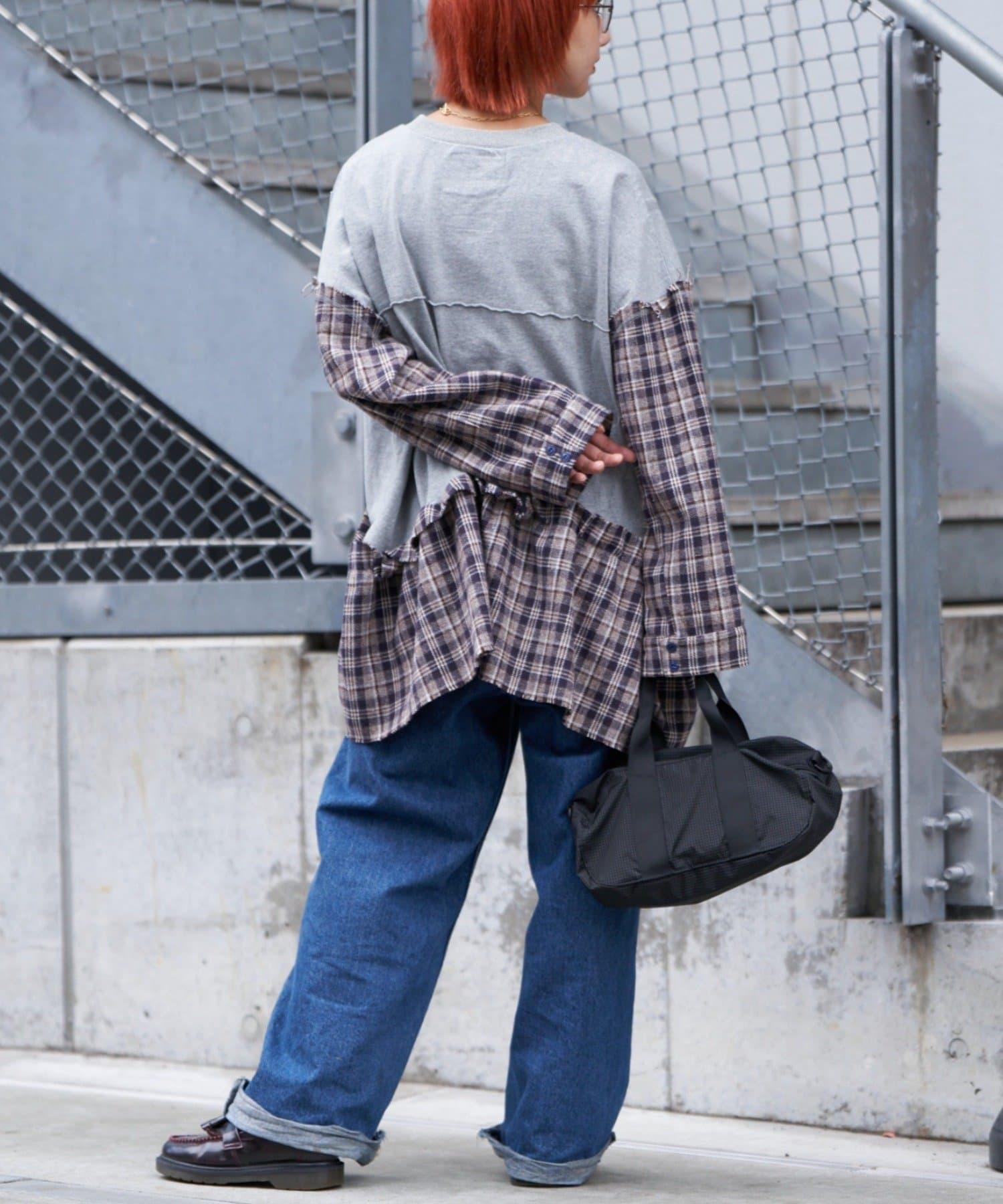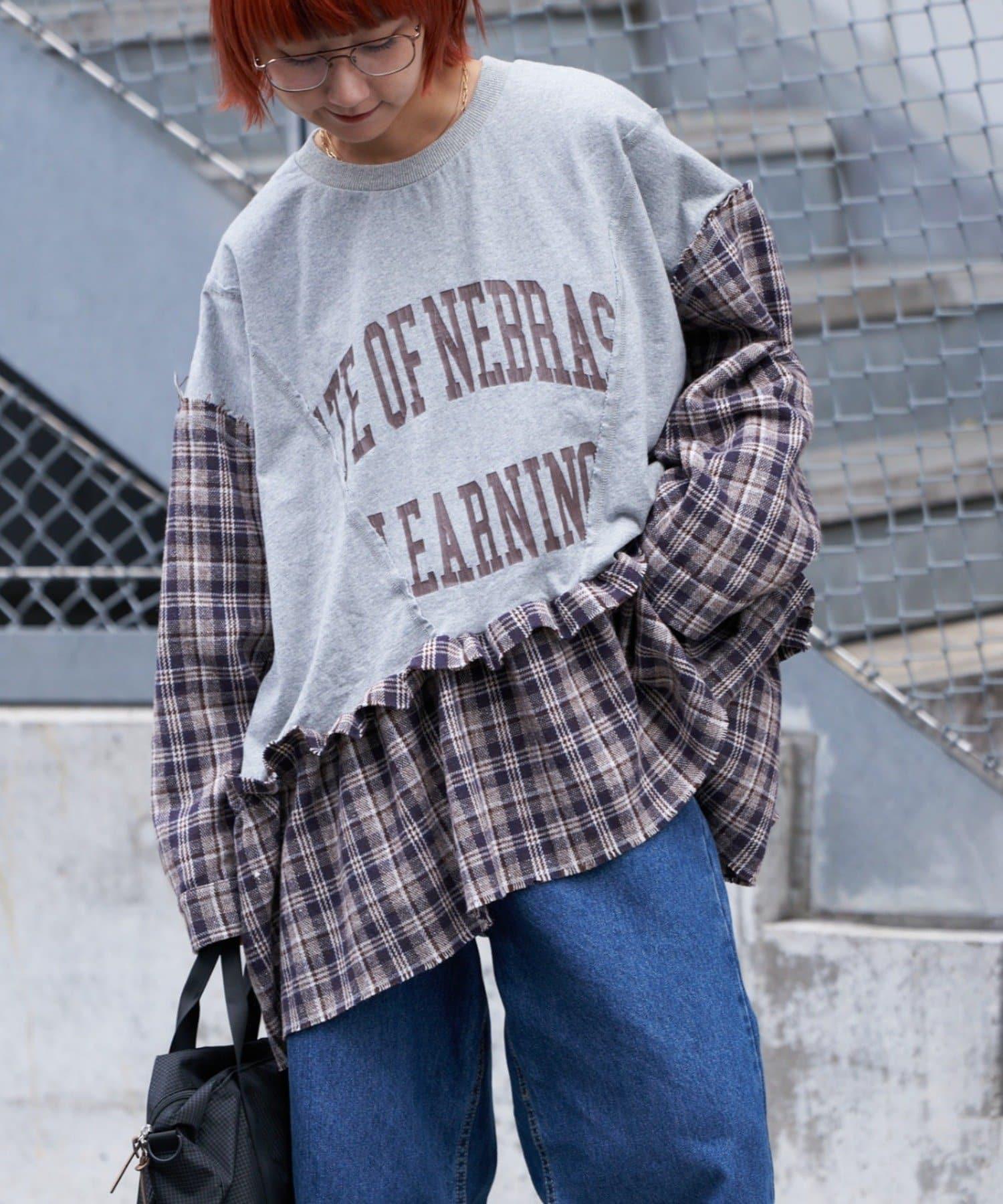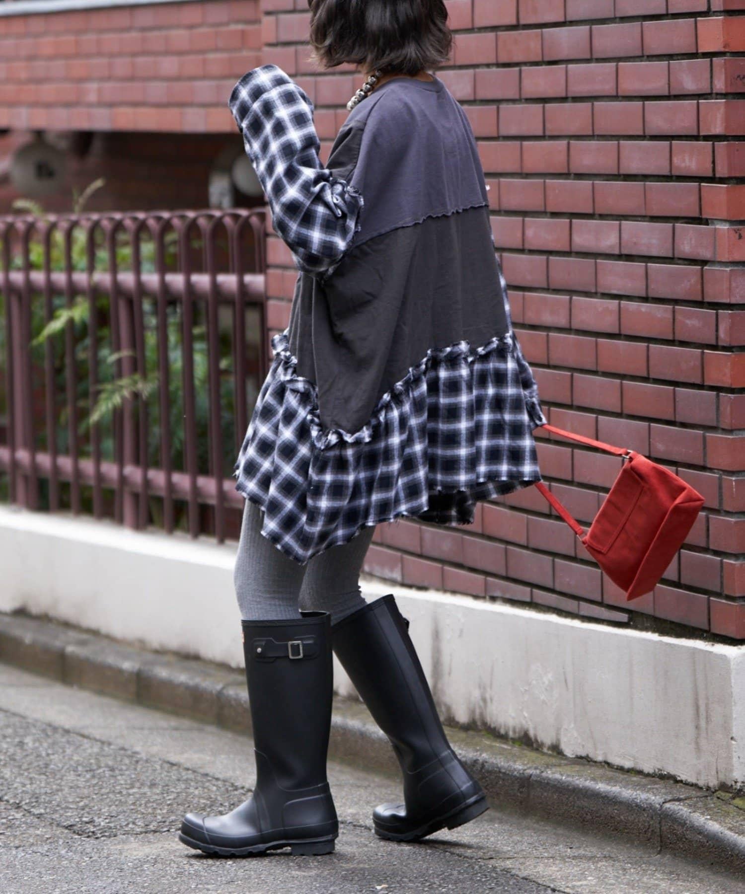 【etsinta/エシンタ】拼接格紋荷葉邊T恤