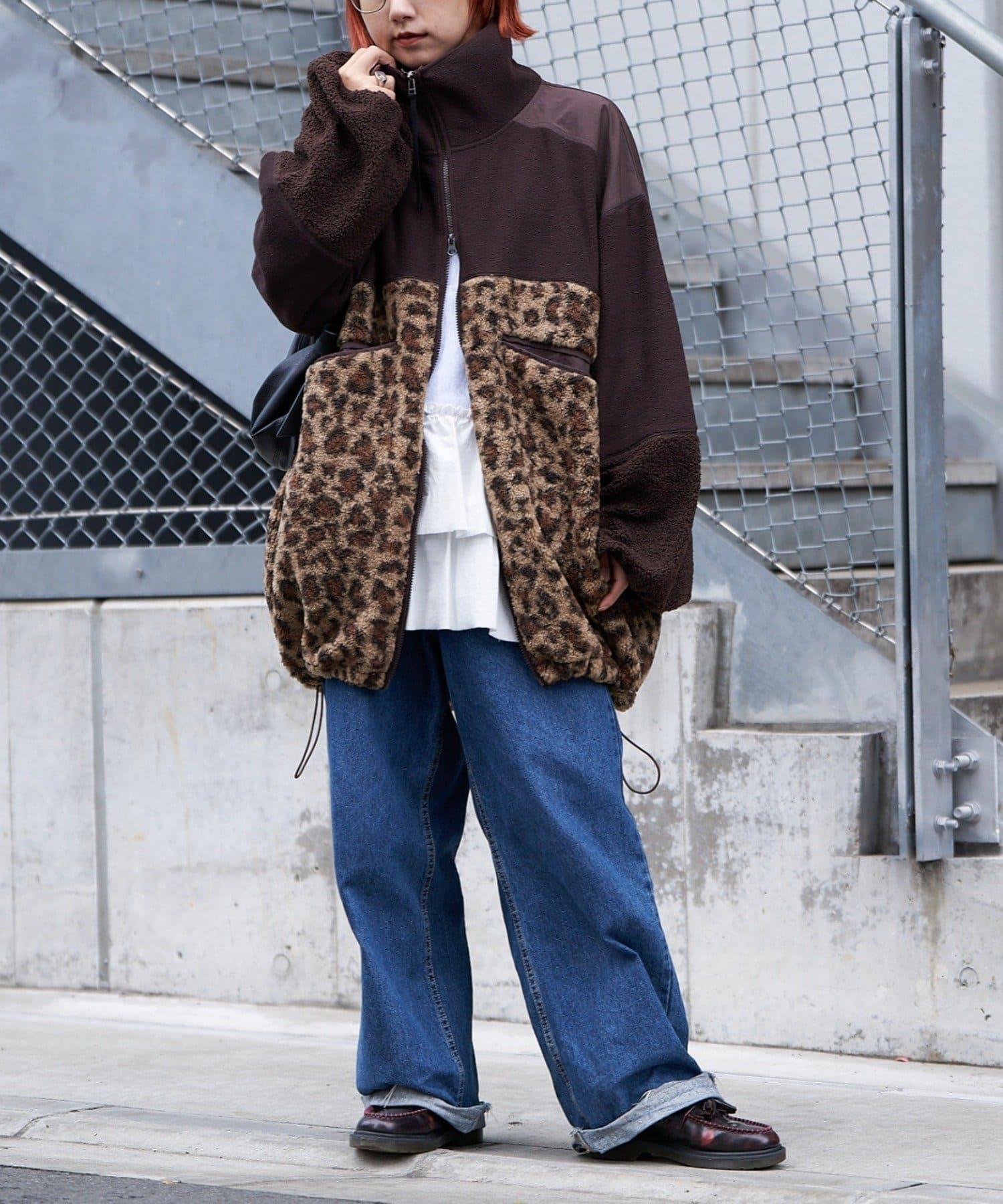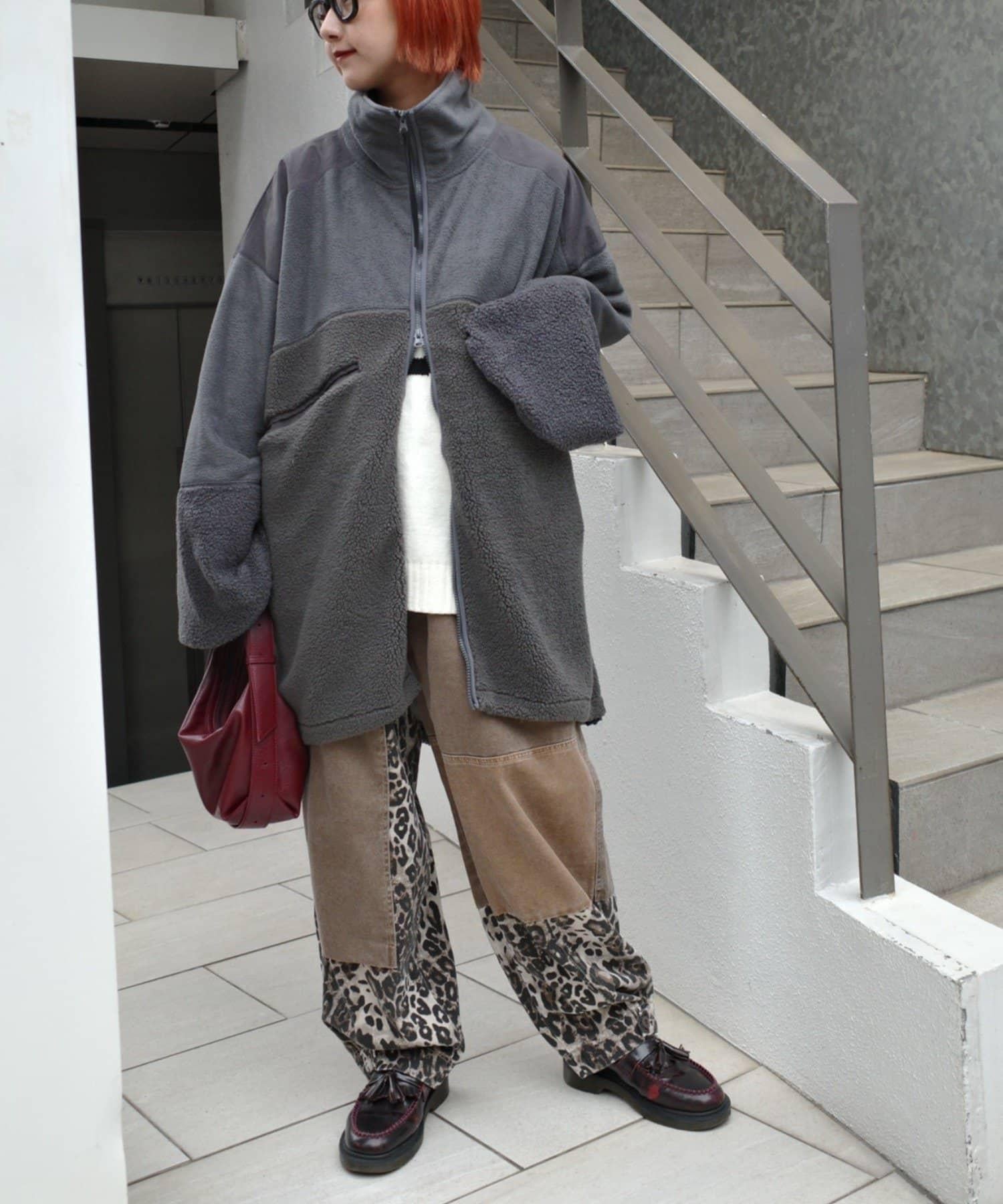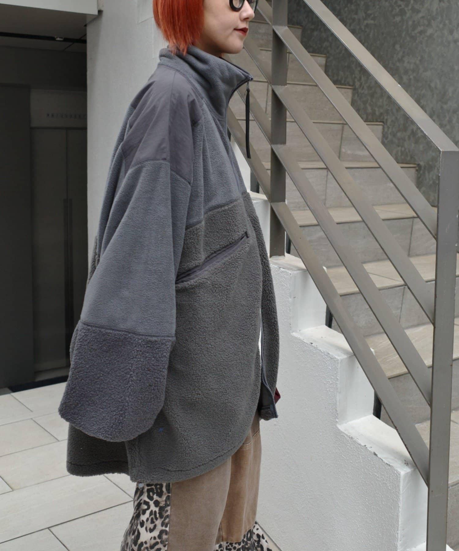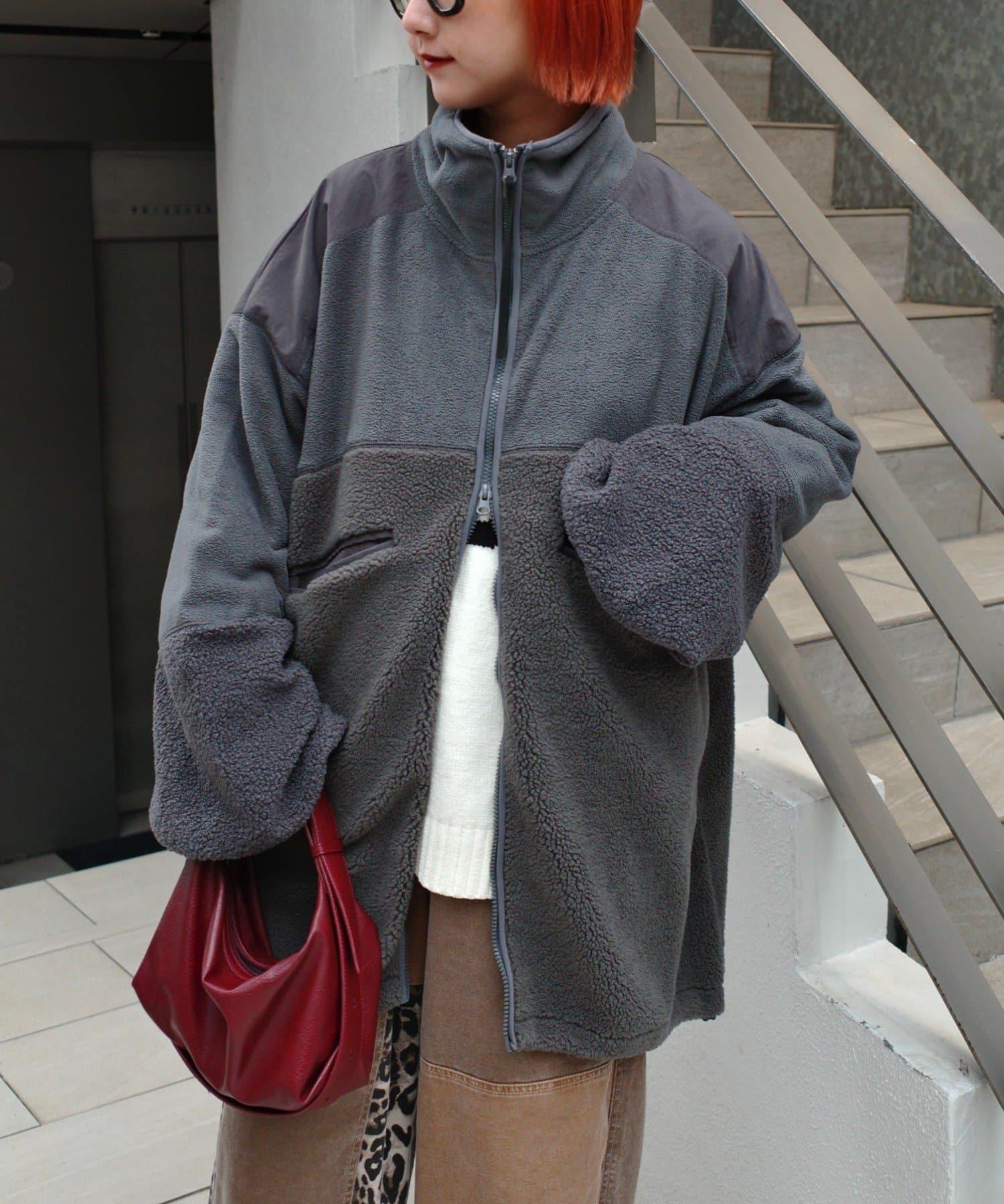【etsinta/エシンタ】拼接羊羔絨寬鬆夾克