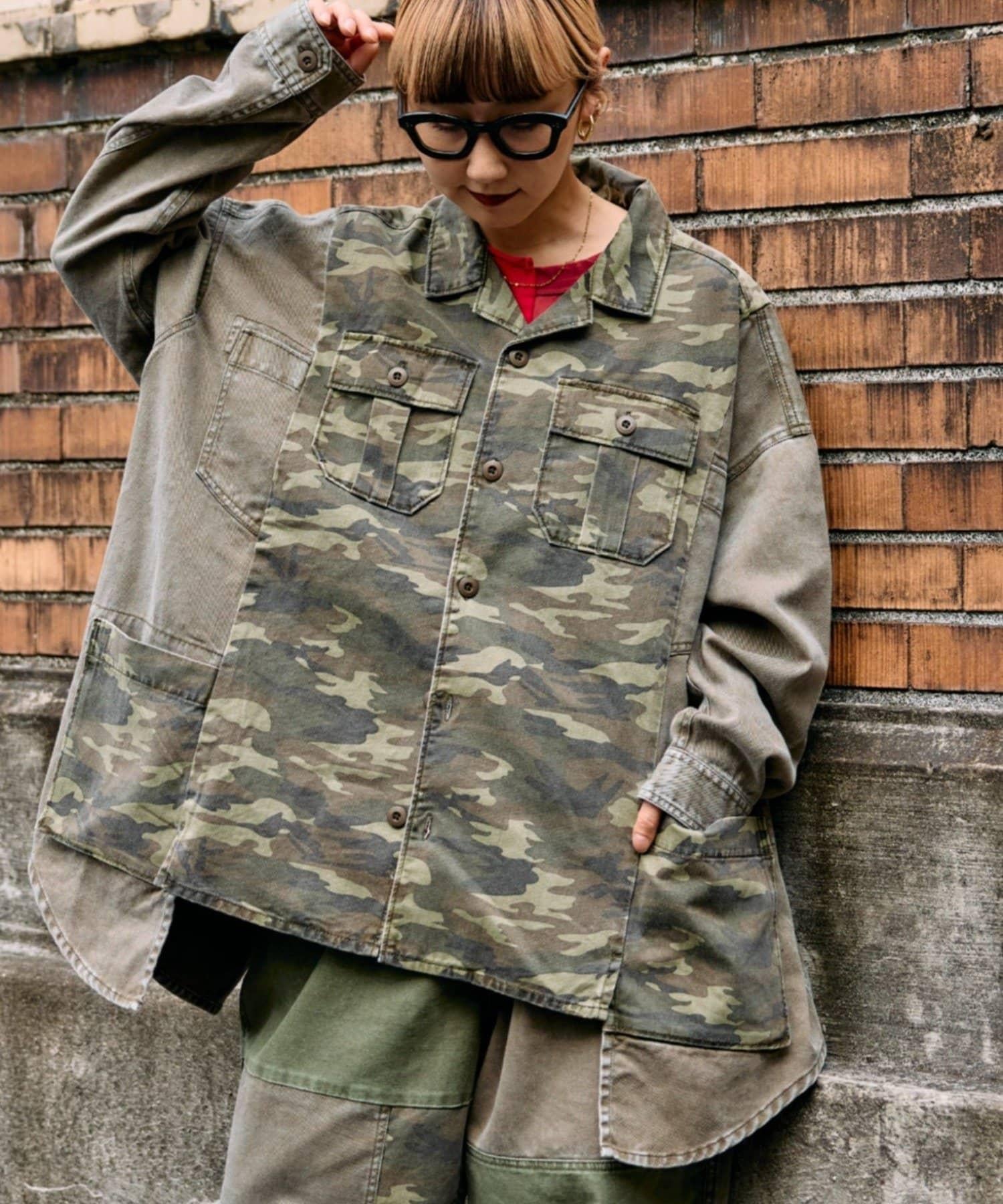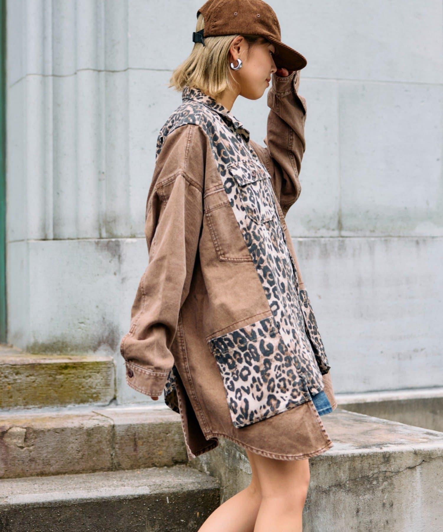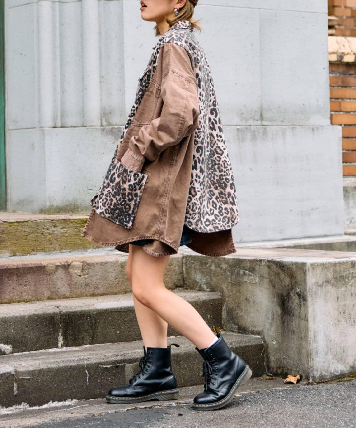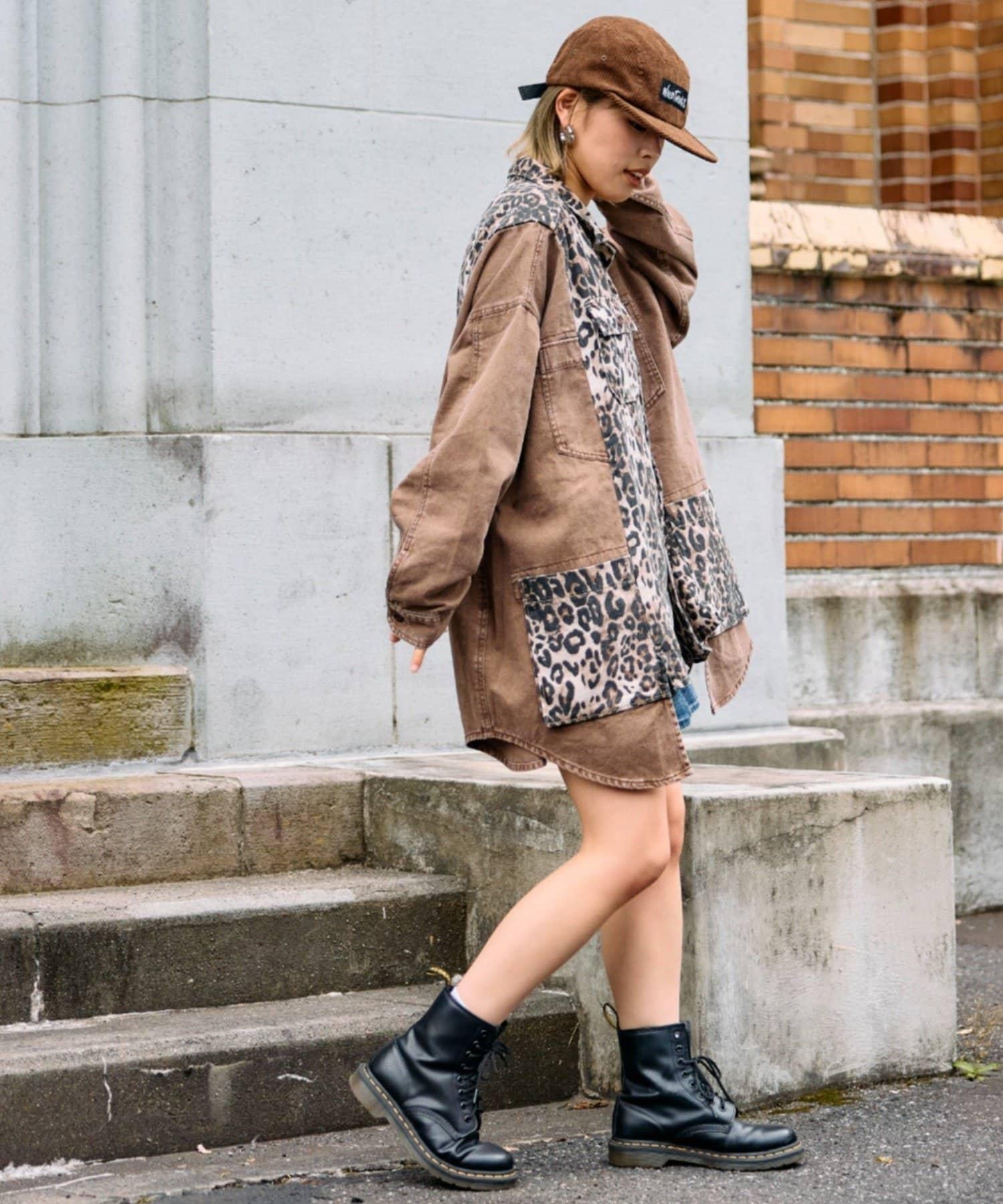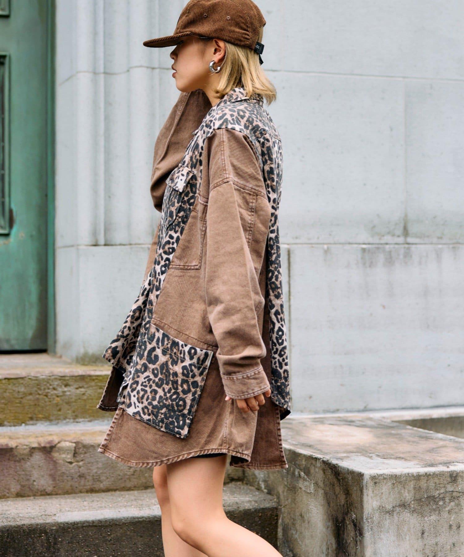 採用[素色和花紋]切換設計的夾克十分搶眼。