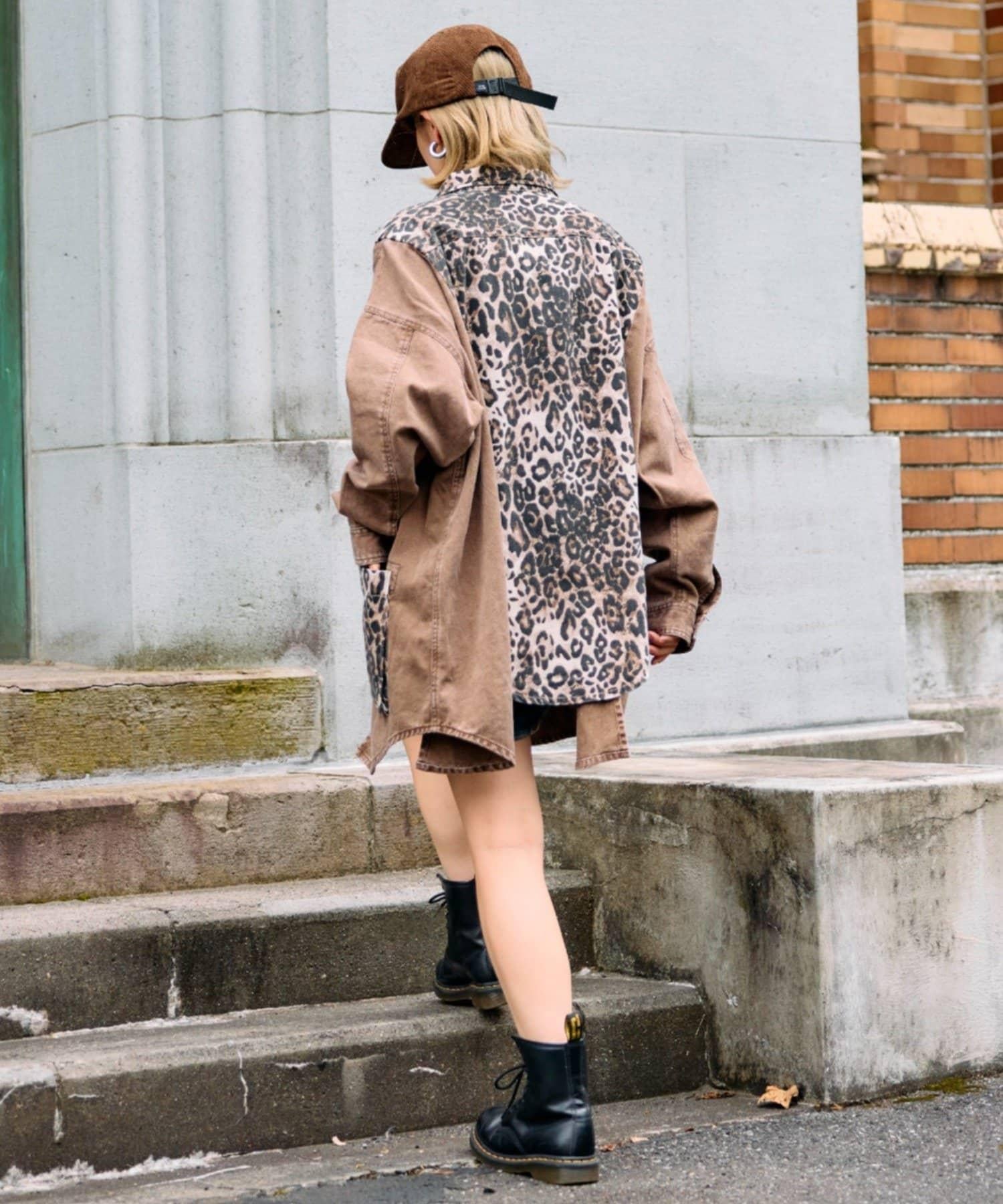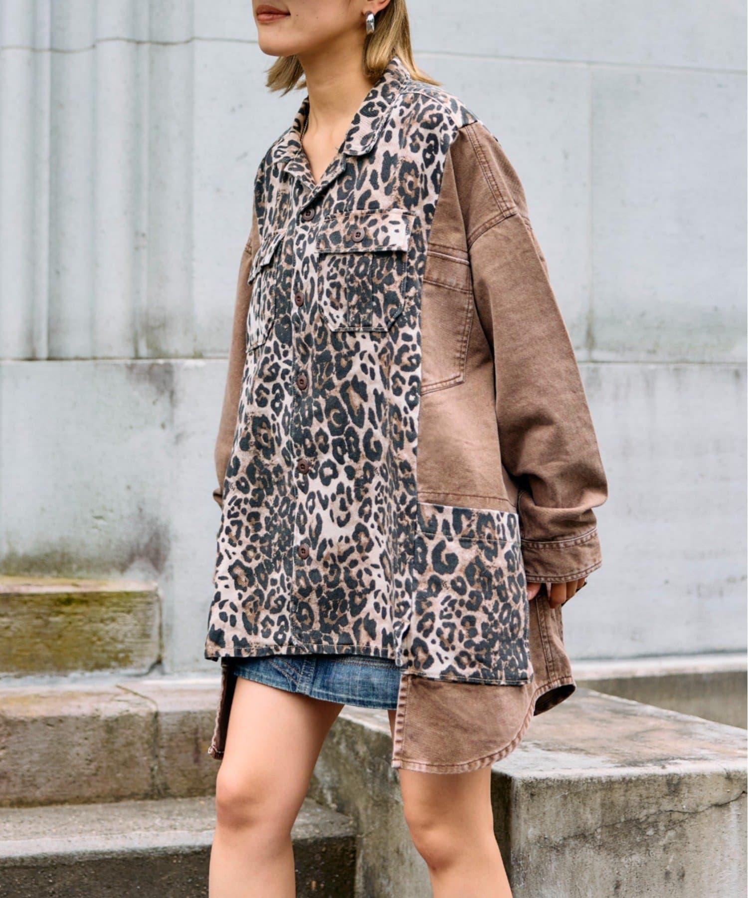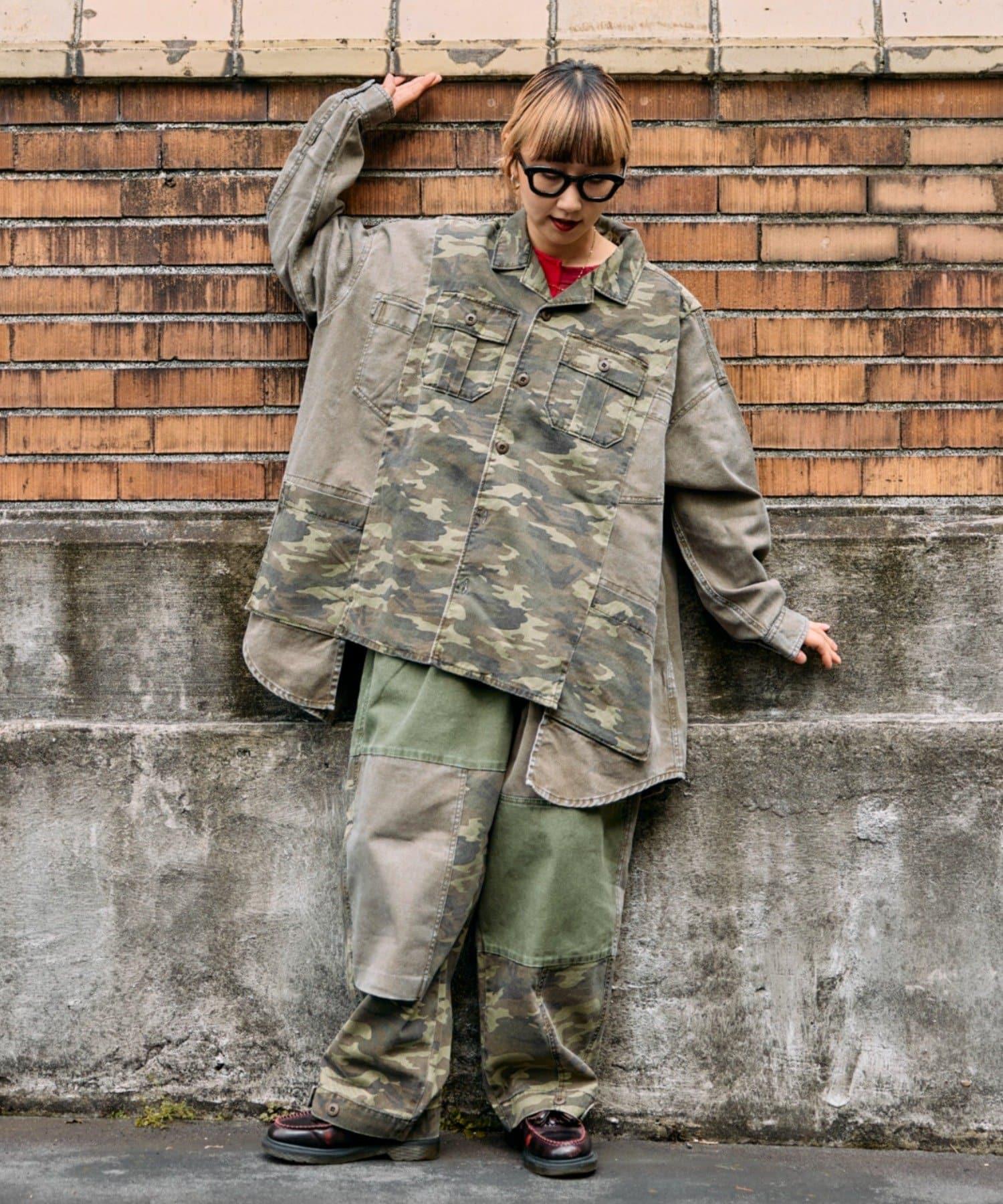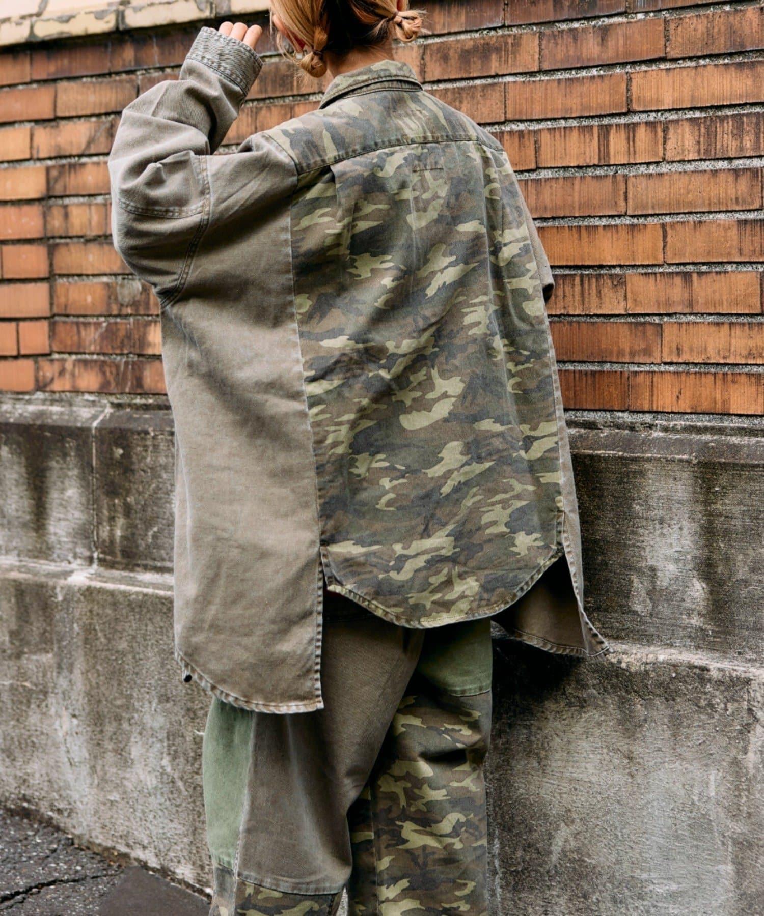 採用[素色和花紋]切換設計的夾克十分搶眼。