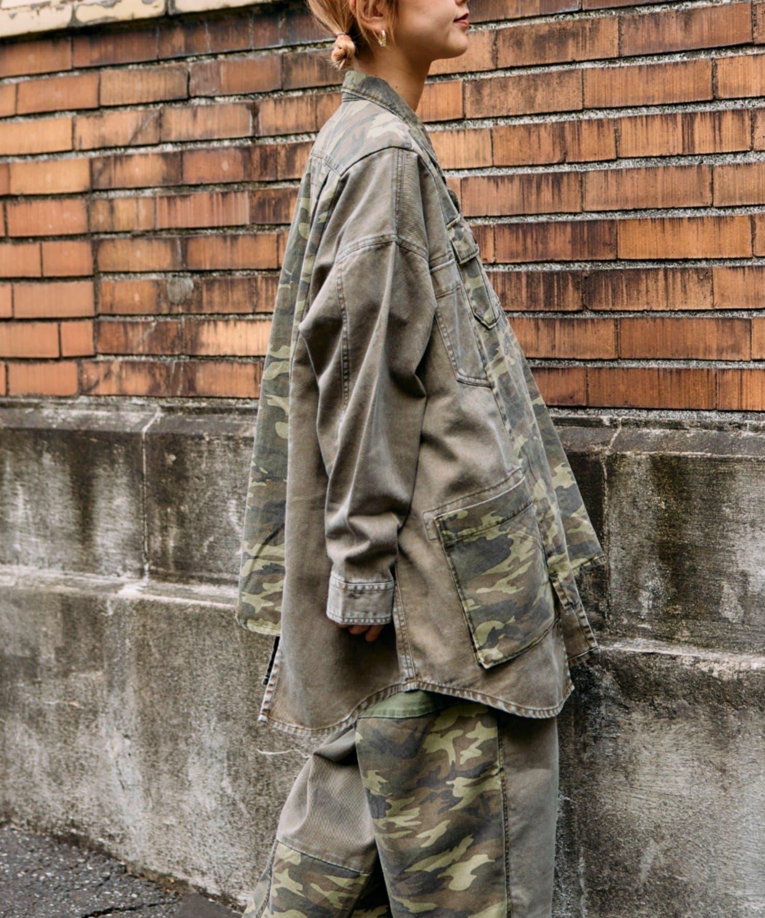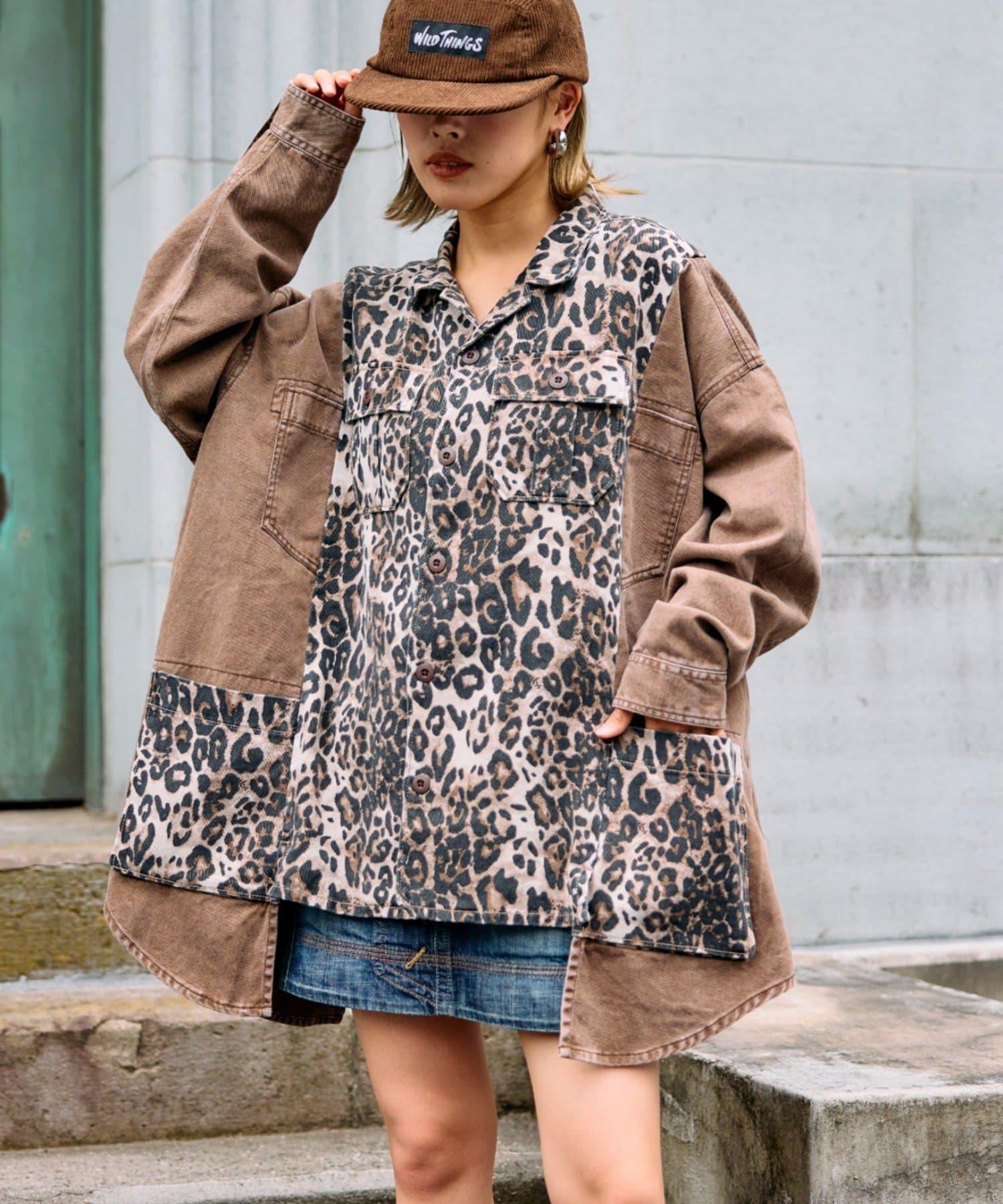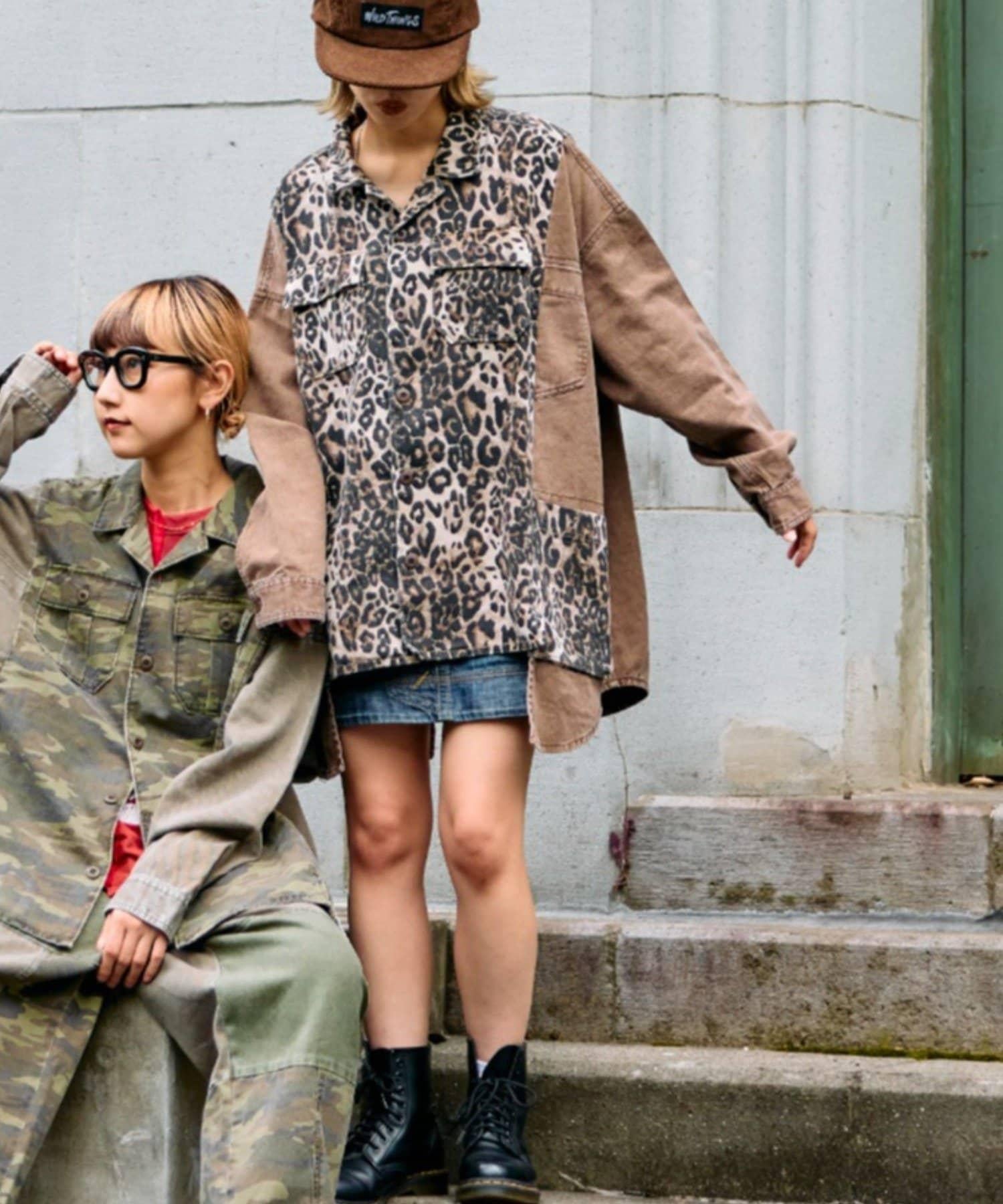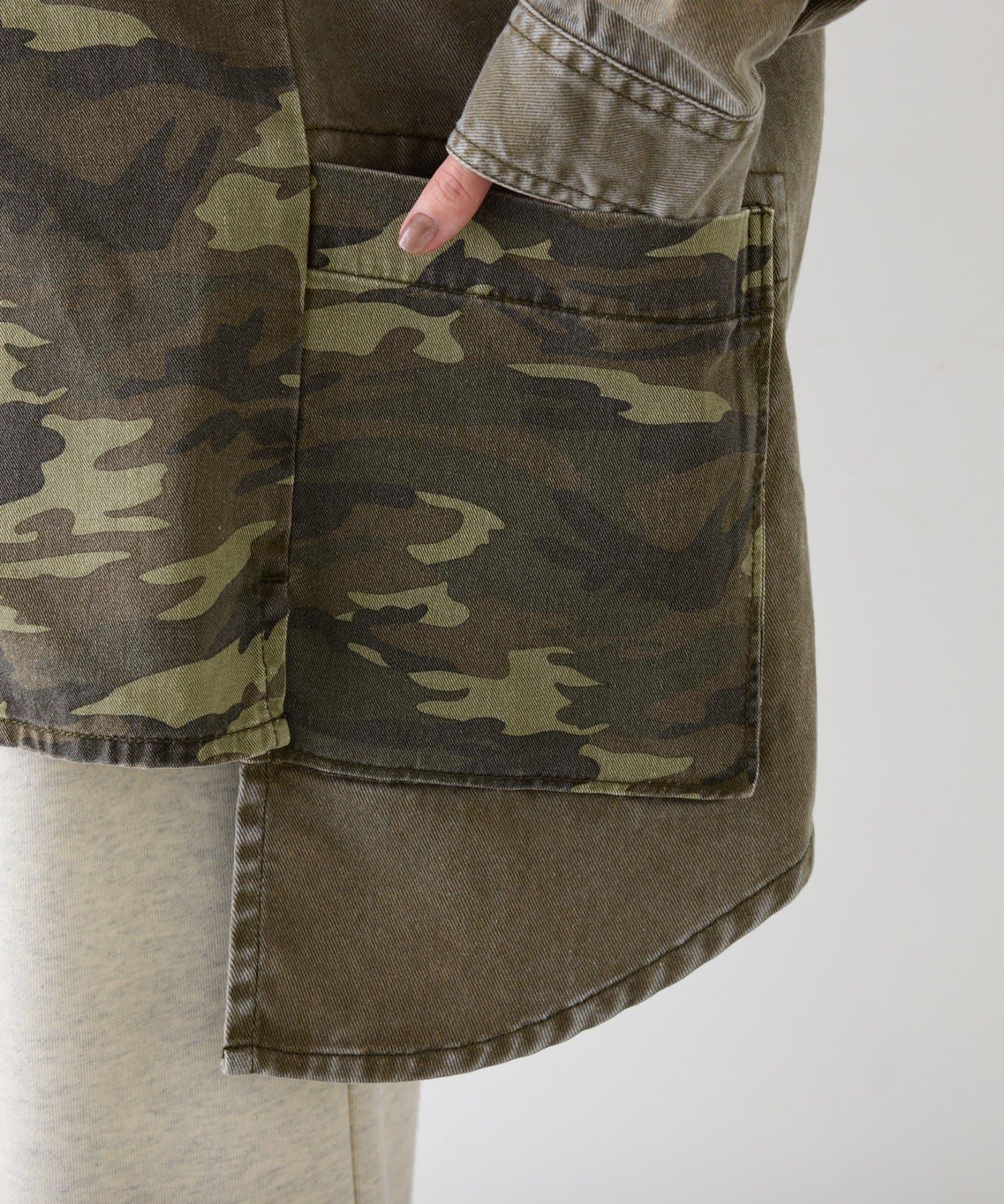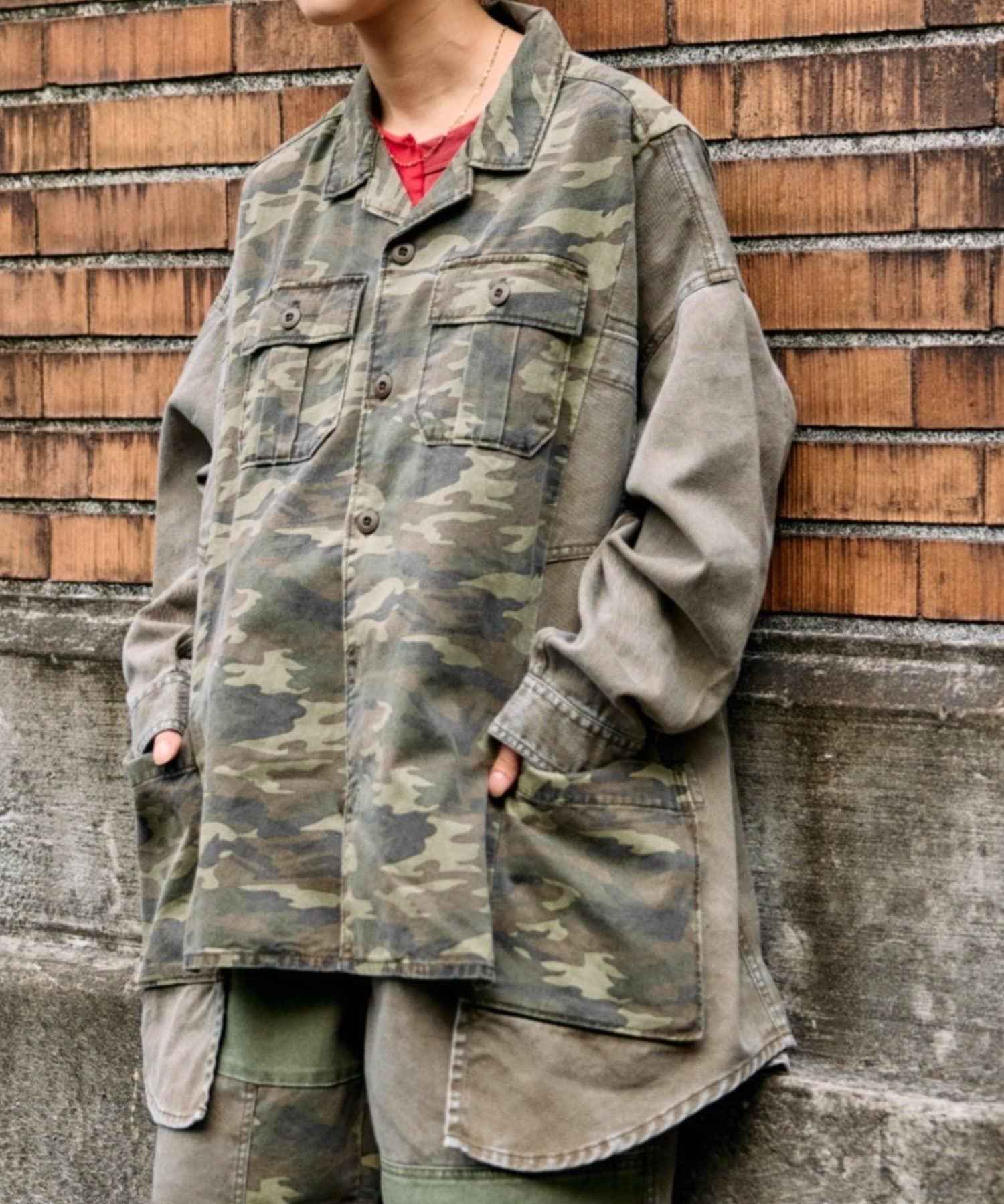採用[素色和花紋]切換設計的夾克十分搶眼。