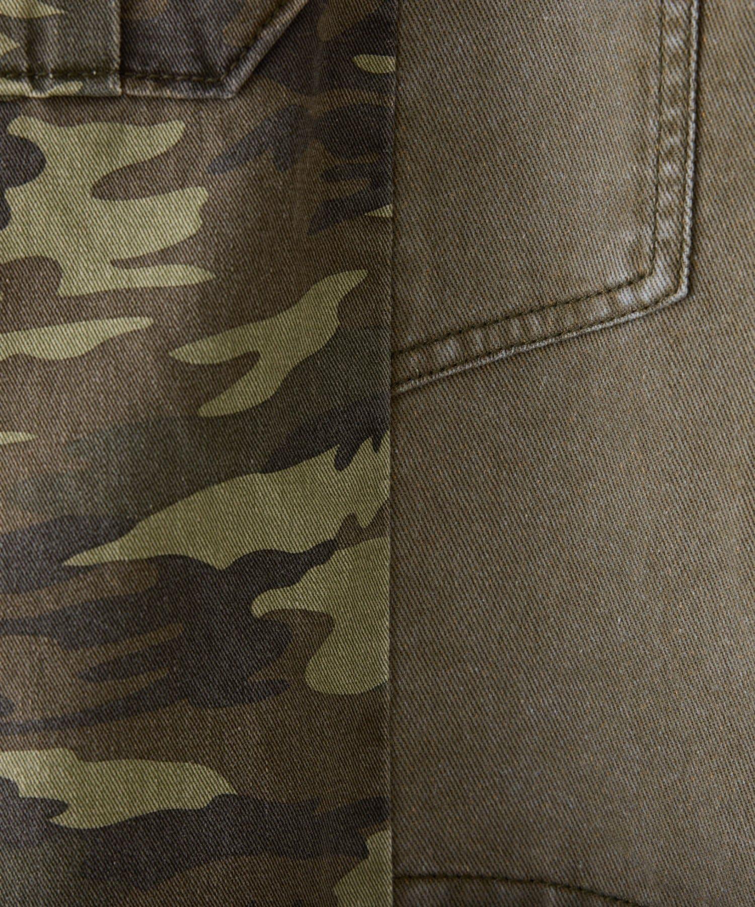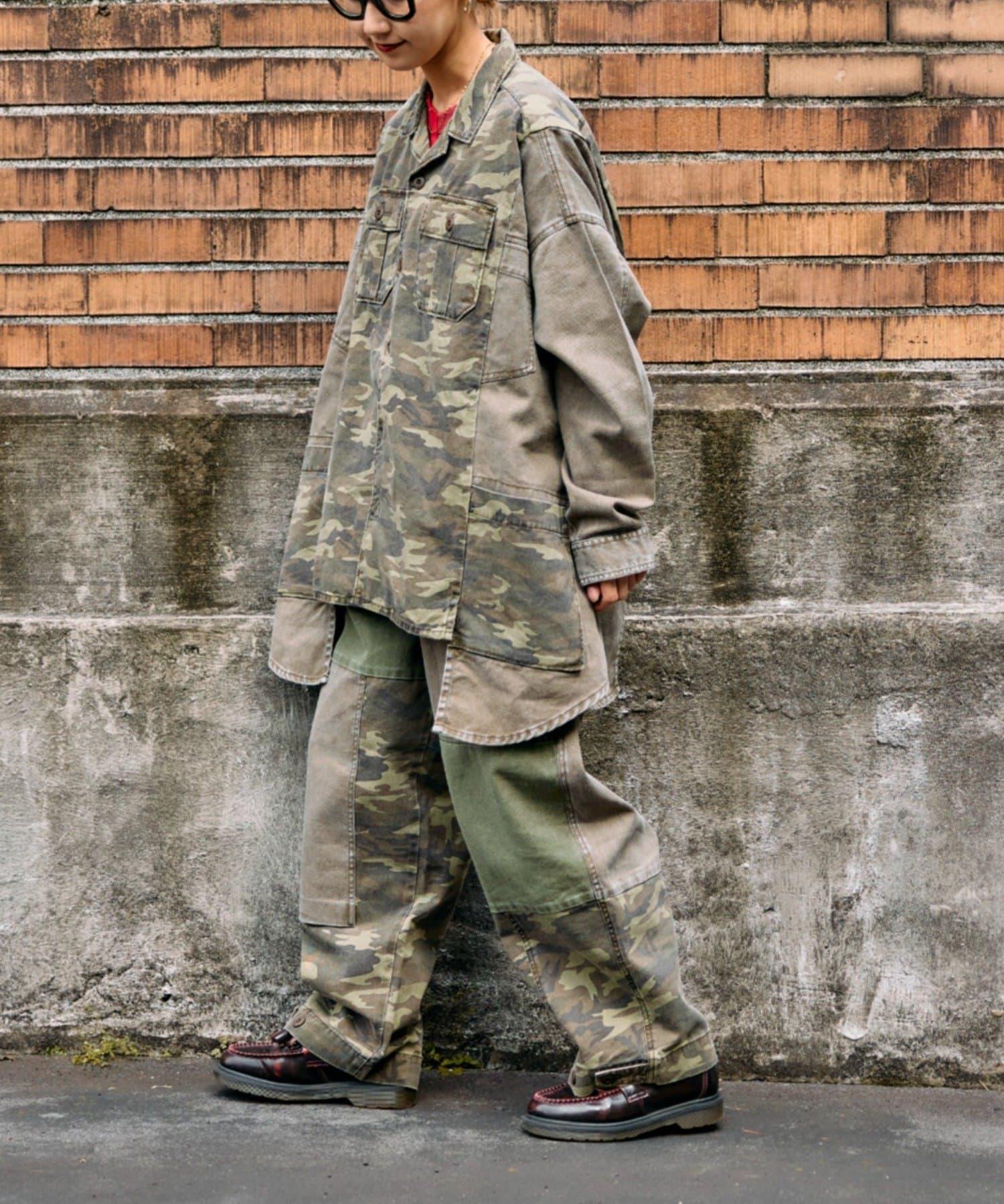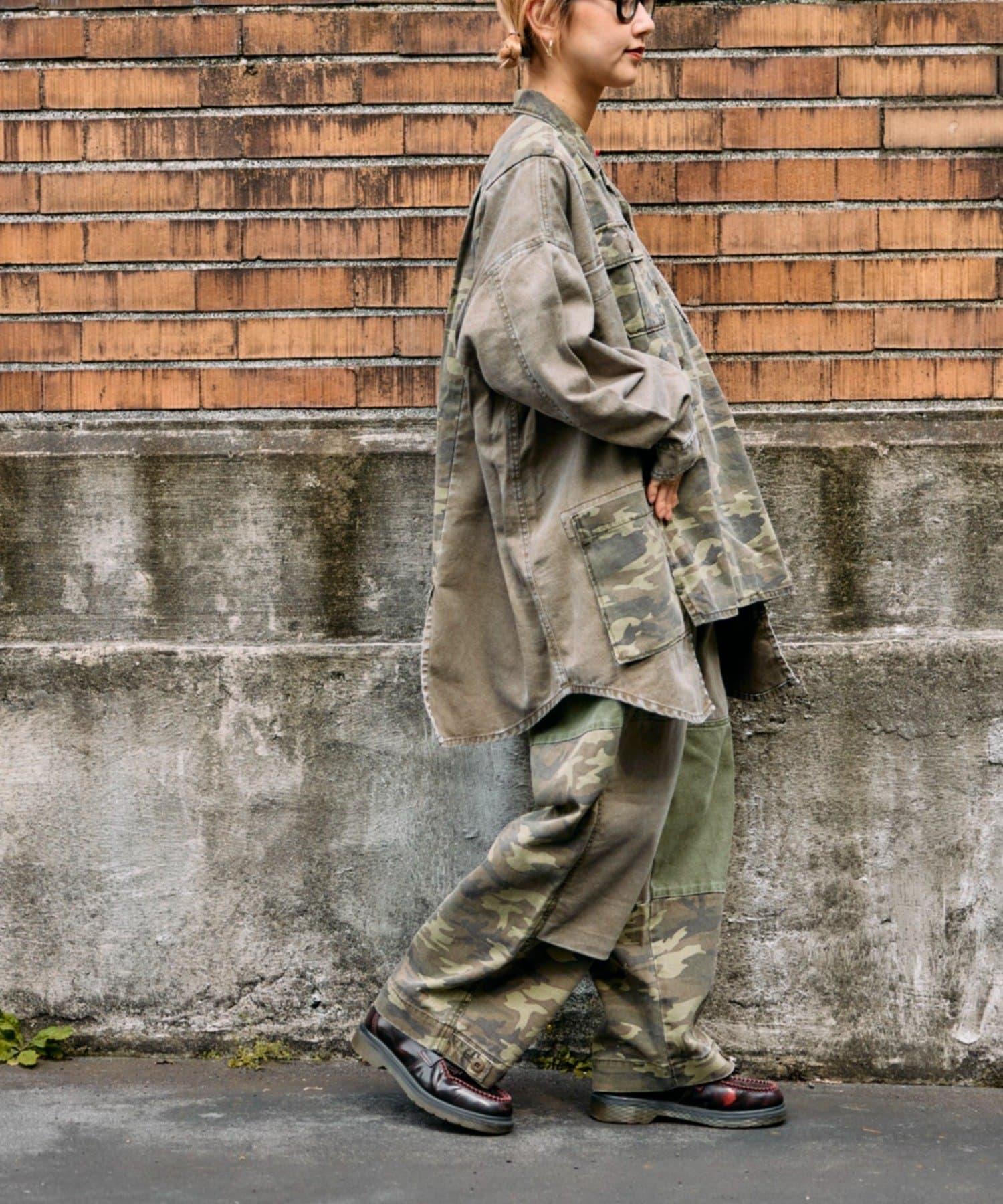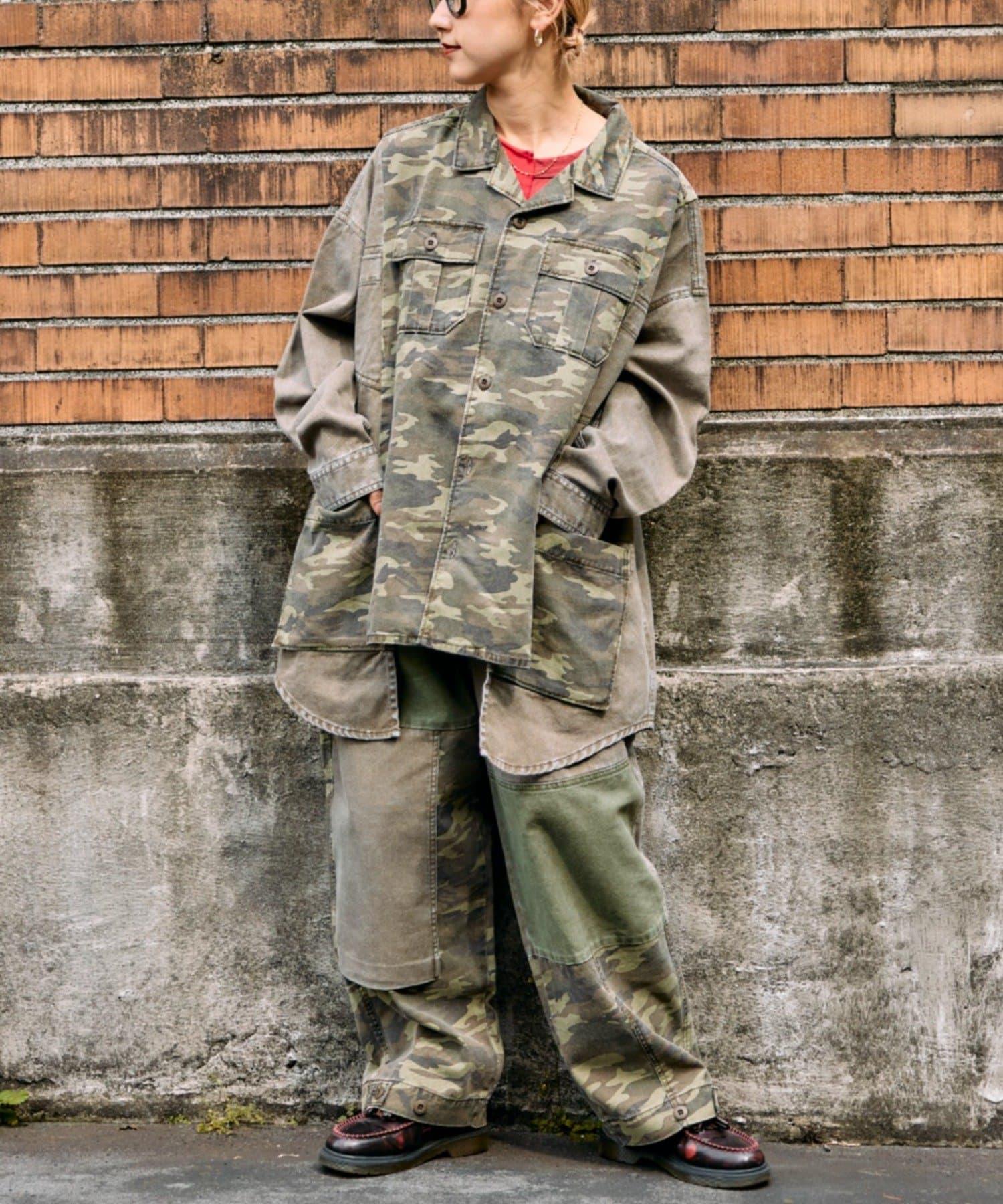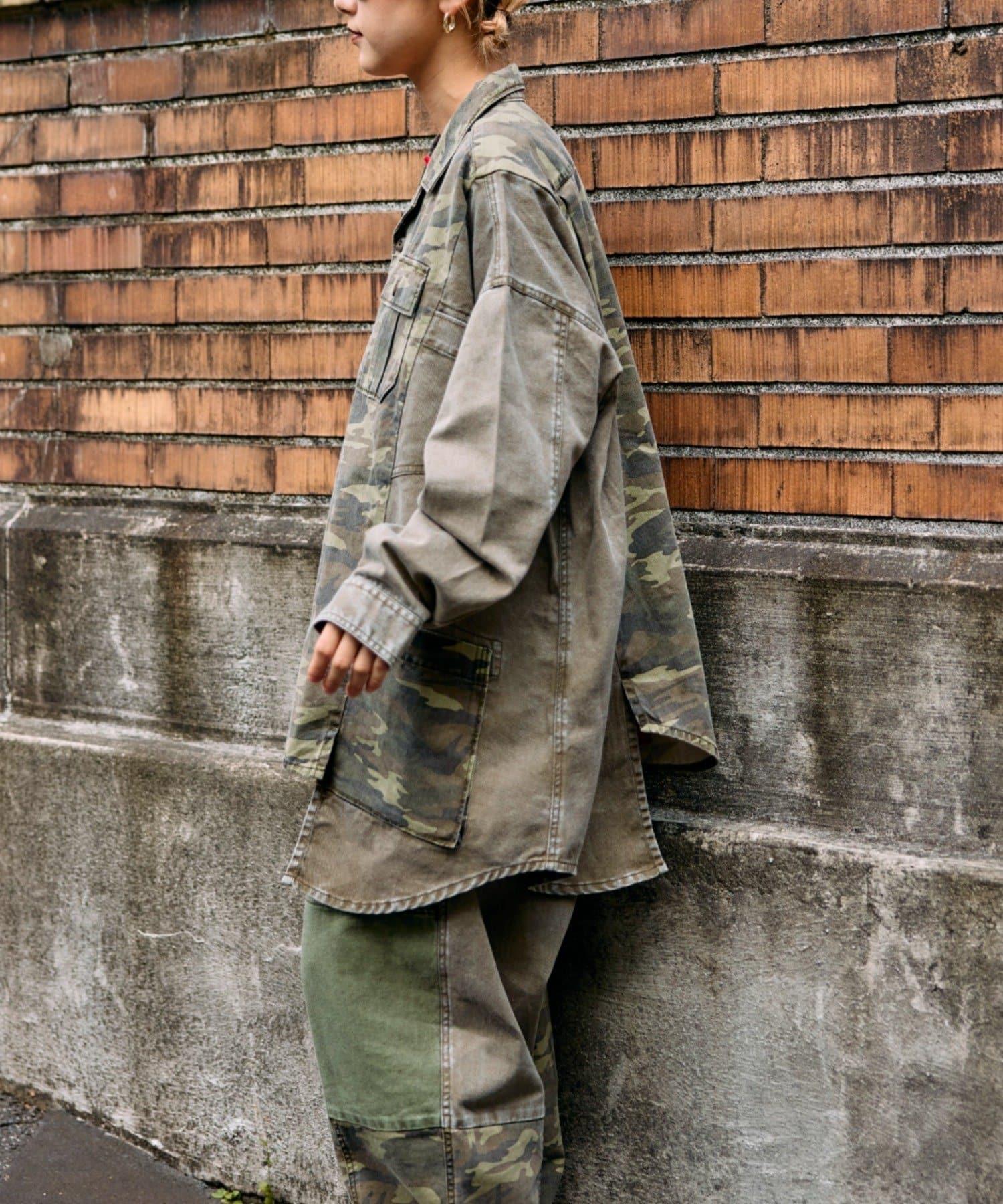 採用[素色和花紋]切換設計的夾克十分搶眼。
