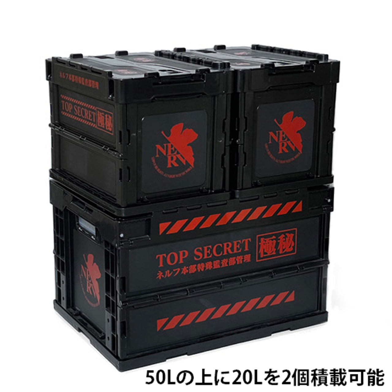 廣受歡迎的福音戰士 NERV 摺疊容器現推出 [S 尺寸]。它的設計與廣受歡迎的 50.1L 摺疊容器相匹配。這種[S尺寸]摺疊式容器可以在50.1L摺疊式容器的頂部並排裝載。設計簡潔的 "NERV "營造出一種典型的設備氛圍。