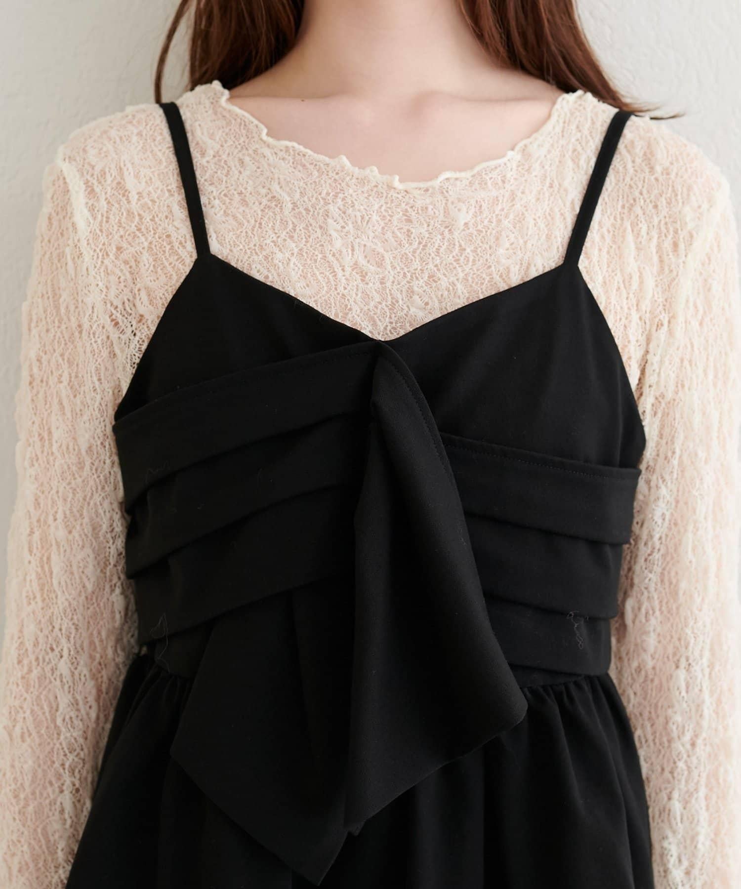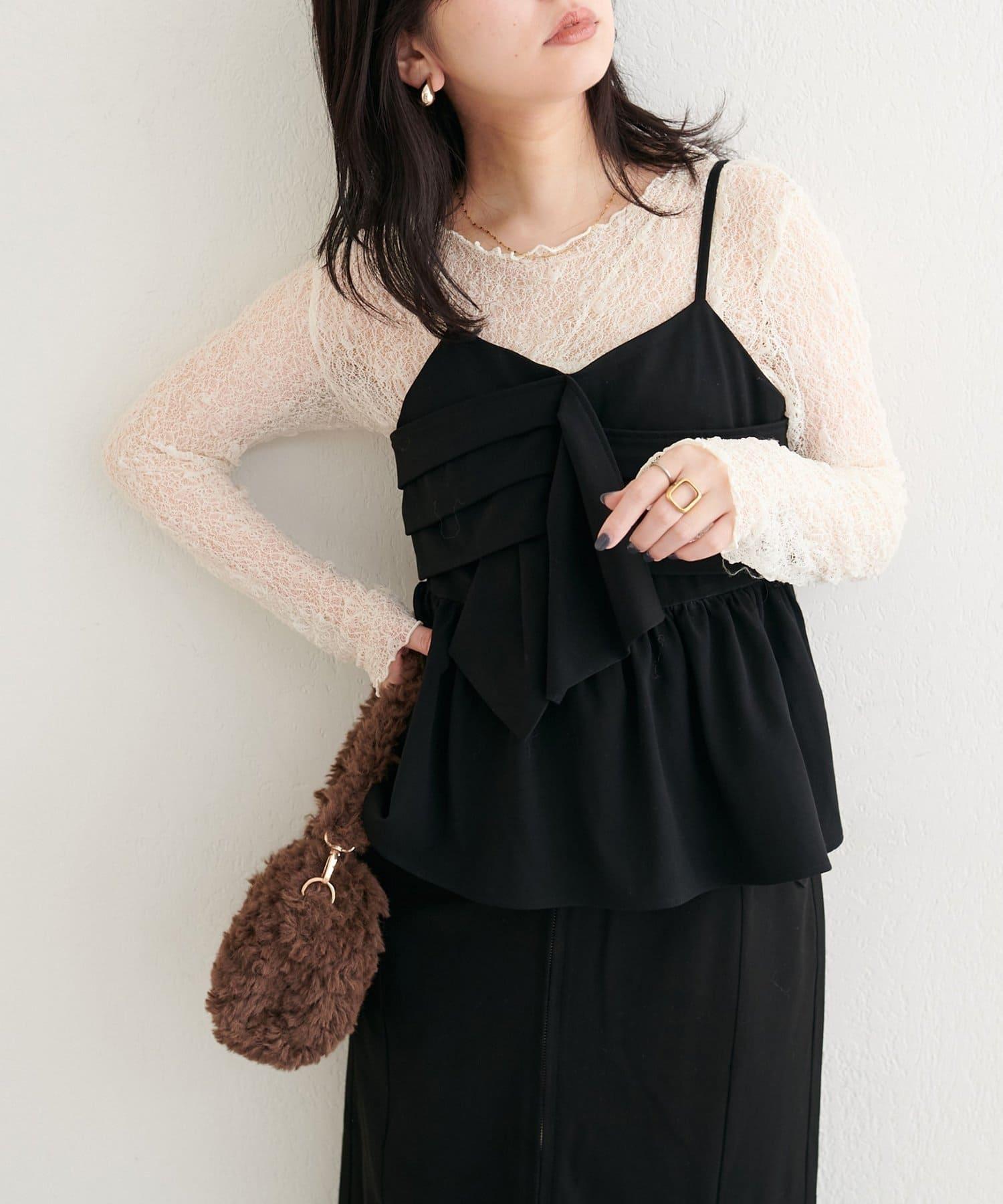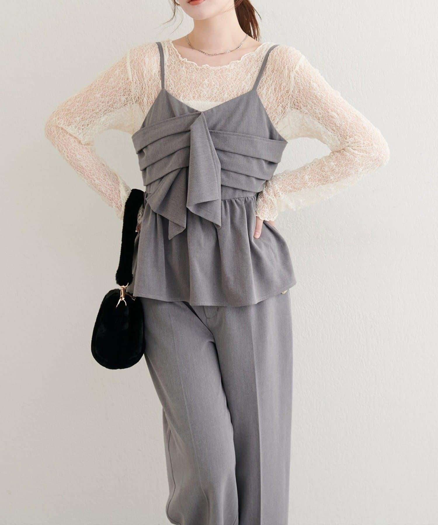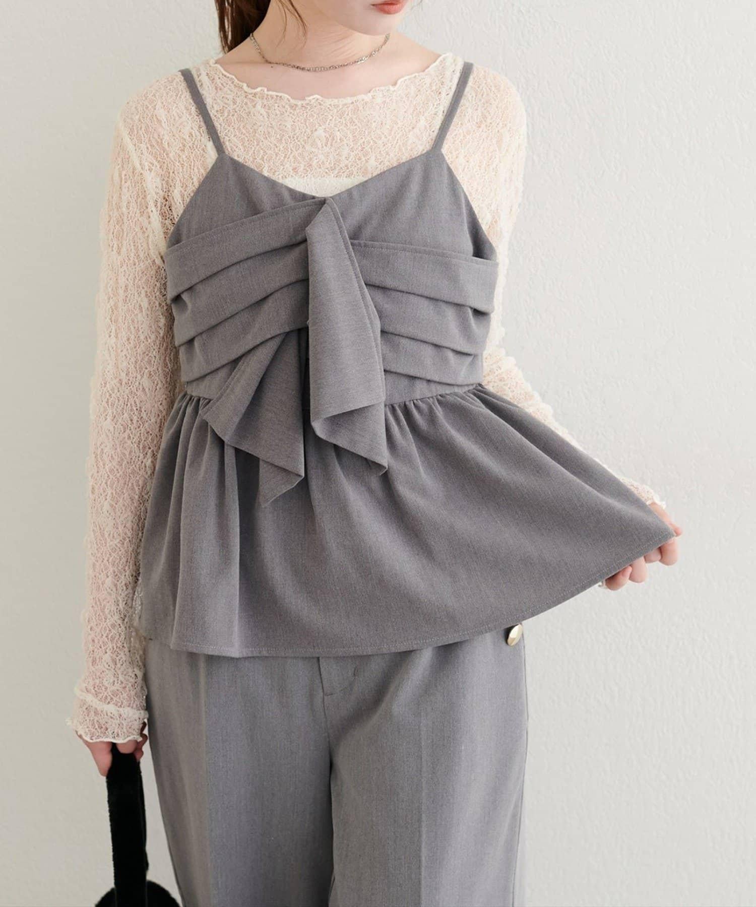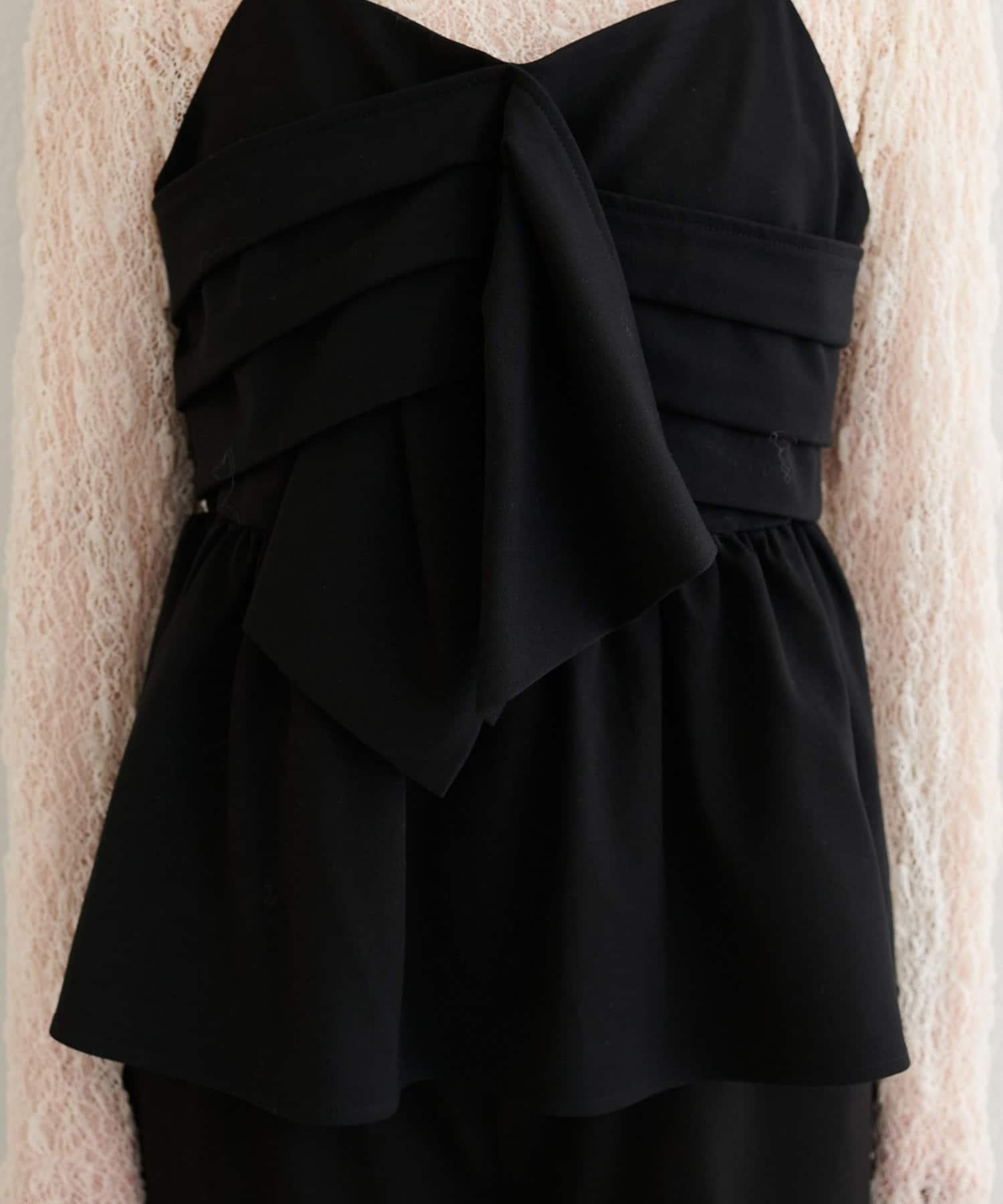 【Every very】蝴蝶結吊帶背心+蕾絲波浪邊T恤套裝